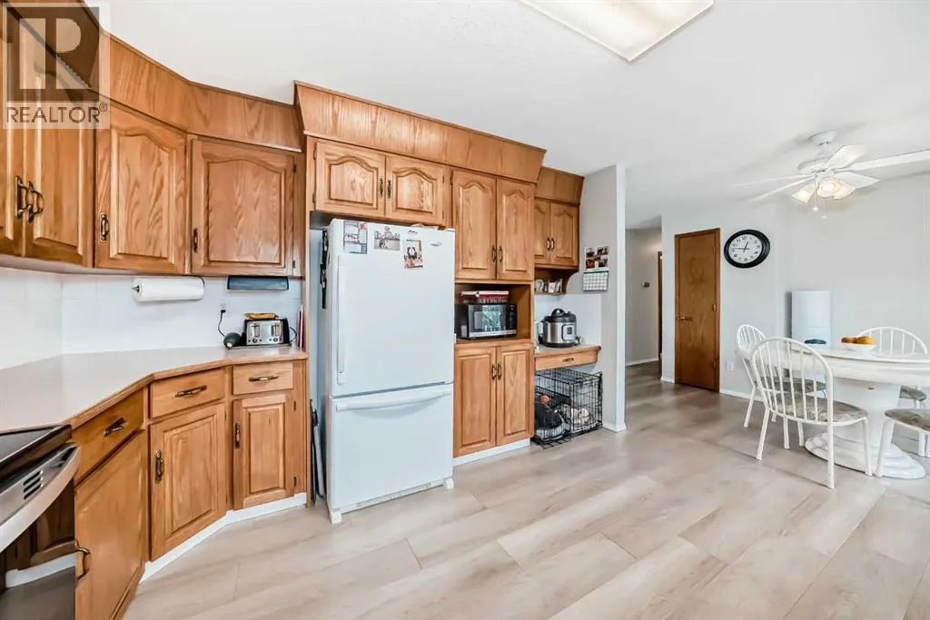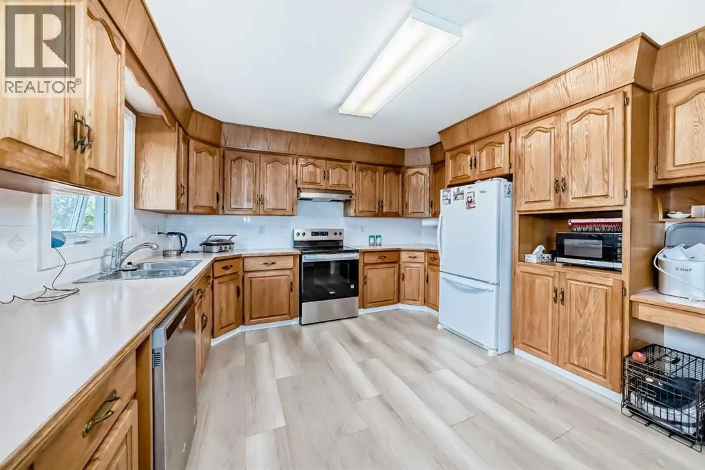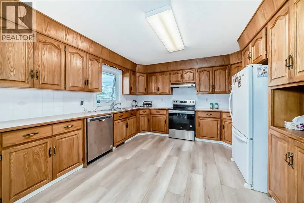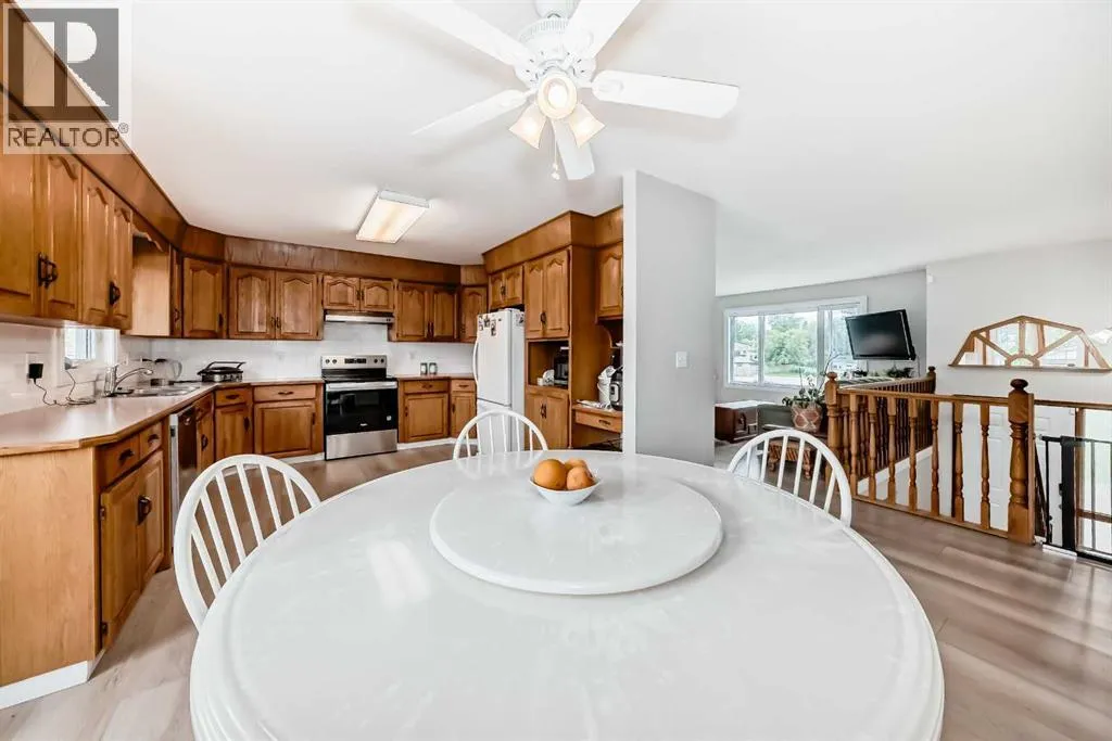 This beautifully maintained 1193 sq. ft. home is nestled on a spacious lot with ample room inside and out. Thoughtfully designed, this home boasts a functional yet comfortable layout. The main floor bright and airy living room is flooded with natural light through large windows. The standout kitchen offers abundant counter space, upgraded appliances (2023). The adjoining dining room overlooks the fenced backyard and opens onto a spacious deck, ideal for entertaining or unwinding outdoors. The main floor also includes a full bathroom, a roomy bedroom, and a primary suite with its own ensuite and plenty of closet space. The conveniently located main floor laundry room features newer washer and dryer for added peace of mind. The lower level features a large, welcoming family room, two generously sized bedrooms, a full bathroom, and a convenient storage area with built-in shelving. An attached double garage provides secure parking and extra storage. This home shines with recent improvements, showcasing exceptional value: new upstairs flooring (2021), updated shingles, siding, and fascia (2022), new windows on main floor (2023), a new garage door (2025), and a freshly painted deck (2025). The landscaped yard is a delight, boasting fruit trees and shrubs, including raspberries, an apple tree, and a fragrant mock orange tree in the front yard. With its thoughtful upgrades, excellent layout, and charming outdoor space, this home is a must-see opportunity. (id:27476)