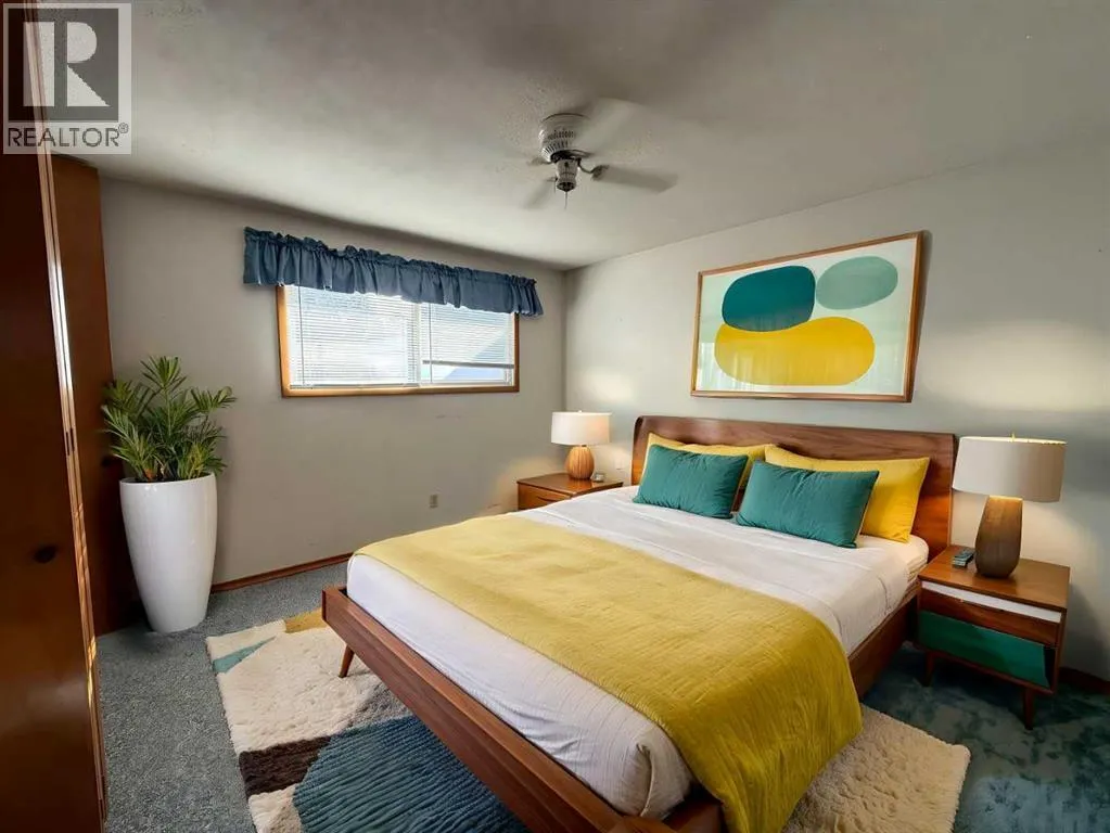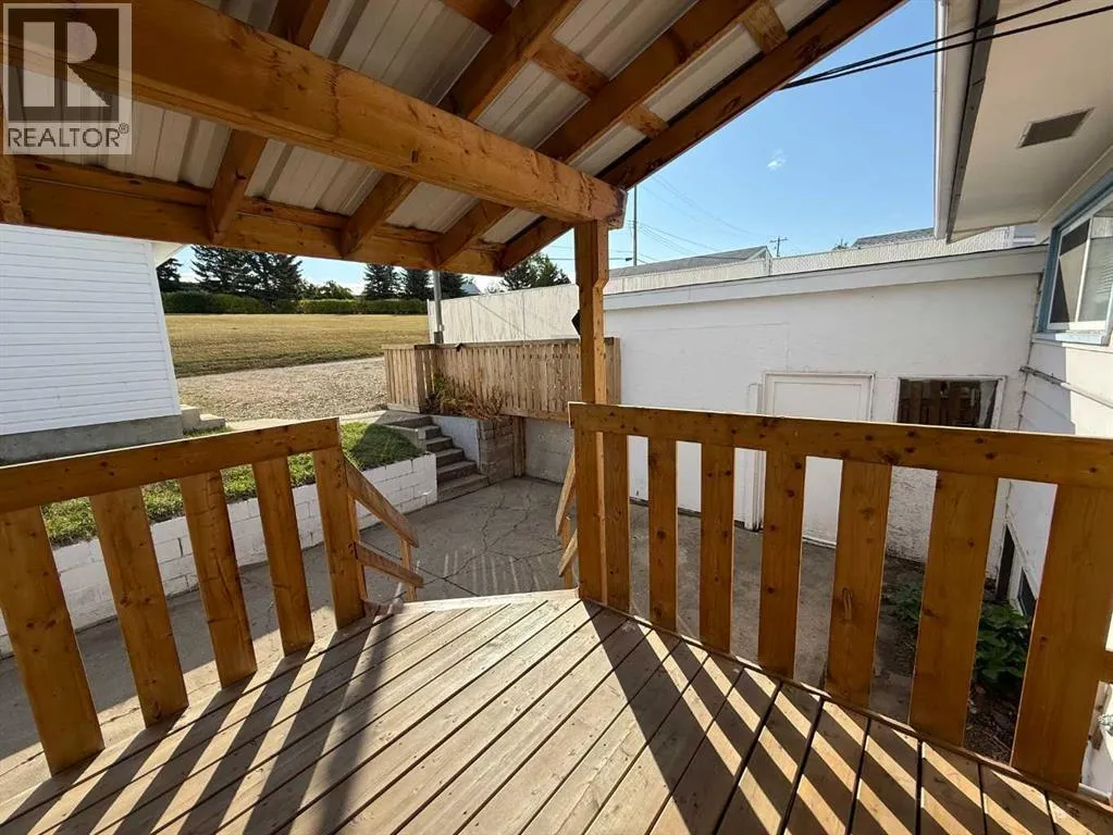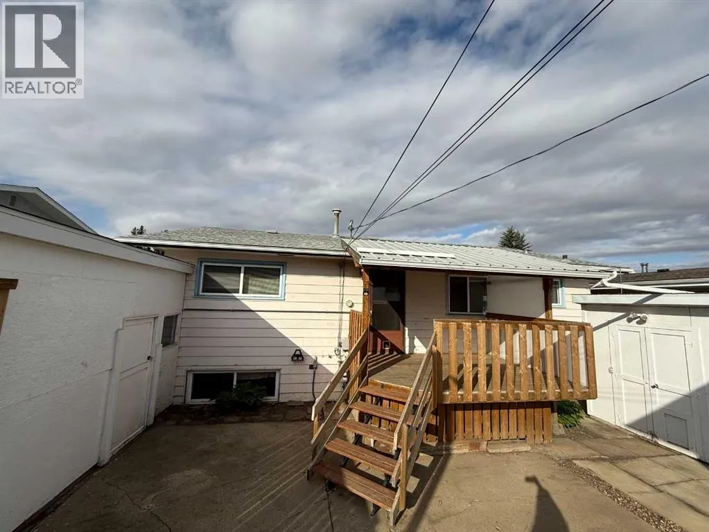 Here is a spacious 2+3 bedroom and 2-bath home, offering plenty of room for family living or investment potential. The property is set back from the street with a private front yard featuring mature shrubs, low-maintenance landscaping, and even an apple tree to enjoy. Inside, the upper level boasts a bright and generous living room anchored by a cozy corner wood-burning stove. The well-appointed kitchen offers ample cupboards and countertop space, along with an adjoining dining area. Down the hall, youâll find a 4-piece bathroom and two comfortable bedrooms, including the primary suite. The lower level expands your living options with three additional large bedrooms, a 3-piece bathroom, and a designated laundry room complete with a sink and built-in storage. Step outside to relax or entertain on the beautiful rear deck. Parking and storage are well taken care of with both an attached garage with outside access and a detached 24âx24 garage with alley access. With its private setting, generous living space, excellent storage, and versatile garage options, this property is an outstanding opportunity for first-time buyers or investors alike. (id:27476)