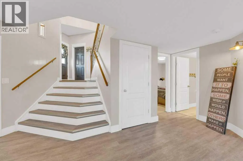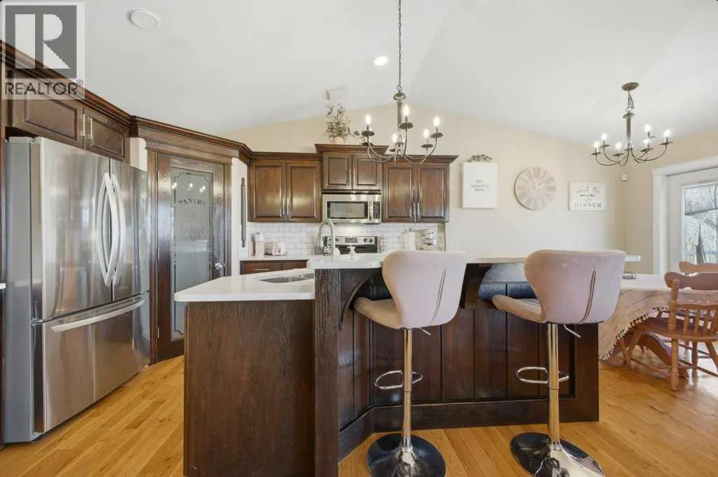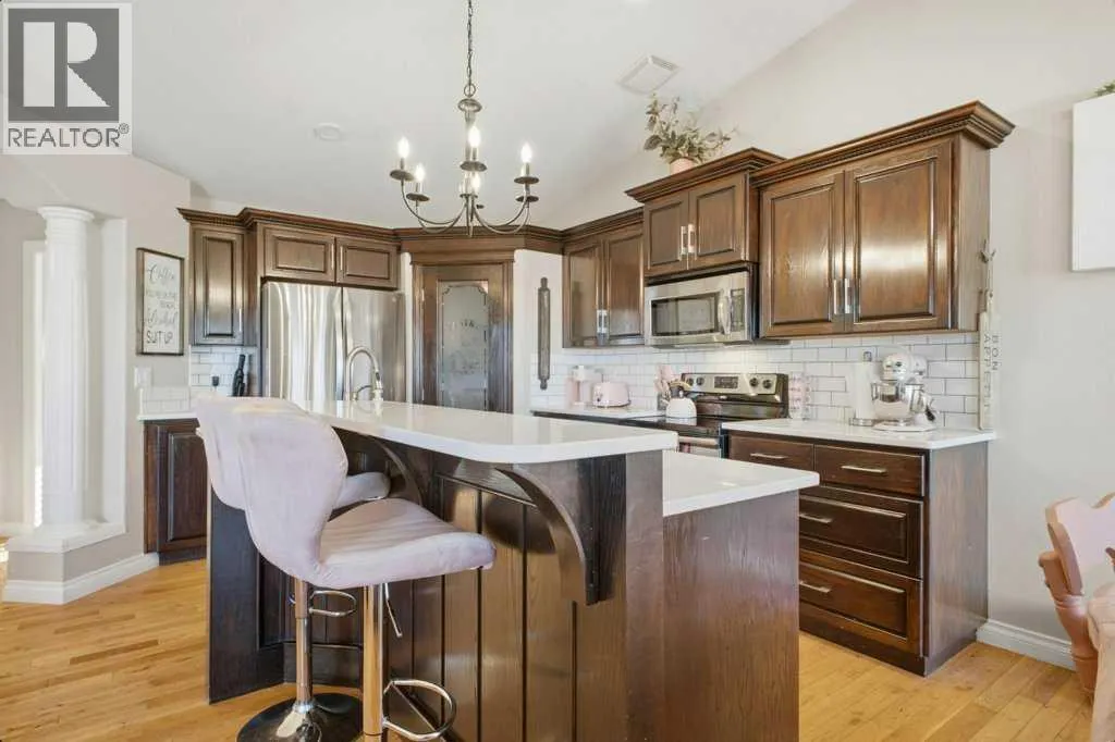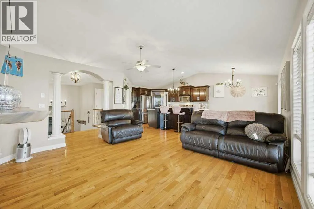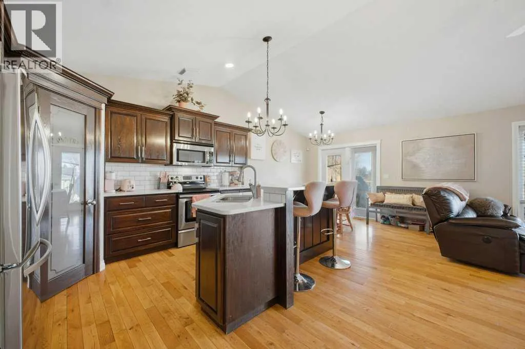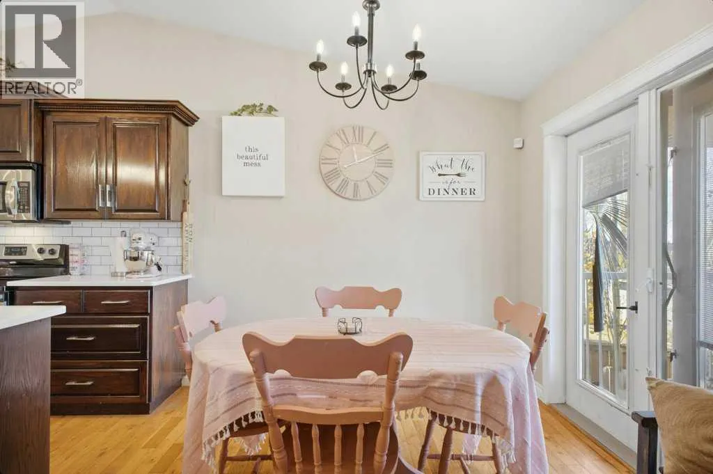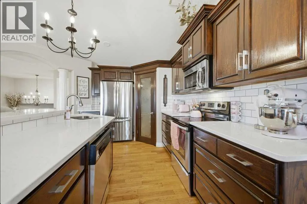 Welcome to this beautiful 5-bedroom, 3-bathroom home located in a quiet close, offering the perfect combination of comfort, functionality, and space for the whole family. As you step inside, youâre greeted by an inviting foyer with a split-level design leading either upstairs or down. The upper level features a bright and spacious kitchen with rich dark cabinetry, stainless steel appliances, and plenty of cupboard and counter space. An island with bar seating and a dining area nearby create the ideal setup for family meals or entertaining guests. The adjoining living room offers a warm and welcoming space to relax and unwind. Down the hall, youâll find a 4-piece bathroom, two well-sized bedrooms, and the primary bedroom complete with a private 3-piece ensuite. The lower level offers even more living space with two additional bedrooms, another full 4-piece bathroom, and a large recreation roomâperfect for family gatherings, movie nights, or a play area. A generous laundry room with ample cabinetry and a convenient sink adds extra practicality to this level. Outside, the expansive, fully fenced backyard is ideal for kids, pets, or outdoor entertaining. Enjoy the covered deck or make use of the handy storage shed for all your garden tools and equipment. The attached 21â x 23.6â garage provides secure parking and additional storage space. This home has everything you need and more, all in a peaceful and family-friendly location. A must-see for those seeking space, comfort, and quiet living! (id:27476)