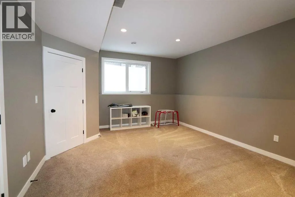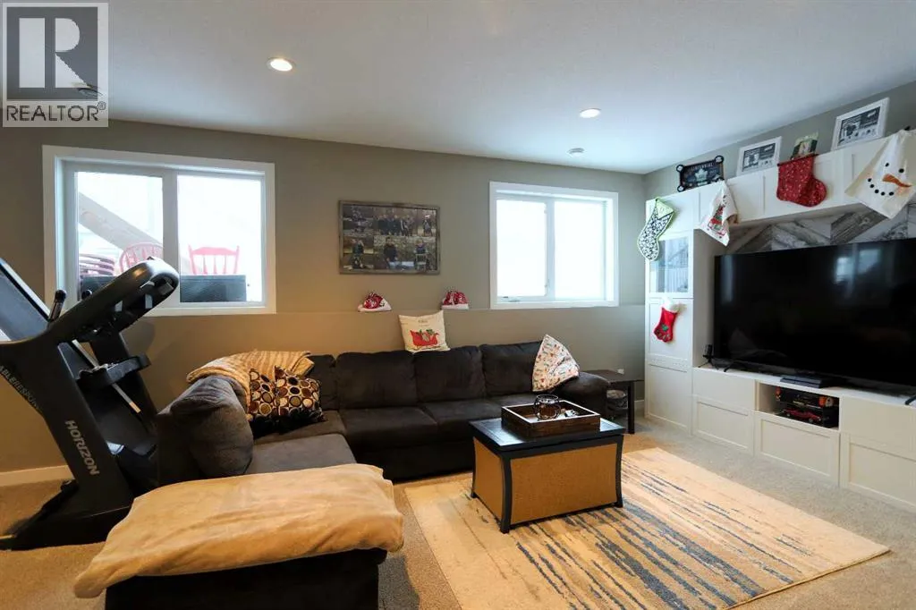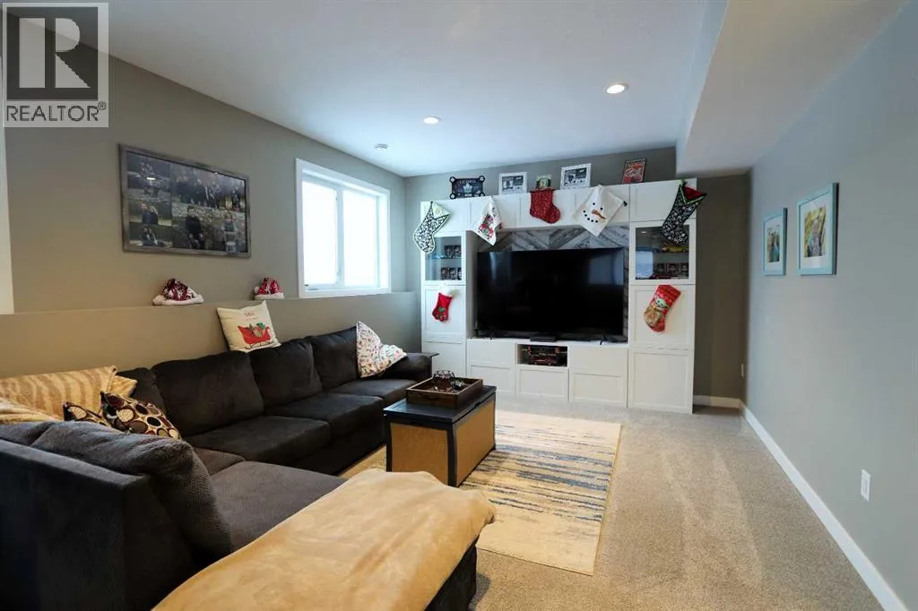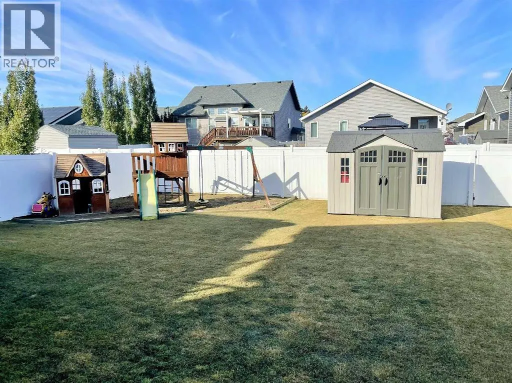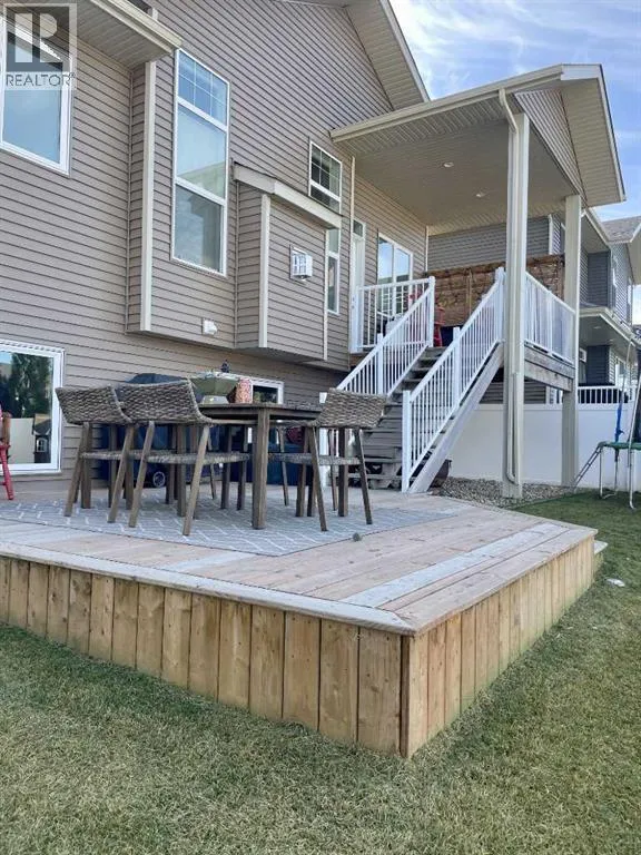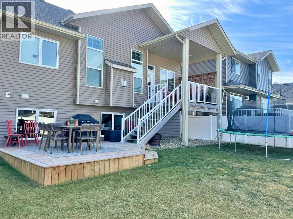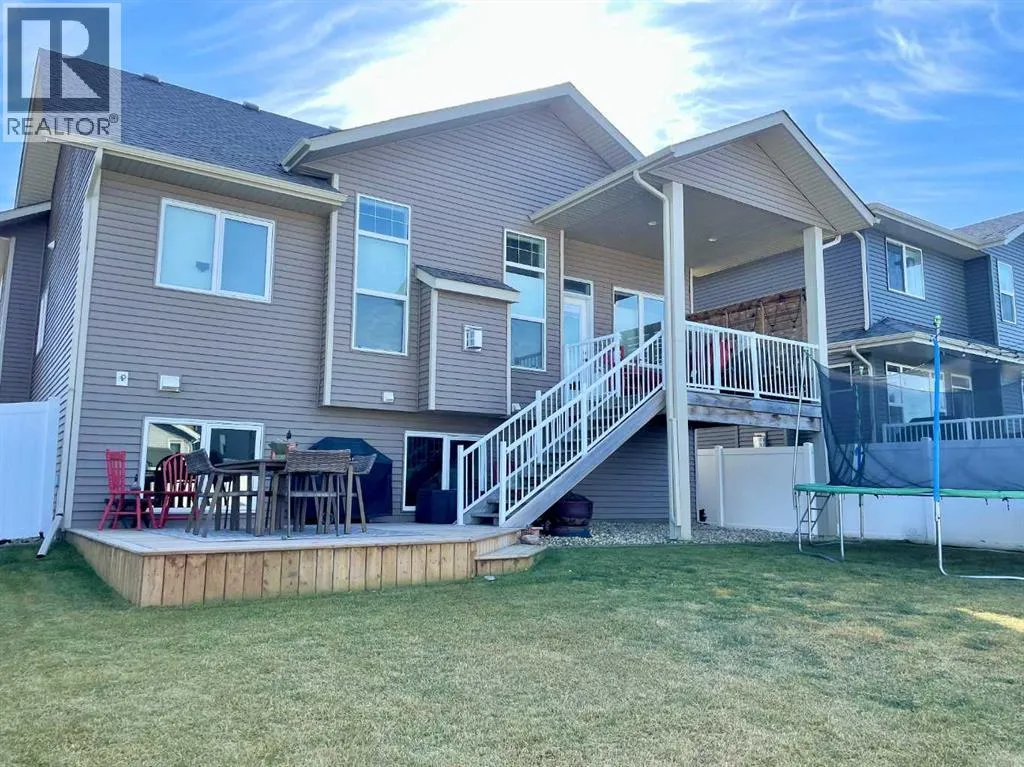 Discover this impressive modified bi-level situated in a highly desirable Riverside location. Designed with comfort and functionality in mind, the open-concept main living area features 9-ft ceilings throughout and a raised ceiling in the living room, adding to the sense of space and showcasing the striking floor-to-ceiling stone fireplace. The kitchen offers an ideal layout for everyday living and entertaining, complete with a large island, quality granite countertops, pantry and stainless steel appliances. The main floor includes two well-appointed bedrooms and a full bathroom, while the stunning primary suite is set just a few steps up for added privacy. This retreat features barn-style tracked doors, a spacious walk-in shower, large vanity, walk-in closet, and a beautiful freestanding tub positioned as the focal point of the spacious ensuite. The fully finished basement with in-floor heat expands the living space with a bright family/rec room, thanks to generous windows that fill the area with natural light. In-floor heat adds welcome comfort and efficiency. A fourth bedroom and an additional full bathroom complete the lower level. Enjoy the back yard with maintenance-free vinyl fencing, a large play area for kids, and relax or entertain on lower deck or covered deck off the dining area. The 24Ã26 heated attached garage has an epoxy floor coating, other recent upgrades include new shingles and siding in 2023. There's an additional electrical and gas services should you wish to build a second garage. This property combines thoughtful design, modern comfort, and an unbeatable locationâtruly a place to call home. (id:27476)