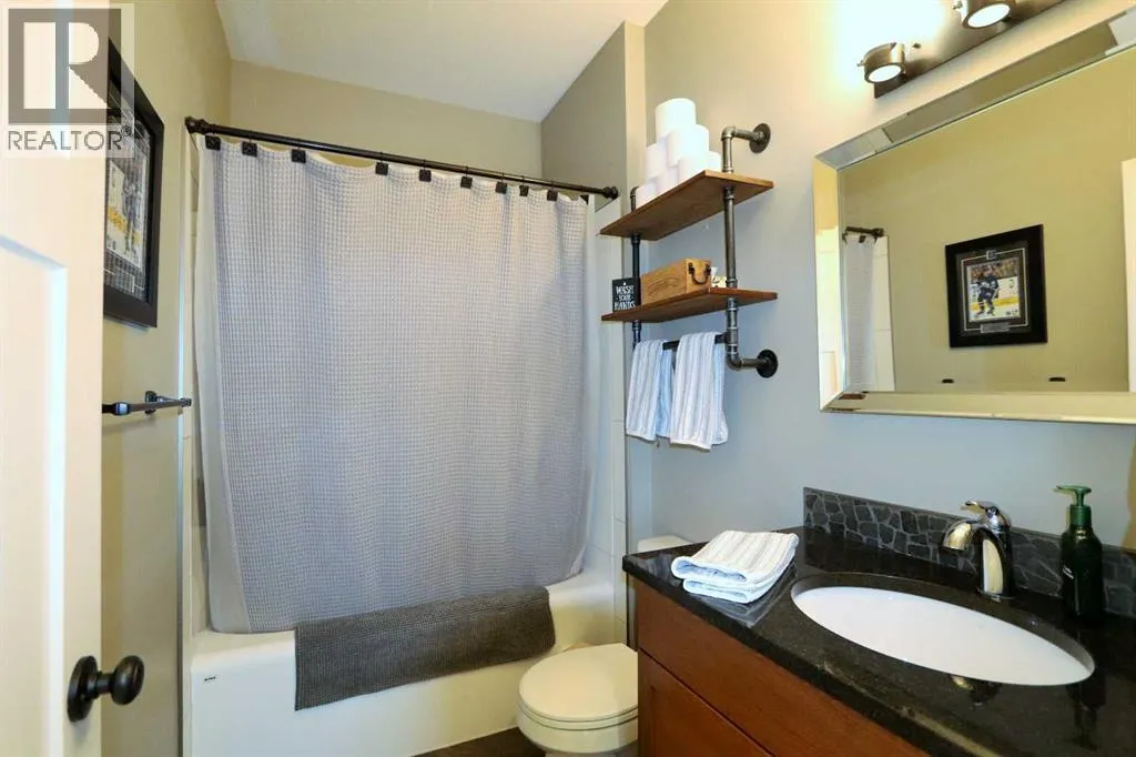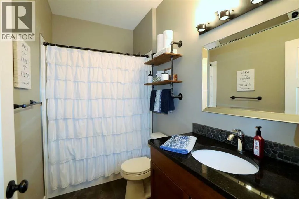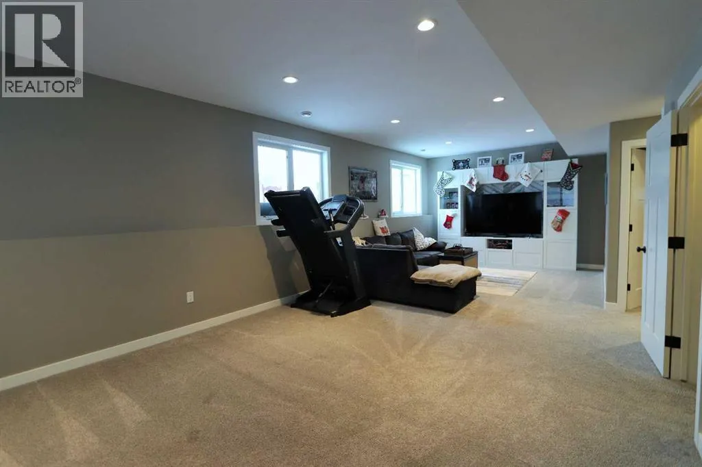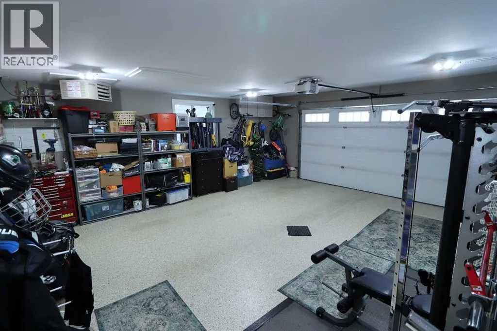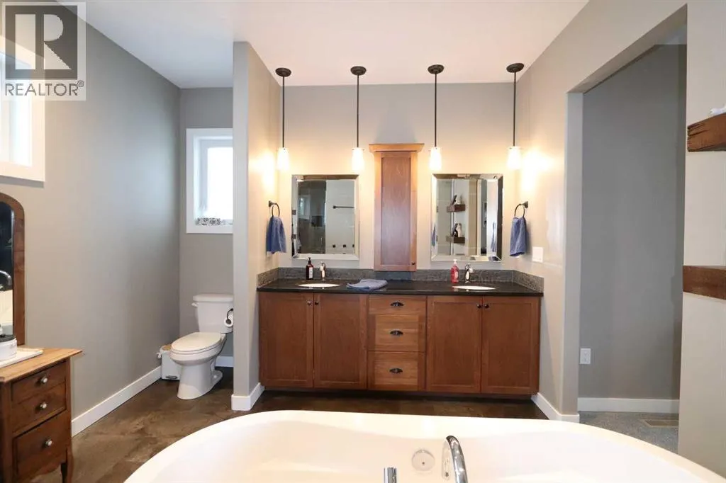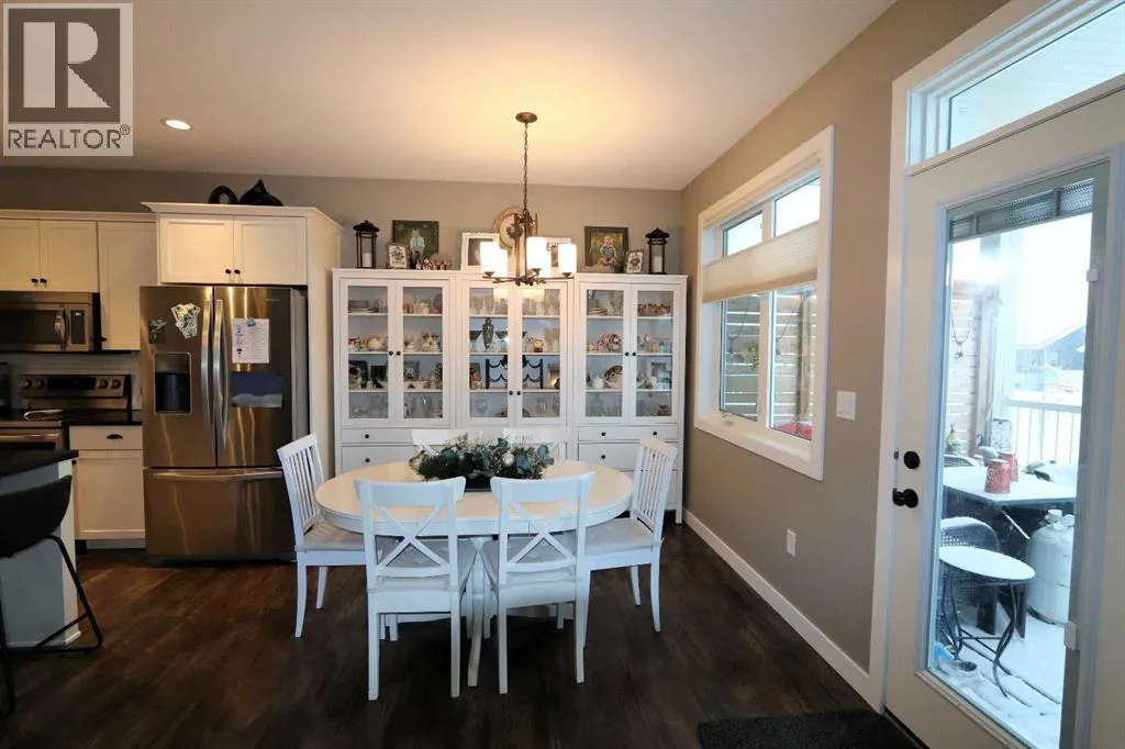 Discover this impressive modified bi-level situated in a highly desirable Riverside location. Designed with comfort and functionality in mind, the open-concept main living area features 9-ft ceilings throughout and a raised ceiling in the living room, adding to the sense of space and showcasing the striking floor-to-ceiling stone fireplace. The kitchen offers an ideal layout for everyday living and entertaining, complete with a large island, quality granite countertops, pantry and stainless steel appliances. The main floor includes two well-appointed bedrooms and a full bathroom, while the stunning primary suite is set just a few steps up for added privacy. This retreat features barn-style tracked doors, a spacious walk-in shower, large vanity, walk-in closet, and a beautiful freestanding tub positioned as the focal point of the spacious ensuite. The fully finished basement with in-floor heat expands the living space with a bright family/rec room, thanks to generous windows that fill the area with natural light. In-floor heat adds welcome comfort and efficiency. A fourth bedroom and an additional full bathroom complete the lower level. Enjoy the back yard with maintenance-free vinyl fencing, a large play area for kids, and relax or entertain on lower deck or covered deck off the dining area. The 24Ã26 heated attached garage has an epoxy floor coating, other recent upgrades include new shingles and siding in 2023. There's an additional electrical and gas services should you wish to build a second garage. This property combines thoughtful design, modern comfort, and an unbeatable locationâtruly a place to call home. (id:27476)