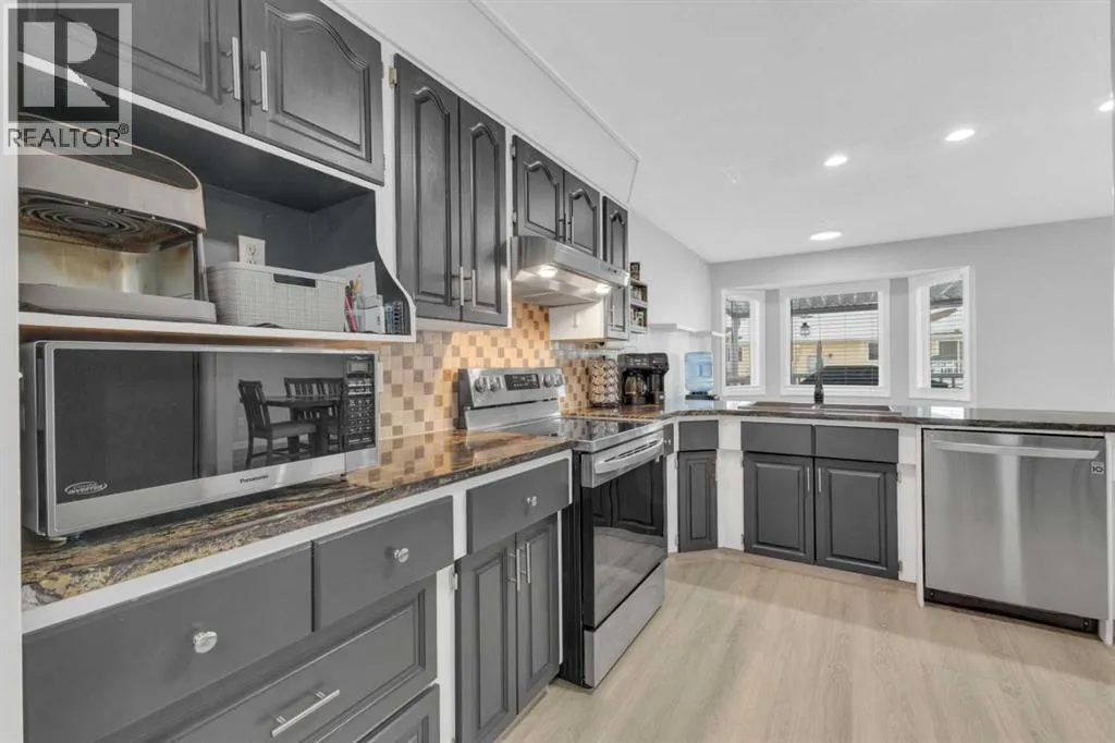 This home has had Everything taken care of in recent years â and that means you get to Move In and Enjoy!! THE NEWâ¦â¦New flooring, Trim, Doors, Closets, New Master shower, Granite in the kitchen, and Paint upstairs and down. THE BIG STUFFâ¦..2025 - Furnace, Hot Water tank & A/C installation. RECENT YEARS: TRIPLE PANE Windows and Patio door, Roof, Siding, Garage door, Rubber stair, Path and Back deck, and a beautiful Chain link fence. This home is made for your growing familyâ¦.with a total of 5 Bedrooms, 3 Bathrooms, Massive kitchen, eating area and formal dining space. The upstairs living room is bright and cozy, the front entrance is large enough for all the kids to pile in; and a MAIN FLOOR Laundry room!! This beautiful Bungalow is rounded out with 3 bedrooms upstairs including a Primary with walk-in closet and ensuite and a main bathroom for guests and others to share. There are two separate access points to the basement (Bring on the most epic game of tag or hide-and-seek ever), and the space down here is Absolutely Fantastic!!! There is a fully functioning rustic wood wet bar, two more bedrooms and another full bathroom. OUTSIDE â you have a beautiful covered deck with new rubber coating, chain link fence and a newly leveled yard with new sod a few years ago. This home is low maintenance so you can enjoy the time with your family and friends. There is back lane access and a large shed for you to enjoy and TONS of street parking with an extra-large paved driveway. Bring the Family & Enjoy the Space. (id:27476)