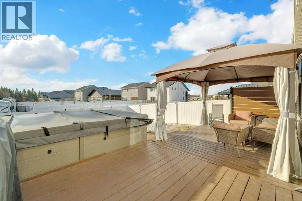 Welcome to this exceptional executive custom home, built in 2019 and ideally situated in one of the most desirable locations in town. Meticulously maintained and thoughtfully upgraded over the past several years, this stunning two-storey home showcases true pride of ownership and intentional design throughout. From the moment you step into the naturally bright and welcoming foyer, youâll appreciate the custom railings and window enhancements that elevate the space. A convenient 2-piece powder room is perfectly positioned as you move toward the heart of the home, an impressive chef-inspired kitchen designed with both beauty and functionality in mind. The kitchen is a true showpiece, featuring floor-to-ceiling custom cabinetry, expansive counter space, quartz countertops, elite appliances, and thoughtfully designed storage solutions. The sizeable dining area offers the perfect setting for family gatherings and entertaining guests, seamlessly flowing into the bright and spacious living room designed for relaxation. Vinyl flooring extends throughout the main floor and all bathrooms, complemented by upgraded lighting that adds a modern and cohesive touch. Central A/C ensures year-round comfort. Upstairs, the layout has been well utilized to say the least. The spacious primary bedroom features a walk-in closet and a beautiful 4-piece ensuite, with custom shelving inserts. Two additional generous bedrooms with walk in closets, another full 3-piece bathroom, and a versatile family room provide flexible living options to suit your needs. A cleverly tucked-away laundry area, hidden within a closet, keeps the space tidy and functional. The fully customized lower level continues to impress. An open-concept bachelor-style feel , the basement offers custom built-in storage, a stacked bespoke AI washer and dryer, and a stylish 3-piece bathroom which is an ideal setup for extended family, and guests. Step outside to enjoy the fully enclosed backyard with low-maintenance viny l fencing, creating privacy and peace of mind. Two expansive rear decks â one complete with a gazebo â provide incredible outdoor living space for relaxing or entertaining. Adding to the lifestyle appeal is the meticulously well-maintained 5-year-old Coast Spas Wellness Swim Spa with a new heater, pump and upgraded cover added this year, offering year-round enjoyment and relaxation. This home is the perfect blend of executive design, functional upgrades, and move-in-ready convenience all in a prime location. (id:27476)
