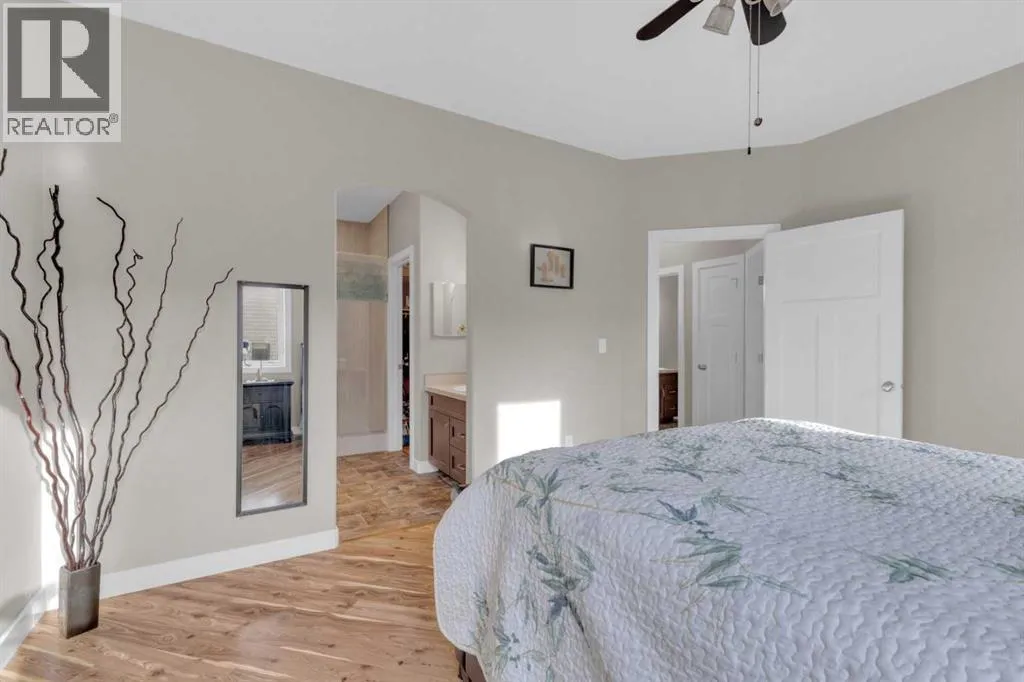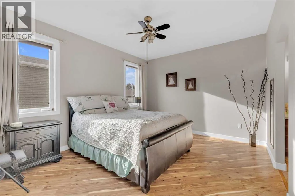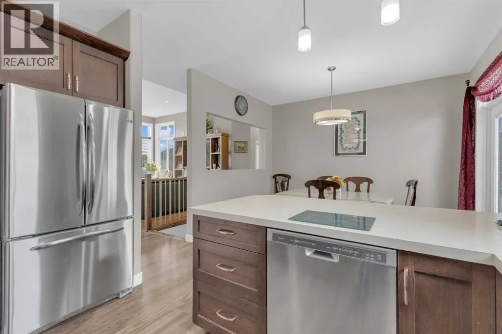 Discover this impeccably maintained, move-in-ready bungalow that feels practically brand newâoffering 4 generous bedrooms and 3 full baths with undeniable pride of ownership shining through every detail.One of the standout features is the exceptional 20' x 40' detached garage/shopâfully finished with towering 16' walls and a massive 14' overhead door. It's an ideal setup for RV or boat storage, business trailers, extra vehicles, or the ultimate hobbyist's dream workspace. Properties like thisâwith serious outbuilding potentialâare incredibly hard to find in town!Step inside to a bright, welcoming living room bathed in natural light, creating that perfect cozy yet open vibe. Convenience is built in with main-floor laundry, while the kitchen impresses with rich dark cabinetry, handy counter bar seating, and a seamless flow into the dining areaâgreat for casual family meals or hosting friends.Just off the kitchen, a spacious deck awaits your BBQ setup and bistro table, making it easy to soak up those sunny days outdoors.The main level delivers everyday living at its best: a full bath, a cozy secondary bedroom, and a luxurious primary suite featuring a walk-in closet and luxury ensuite.Head downstairs to even more flexible spaceâa welcoming rec/family room, two large bedrooms, another full bath with a stunning spa-like shower, ample storage, and a practical utility area.Recent updates make this home truly turn-key: new washer & dryer (2024), new stove (2022), fresh shingles and eavestroughs (2022), quick curb appeal landscaping, and smart keypads on all exterior doors for effortless access.With thoughtful upgrades, versatile living areas, prime in-town location, attached garage plus that incredible detached shop, this is the rare opportunity you've been waiting for. (id:27476)