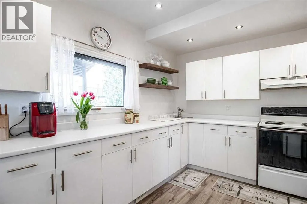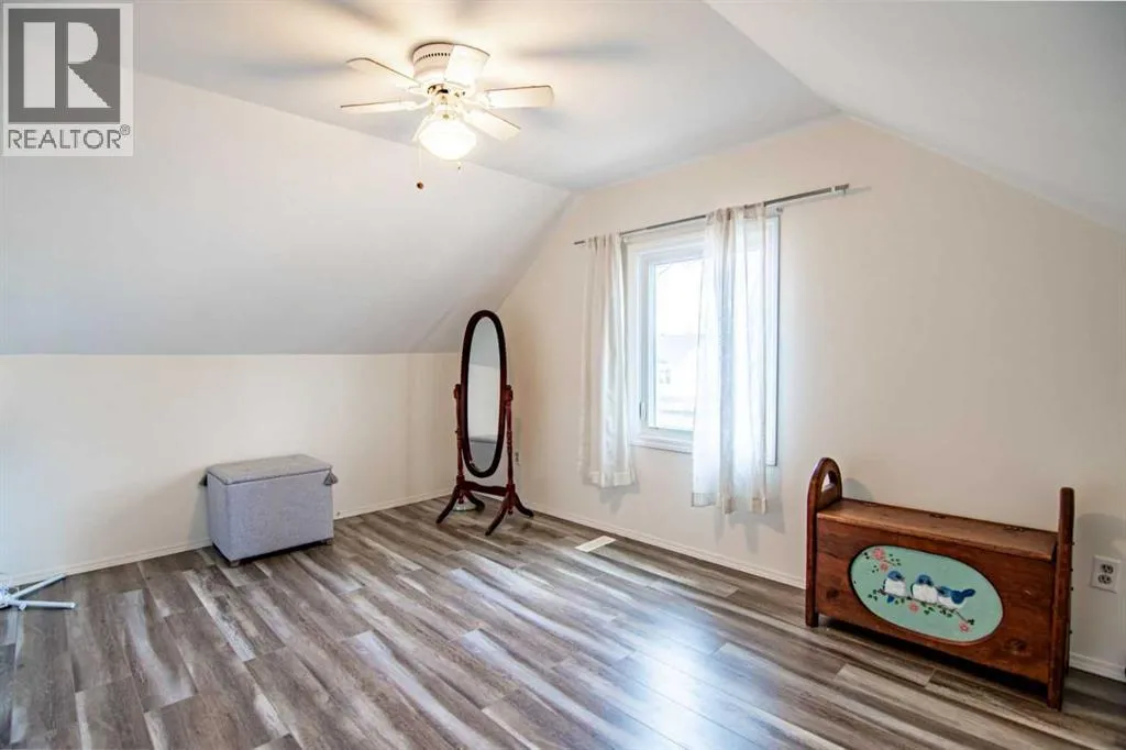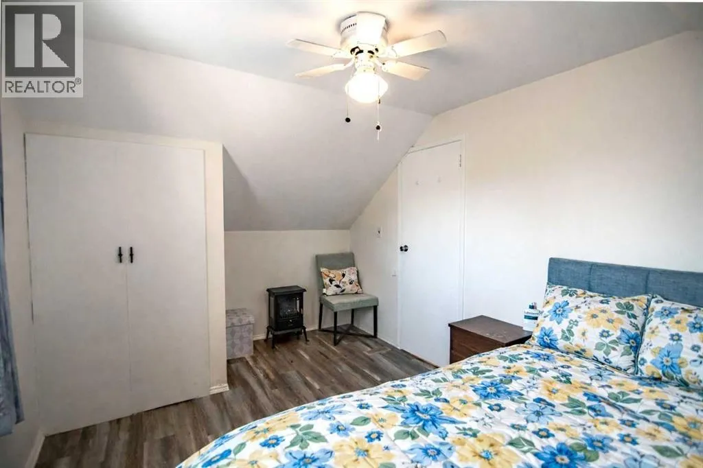 Click brochure link for more details. Move-in ready 2-bedroom, 2 bath detached 1 1/2 story character home with a large 2 CAR DETACHED GARAGE located in the heart of Ponoka! Situated on a large corner lot with mature spruce trees and a FULLY FENCED in back yard with a full row of cedar trees which will grow up to 18 ft for privacy! The main floor of the home features a spacious kitchen, combined dining and living room and 4-piece bath, while the upper level offers two spacious bedrooms, and a 2-piece bath, making it an ideal layout for families or guests. A full washer and dryer are located in the basement.This home has received substantial updates since 2021 including: new shingles, new hot water tank, new flooring, new paint throughout, new fence, two new windows, new front door, updated kitchen and bath. This home is steps to a beautiful park, schools and recreation facilities, with easy access to excellent shopping, dining and all other amenities within walking distance. (id:27476)
