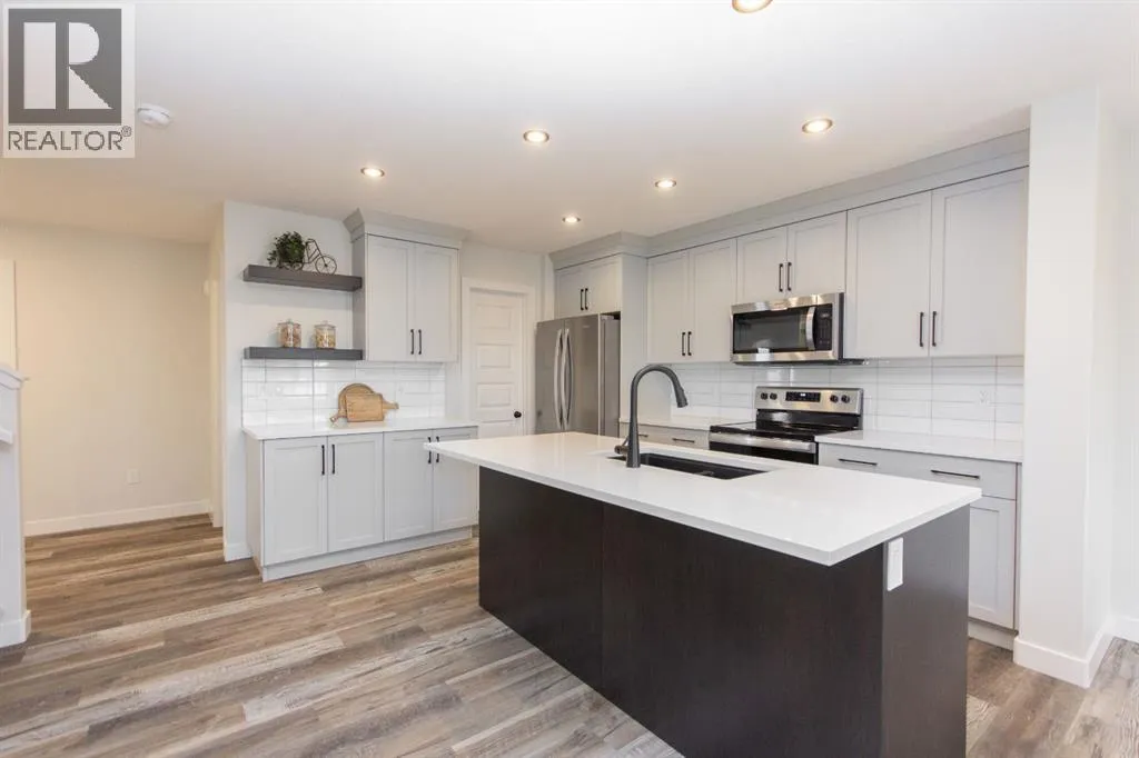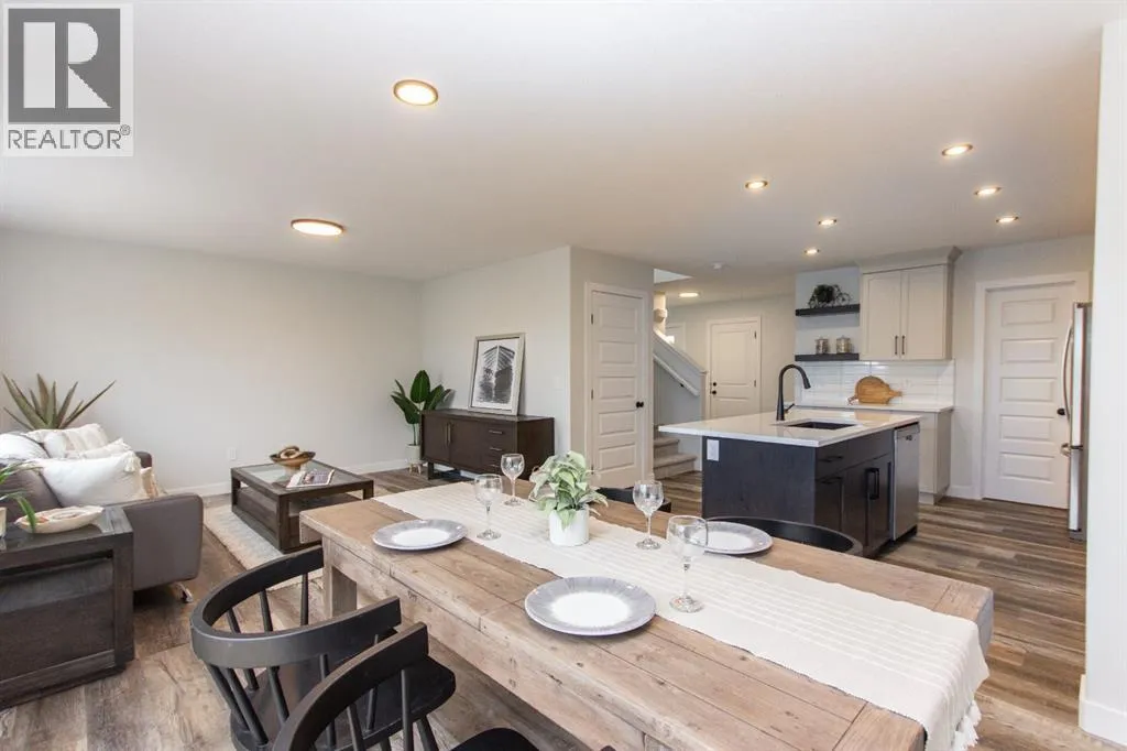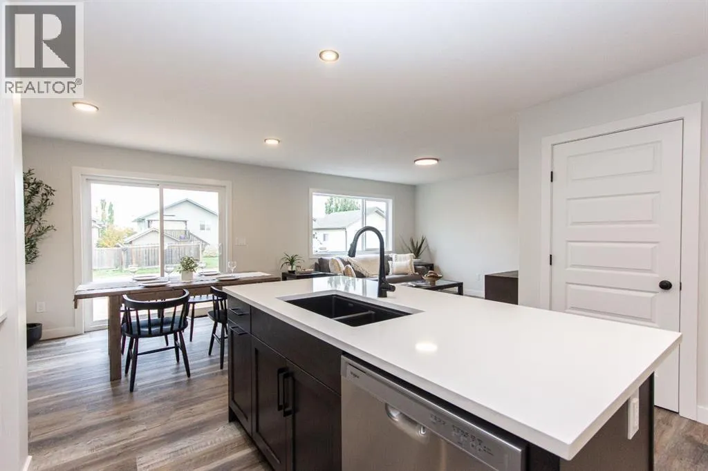 This brand new Laebon built home in beautiful Meadowlark Estates could be your new home! Situated only steps from a playground reserve and a huge park, and within walking distance to the high school, this home is the perfect place for a growing family. Offering 1707 square feet, this best selling 2 storey floorplan offers a wide open main floor layout, an attached double garage, and a large second floor bonus room. The kitchen is well appointed with two toned raised cabinetry, stainless steel appliances, quartz countertops, a large island with eating bar, and a large walk in pantry. The living area is spacious and bright, and the adjacent dining area offers access to the back deck through large sliding patio doors. Upstairs you'll find the spacious master bedroom suite with a large walk-in closet, and your own private 4 pce ensuite. Two kids rooms share a 4 pce bathroom, and you'll appreciate the convenience of upper floor laundry close to all the bedrooms. You'll love ending your day in the huge bonus room, which makes the perfect space for family movie nights or a relaxing space to wind down. The attached garage is insulated, drywalled, and taped. If you need more space, the builder can complete the basement development for you, and allowances can also be provided for a washer and dryer to make this a completely move in ready package. Poured concrete front driveway, front sod, and rear topsoil to grade are included in the price and will be completed as weather permits. 1 year builder warranty and 10 year Alberta New Home Warranty are included. Taxes have yet to be assessed. This home has an estimated completion date of mid April 2026. Photos and renderings are examples from a similar home built previously and do not necessarily reflect the exact finishes and colours used in this home. (id:27476)