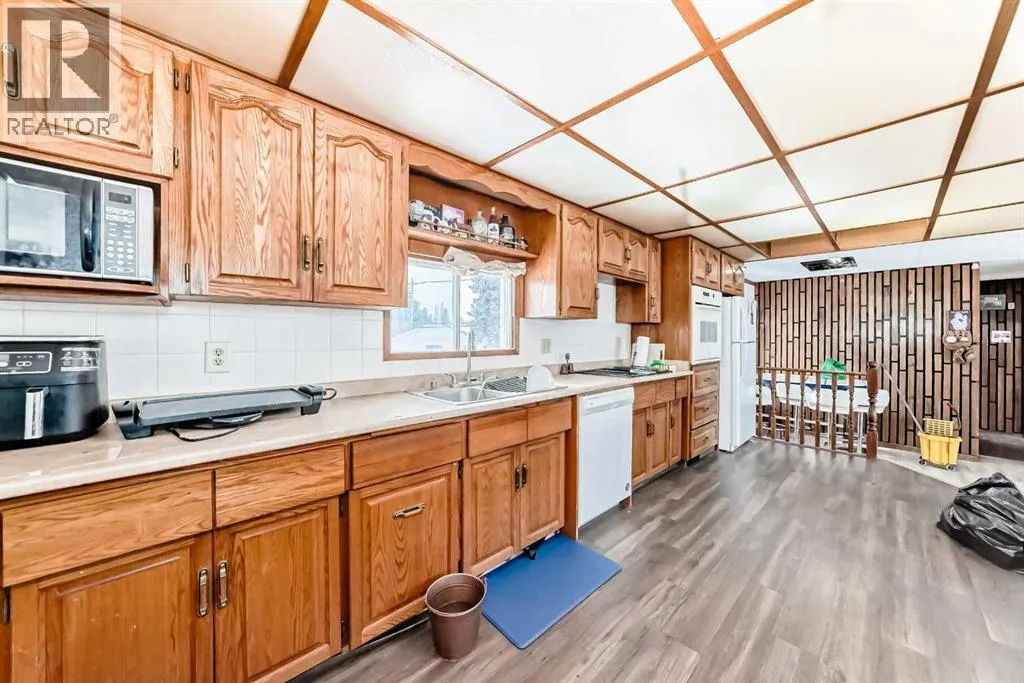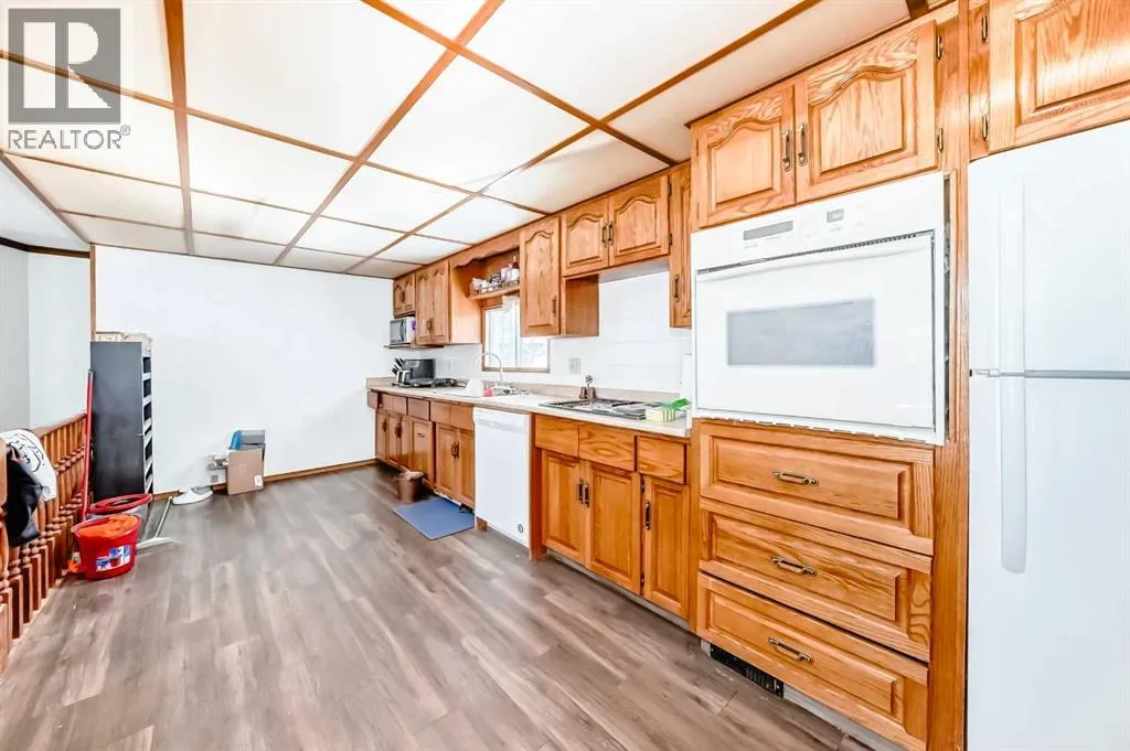 Spacious double lot with huge Bungalow featuring an incredible amount of living space and flexibility. It is ideal for large families or those looking for a great revenue property. With a thoughtful layout and generous square footage on both levels, this home provides comfort, function, and versatility. The upper level features a spacious primary bedroom along with two additional bedrooms. Two convenient bathrooms serve this level, while the bright living room provides a welcoming space to relax or entertain. The kitchen offers plenty of workspace and cabinetry and flows nicely into the dining area, creating a practical setting for everyday meals and gatherings. The lower level expands the possibilities even further with its own full living area. This level includes a second kitchen and dining space, a comfortable living room, and a large flex area that could be used as a recreation room, home office, gym, or additional family space depending on your needs. Two more bedrooms are located on this level, along with both a 3-piece bathroom with laundry and a 4-piece bathroom with laundry, adding convenience and functionality. Recent updates add further value and peace of mind, including a durable metal roof installed in 2025, a hot water tank replaced within the past three years, freshly painted lower-level living areas in 2025, and a recently upgraded bathroom on the lower level. With its unique layout, abundant square footage, and numerous updates, this property presents a rare opportunity to own a spacious home that offers exceptional flexibility for a variety of living arrangements. (id:27476)
