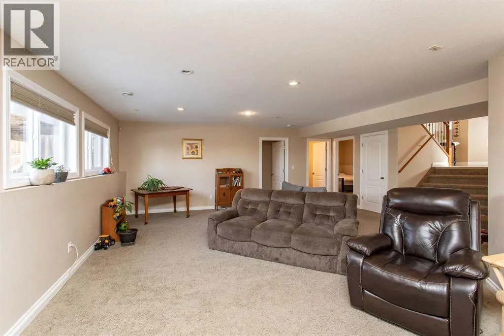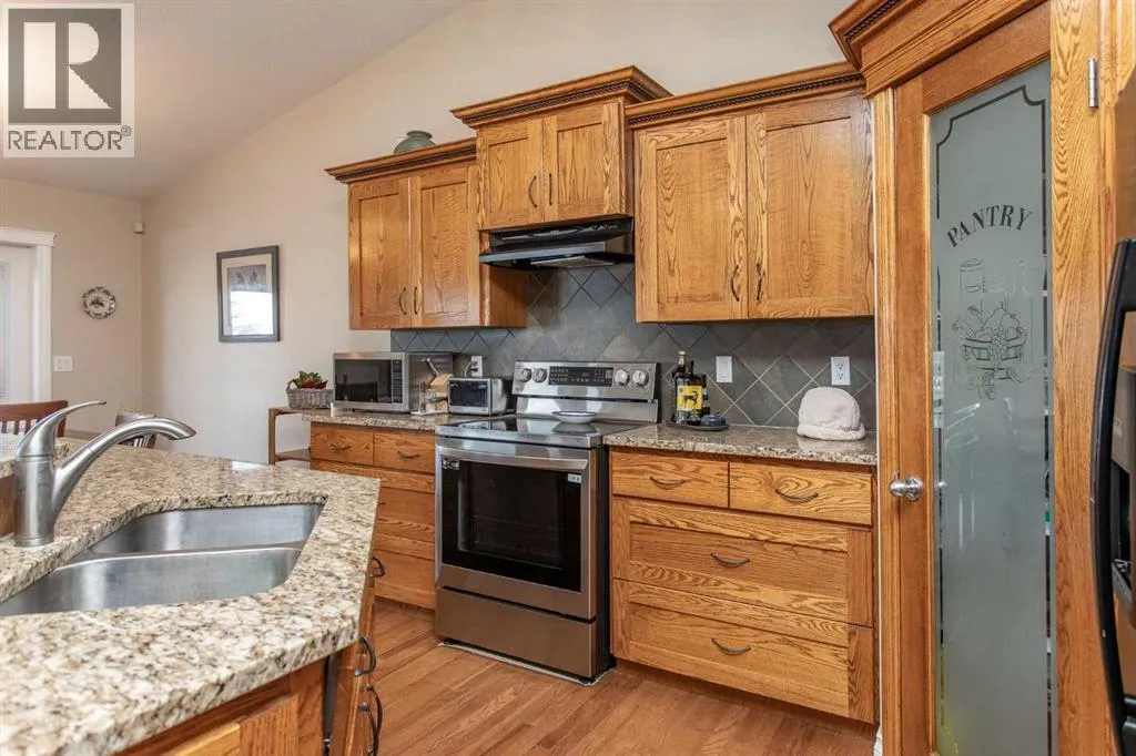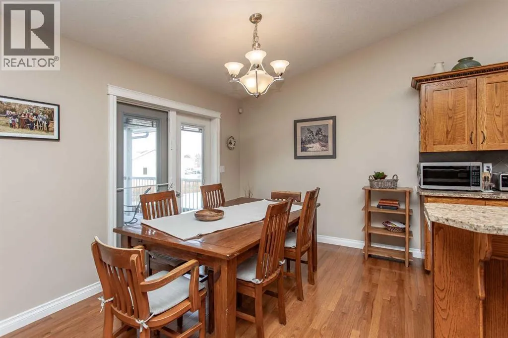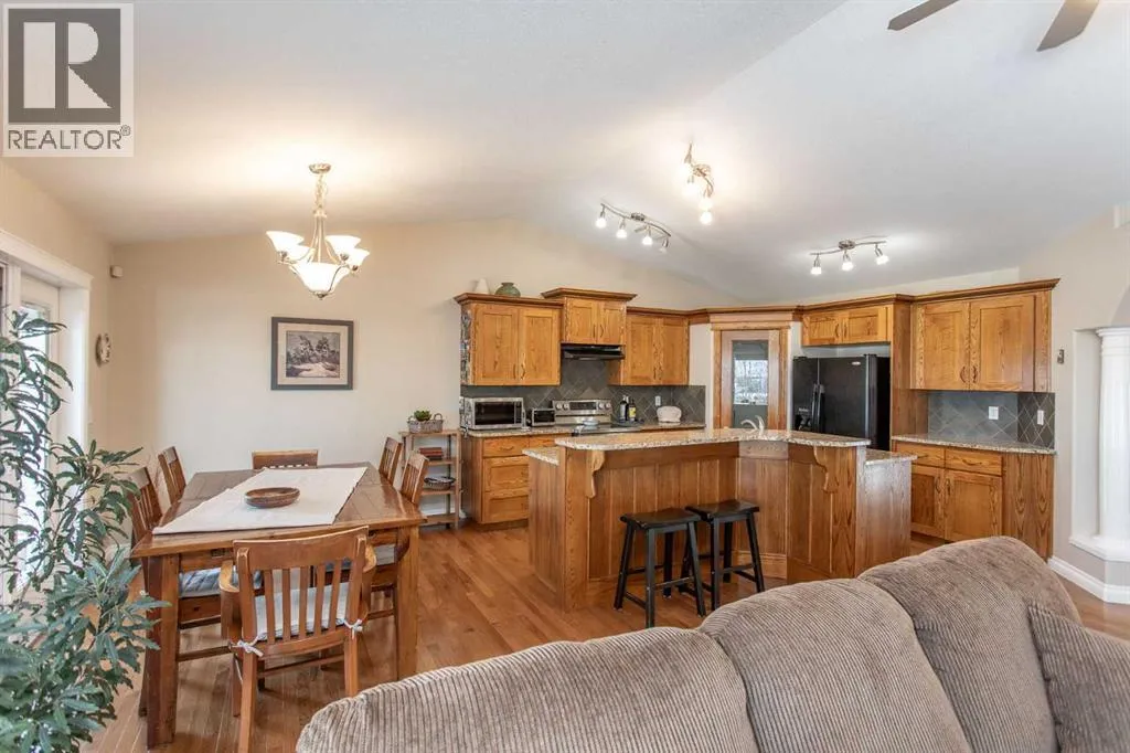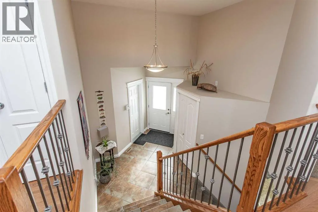 This well-maintained home in Ponokaâs Riverside area sits on a quiet cul de sac. It features quality craftsmanship, a spacious tiled entry, and inviting arches leading to the open-concept kitchen, dining, and living areas. The kitchen offers plenty of cabinets, granite countertops, and a corner pantryâideal for entertaining. Upstairs includes a primary bedroom with walk-in closet and ensuite, two additional bedrooms, and a four-piece bathroom. The finished basement has a family room with gas fireplace, two more bedrooms, another full bath, laundry, and in-floor heat. Additional highlights are underground sprinklers, gas BBQ hookup, landscaped yard with mature trees, and a firepitâperfect for summer evenings. This home is ready for its next family. (id:27476)