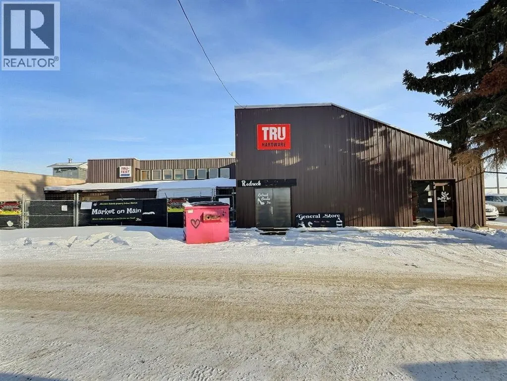Former Bank Location Built to Last !!! HIGH REVENUE YIELD MULTI TENANT Possible. River Bank Common !!!! Ideally Located on a corner lot at the intersection of 48 Ave. & 50 Street in Ponoka. Be a Landlord of Multiple Businesses, Golden Business Opportunity to own Land, Building & Business already included in List price! This centralized commercial retail property has the space and accommodations to house one, or a multitude of store fronts or retailers like it is currently hosting. With the expansive open floor plan on the main floor, or the individual retail spaces on the second floor with a suite. The Building is already home to many businesses Like Bruces hardware, aUkrainian themed Bistro , Boutique & much more possibilities. The building includes in the purchase price a bottled water business & equipmentcurrently in operation & ILCO key cutting machine. The Building has 2 separate wash rooms & 1 full bathroom with the suite. The suite has a huge potential for renting for even more rental yield. The brick exterior adds a rustic feel, along with the vast expanse of store front windows. Brand new Windows on the East & South of Building upgraded in 2026.Many different venues have utilized this expansive space for a multitude of purposes, from local markets, cafe's, aesthetic store fronts, retail, as well as a hardware and a general store. There is a green house attached towards the west of the building. Ideal for a nursery or vegetable growing & retail business. The area for the green house is over 1,300 Square feet (22' 7" x 64' 10") The fully fenced back yard is 1378 sq Ft (53'x26') . (id:27476)