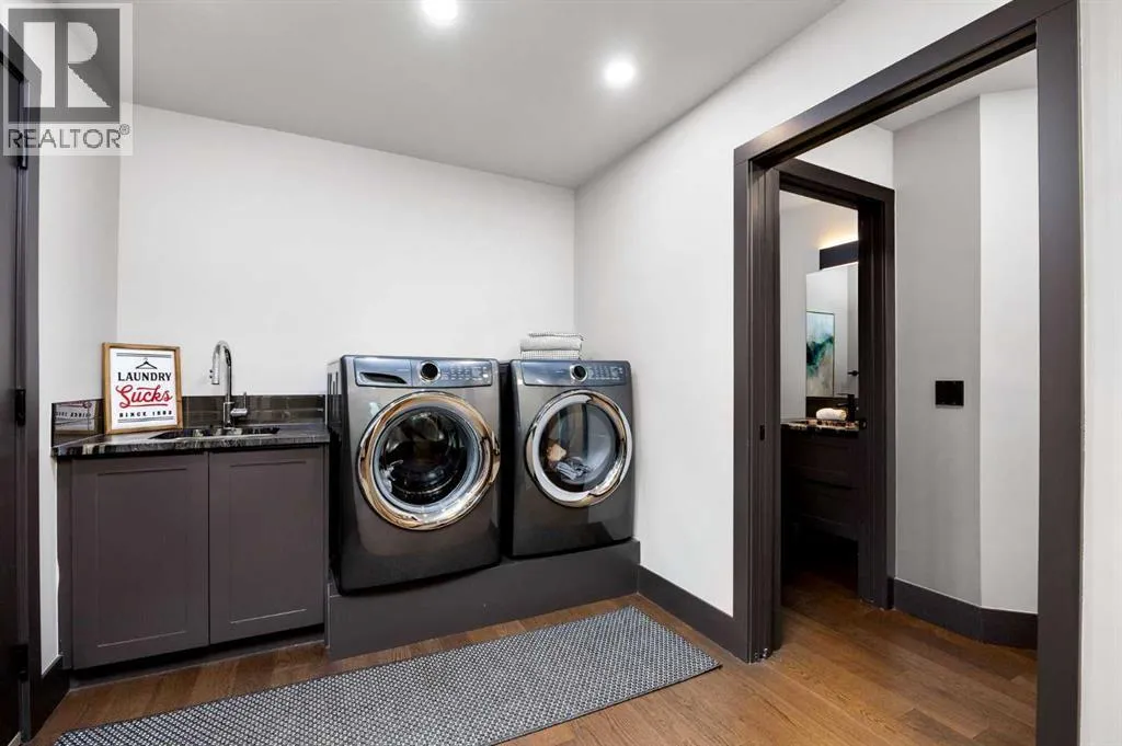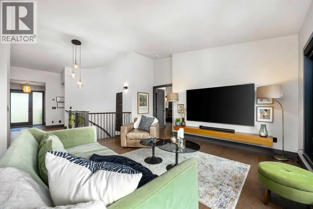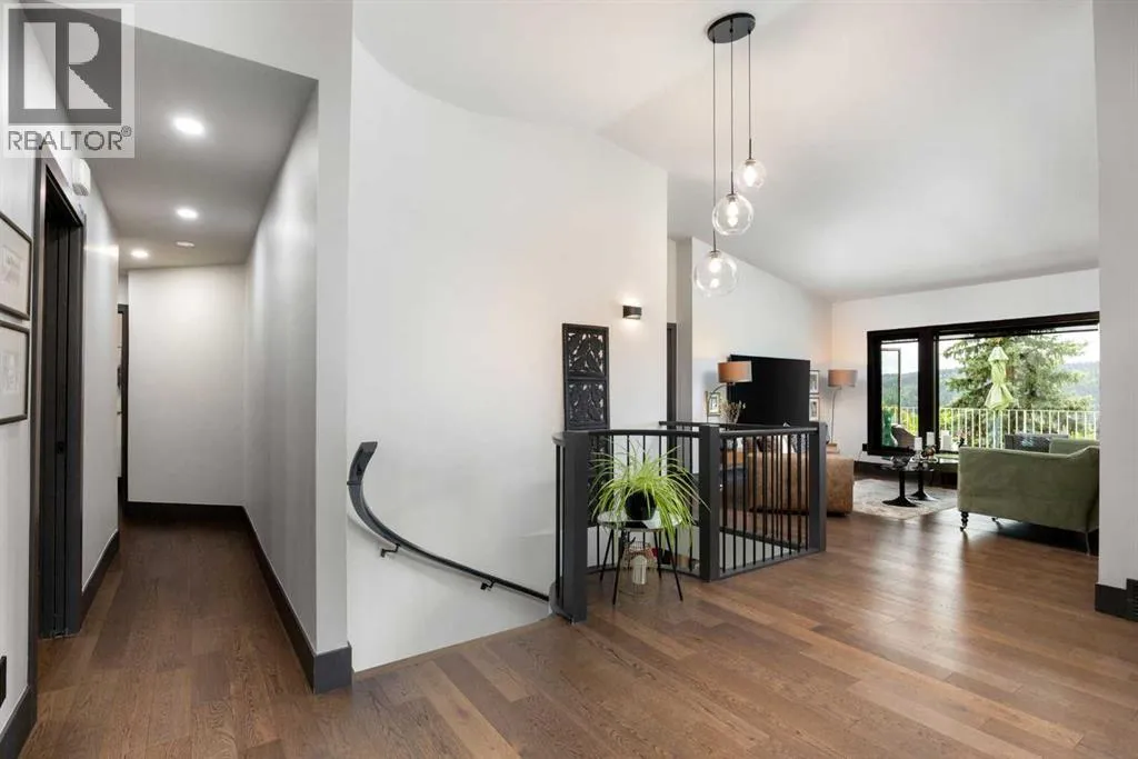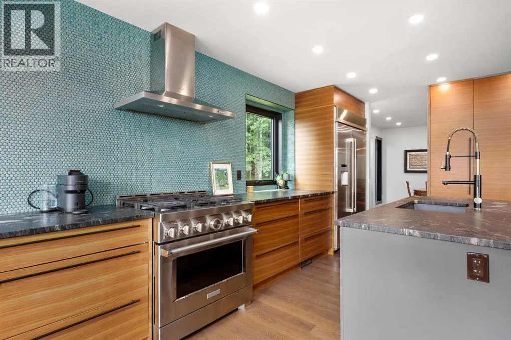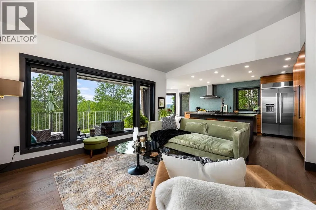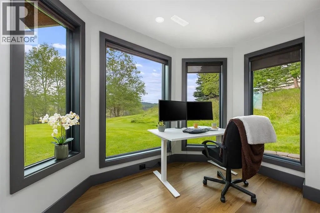 Welcome to 38 Sunrise Way â A Masterpiece of Luxury, Privacy, and Design, nestled on one of the most private and picturesque lots in the prestigious Priddis Greens golf community. This exceptional residence offers sweeping views of the mountains, valley, and fairways. This home showcases impeccable craftsmanship and thoughtful design, beginning with a dramatic curved staircase and a custom walnut bench that set the tone for the refined interiors, and a stunning, private den with brand new bay windows, nestled into the greenery. The open-concept main living area is anchored by expansive windows that frame the breathtaking natural surroundings. The chef-inspired kitchen features leathered marble granite countertops, an oversized island with storage, a premium KitchenAid refrigerator with theatre lighting and ice/water dispenser, a Blanco granite sink, a gas range with a sleek hood fan, and a striking green penny tile backsplash, accompanied by a custom seating area looking out into the view. The primary suite is a retreat, with heated floors, dual rain showers with multiple jets, metallic penny tile backsplashes, double vanities, an extended makeup station, and a custom walk-in closet outfitted with high-end organizers. Head down the hall where youâll find an impressive laundry and mudroom with a raised washer and dryer, sink, and custom cabinetry, and a two piece bathroom with metallic penny tile and leathered marble granite. Head downstairs to the lower level, offering a versatile entertainment space with a wet bar, pool table, ample storage, and flexible areas for hobbies or guest accommodations. A newly added fireplace with upgraded ducting enhances comfort and ambiance. A newly installed sliding patio door with structural beam support leads to a spacious, private deck, ideal for entertaining, featuring sidewalk coating and 220V wiring for future enhancements. The outdoor space offers a stunning opportunity for soaking in the surroundings, looking out across a pan oramic view spanning the south, east, and west. Extensive upgrades include LUX triple-pane windows with aluminum cladding, new engineered hardwood upstairs and luxury vinyl plank downstairs, enhanced lighting with pot lights and USB outlets, ethernet Cat 6 wiring and soundproofing on shared walls, two new furnaces and central A/C, heated, oversized garage with a new door, opener, and space for two vehicles plus a golf cart, smart thermostats and CO2 detectors, new washer and dryer and plumbing fixtures, added roof insulation and weeping tile, new aluminum siding on the garage and front window, and a fully repainted trim package. All bathrooms are appointed with high-efficiency toilets, Blanco sink floating vanities, and designer fixtures. This property is part of a well-managed condo board with a strong reserve fund, offering peace of mind and long-term value. From its elevated design and premium finishes to its unparalleled location, 38 Sunrise Way represents the pinnacle of luxury living. (id:27476)