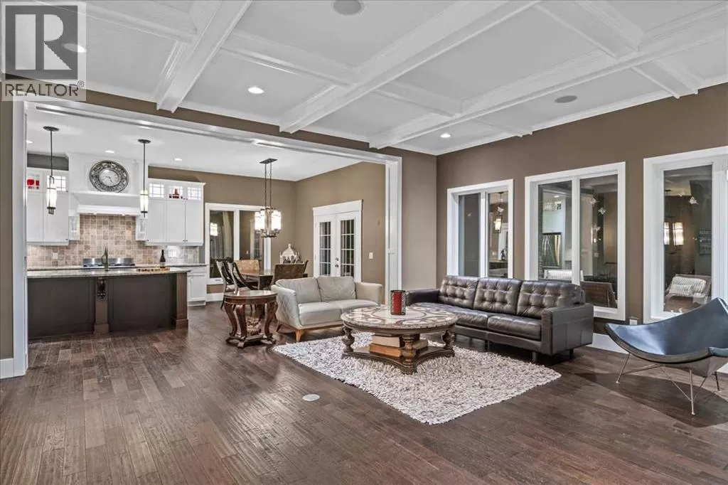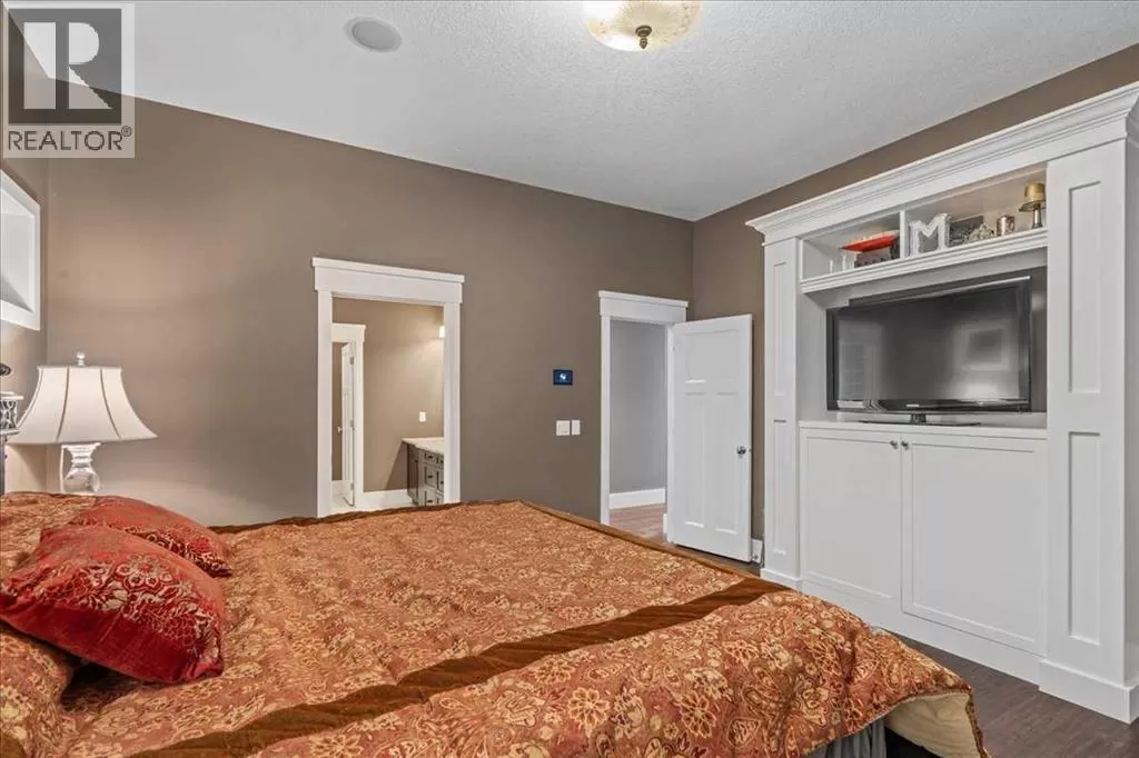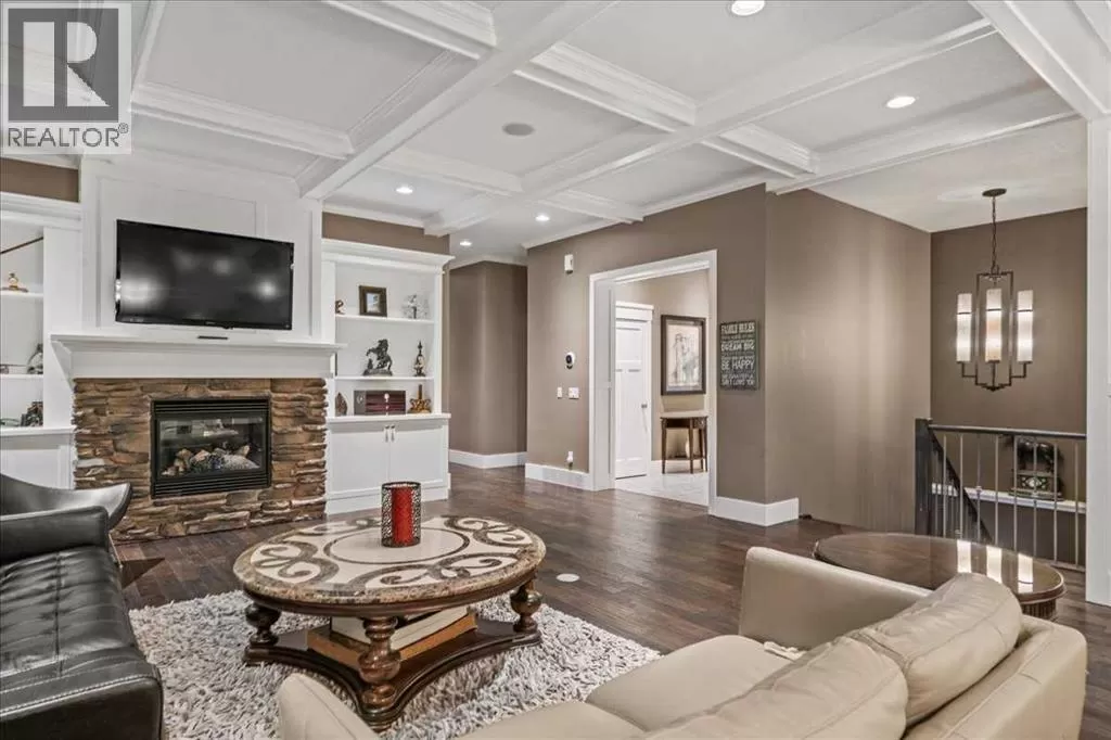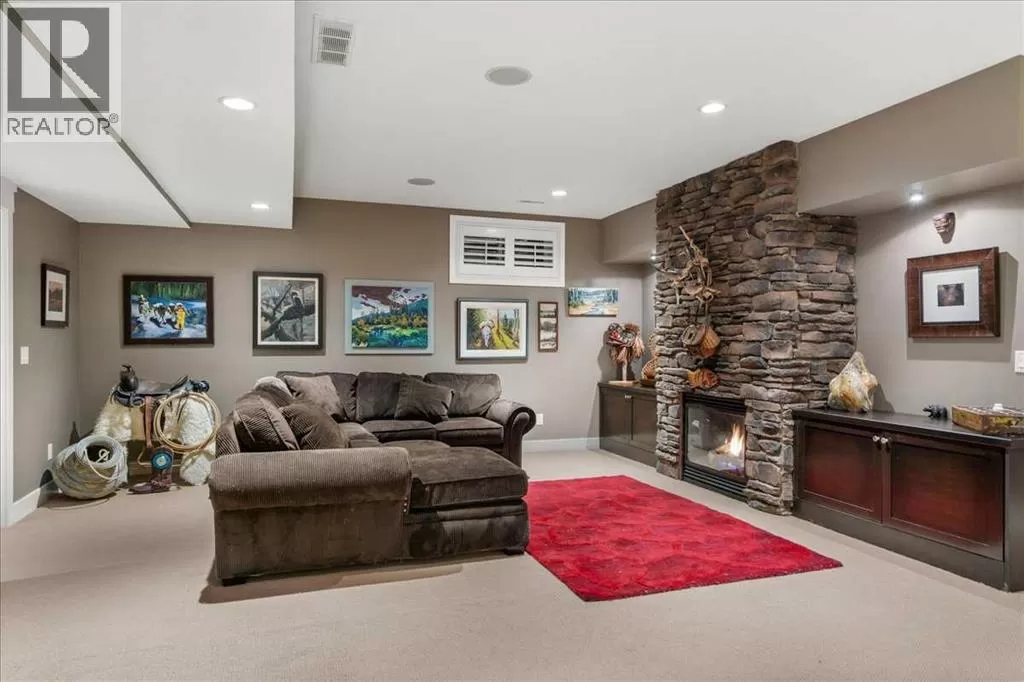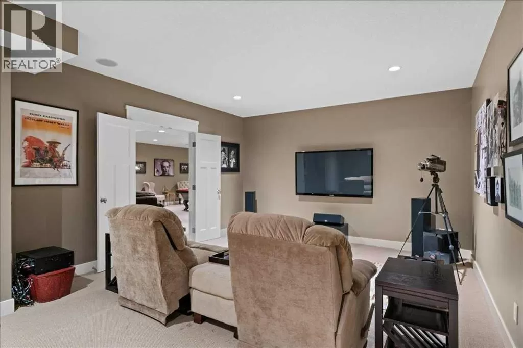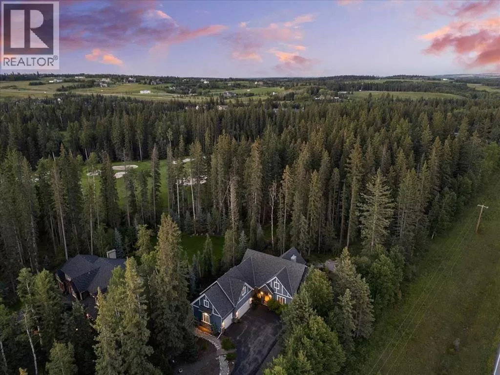 This custom crafted Bungalow built by Richfield Custom Homes is perfectly set on the largest lot (1.53 acres) and 4,406 ft.² of total living space in the private golf course community of Priddis Greens. This luxury residence blends functional design with the private, quiet tranquility of living in the forest. Upon arrival, you are captivated by the winding driveway, hiding your home from view, completely surrounded by towering trees providing the immediate feel of peaceful living. Professional landscaped and carefully designed with a false rock creek that winds gracefully from front to back, a serene natural flow through the property, perfect for that nature feeling without the upkeep. Step inside to find 10-foot ceilings on your Main Level, stylish coffered ceiling in the living room, complimented by charming hardwood throughout. The chef-inspired kitchen showcases an Electrolux 6 burner gas stove, bright granite counters and a walk-through pantry. The open-concept main floor features a stone surround gas fireplace, spacious mudroom showcasing built-ins with overhead and under seat storage, main-floor laundry, and a full 4 pc bathroom off the laundry area. The Ownersâ Suite is truly a private retreat with an impressive walk-in closet and a 5 pc ensuite with dual sinks, a walk-in shower and soaker tub. A 2nd Main-Level bedroom offers a full 4 pc ensuite, dual closets and custom built-in cabinetry. Above the garage, youâll find a versatile loft with 2 closets and a built-in desk, ideal for office remote work, hobbies or easily convert it into the 4th bedroom. A true flex space for unlimited functions. The Lower-Level features plush carpet with âHush Puppyâ underlay, in-floor heat, a 2nd gas fireplace, large bedroom, cork floor gym, and a full bathroom. Entertain guests in your gaming area set with a pool table just off the wet bar, or in your private theatre room for the game or family movie nights. Step into your chilled wine room chose one of your 650+ available w ine bottles, grab your favorite and enjoy the quiet stillness of your 1.53 acre lot surrounded on your impressive full width deck. Just off the deck, walk down to rare (grandfathered) wood-burning fire pit, perfect for warm gatherings under the stars. The features of this beautiful home are endless with central vac, LED lighting throughout the home and impressive technology package managed through your Control 4 Home Automation System. The oversized triple garage includes high ceiling height for the car enthusiast. With the completion of Stoney Trail, you are 15 mins from the new Costco and the expansive Buffalo Run Shopping Centre and less than 30 mins to Downtown. Donât want to travel into the city? The Azuridge Hotel & Spa is a true hidden gem, located minutes away for your home, perfect for lunch or dinner dates for all celebrations, a spa for those needed relaxing days, and hiking trails. This community truly offers the perfect blend of peace, privacy, great neighbours and access to all amenities. (id:27476)