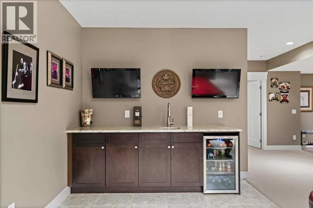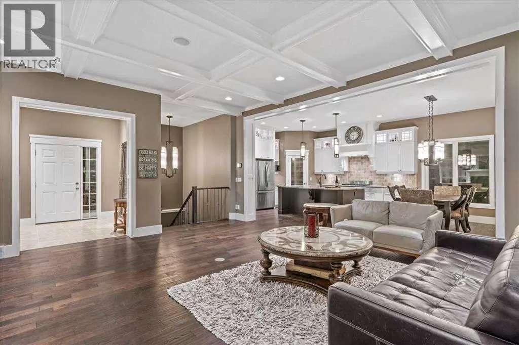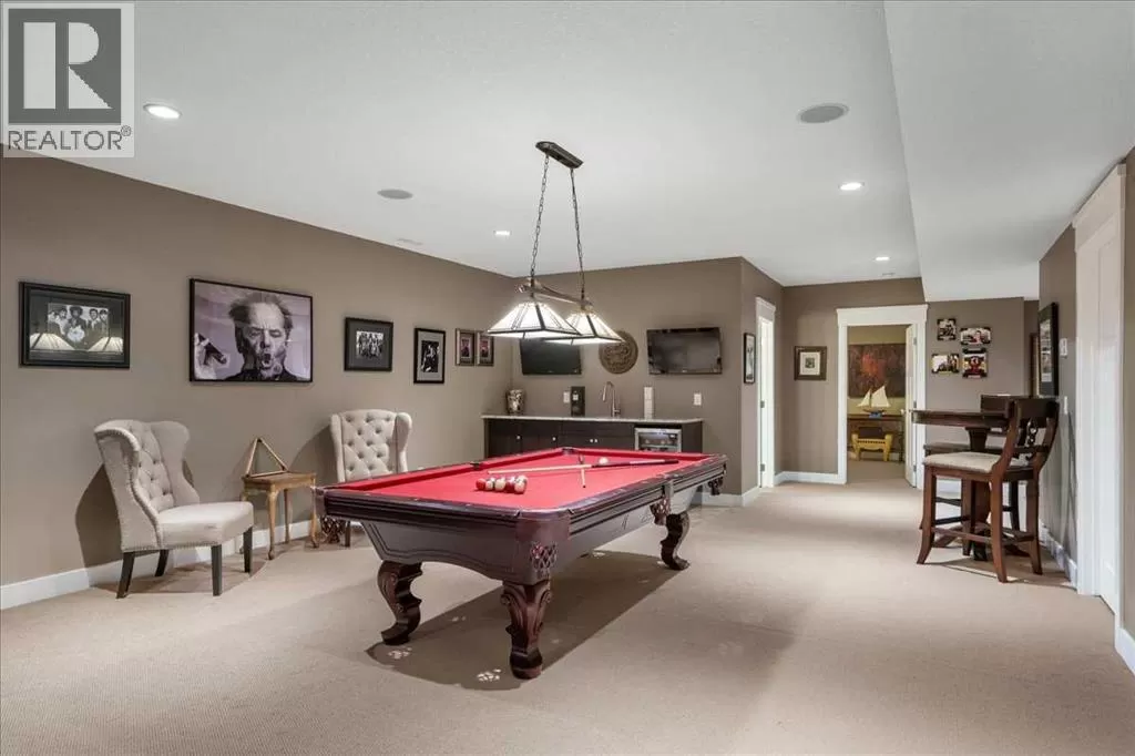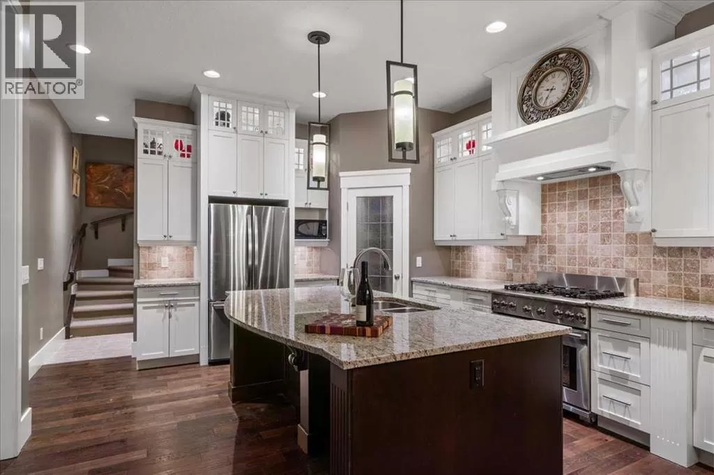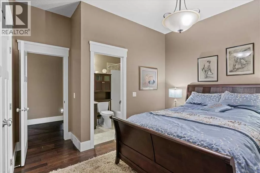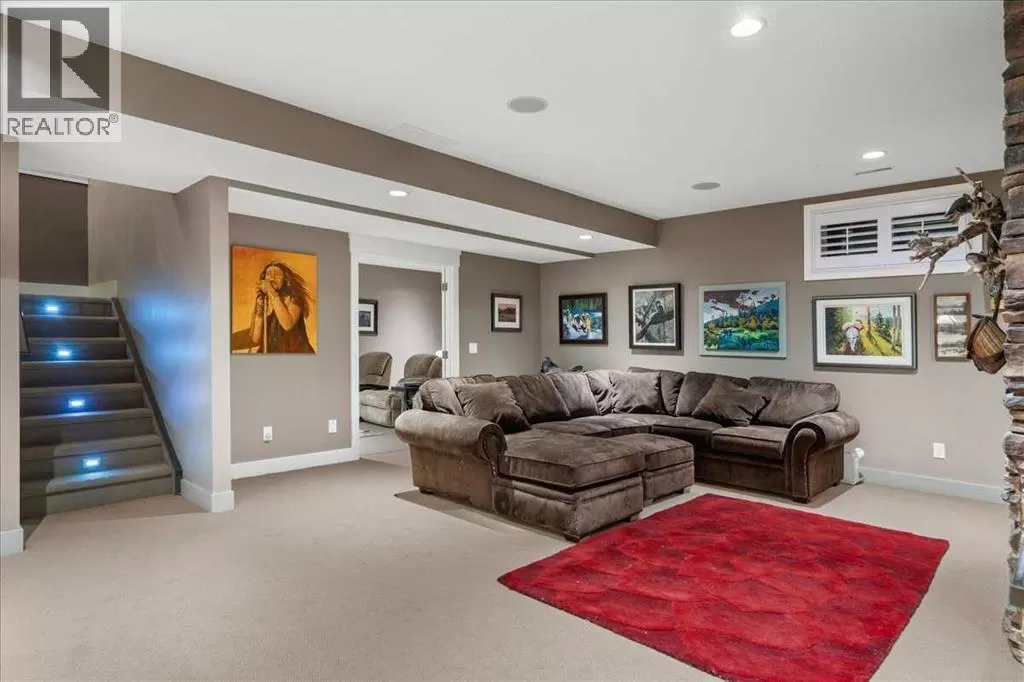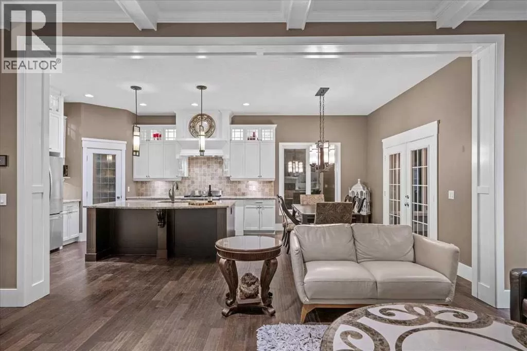 This custom crafted Bungalow built by Richfield Custom Homes is perfectly set on the largest lot (1.53 acres) and 4,406 ft.² of total living space in the private golf course community of Priddis Greens. This luxury residence blends functional design with the private, quiet tranquility of living in the forest. Upon arrival, you are captivated by the winding driveway, hiding your home from view, completely surrounded by towering trees providing the immediate feel of peaceful living. Professional landscaped and carefully designed with a false rock creek that winds gracefully from front to back, a serene natural flow through the property, perfect for that nature feeling without the upkeep. Step inside to find 10-foot ceilings on your Main Level, stylish coffered ceiling in the living room, complimented by charming hardwood throughout. The chef-inspired kitchen showcases an Electrolux 6 burner gas stove, bright granite counters and a walk-through pantry. The open-concept main floor features a stone surround gas fireplace, spacious mudroom showcasing built-ins with overhead and under seat storage, main-floor laundry, and a full 4 pc bathroom off the laundry area. The Ownersâ Suite is truly a private retreat with an impressive walk-in closet and a 5 pc ensuite with dual sinks, a walk-in shower and soaker tub. A 2nd Main-Level bedroom offers a full 4 pc ensuite, dual closets and custom built-in cabinetry. Above the garage, youâll find a versatile loft with 2 closets and a built-in desk, ideal for office remote work, hobbies or easily convert it into the 4th bedroom. A true flex space for unlimited functions. The Lower-Level features plush carpet with âHush Puppyâ underlay, in-floor heat, a 2nd gas fireplace, large bedroom, cork floor gym, and a full bathroom. Entertain guests in your gaming area set with a pool table just off the wet bar, or in your private theatre room for the game or family movie nights. Step into your chilled wine room chose one of your 650+ available w ine bottles, grab your favorite and enjoy the quiet stillness of your 1.53 acre lot surrounded on your impressive full width deck. Just off the deck, walk down to rare (grandfathered) wood-burning fire pit, perfect for warm gatherings under the stars. The features of this beautiful home are endless with central vac, LED lighting throughout the home and impressive technology package managed through your Control 4 Home Automation System. The oversized triple garage includes high ceiling height for the car enthusiast. With the completion of Stoney Trail, you are 15 mins from the new Costco and the expansive Buffalo Run Shopping Centre and less than 30 mins to Downtown. Donât want to travel into the city? The Azuridge Hotel & Spa is a true hidden gem, located minutes away for your home, perfect for lunch or dinner dates for all celebrations, a spa for those needed relaxing days, and hiking trails. This community truly offers the perfect blend of peace, privacy, great neighbours and access to all amenities. (id:27476)