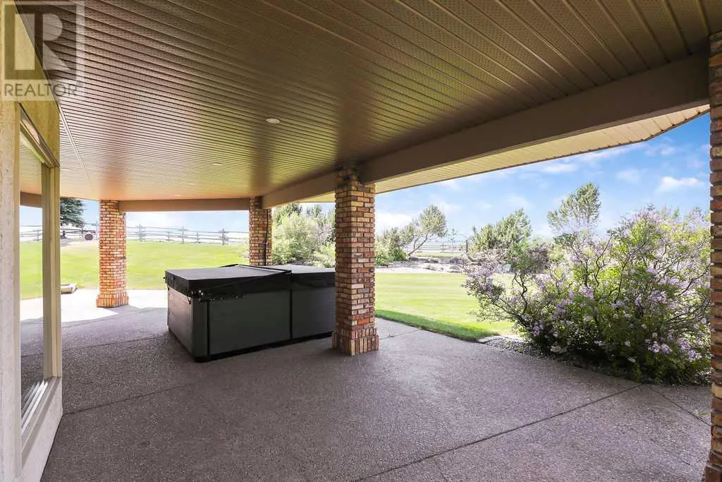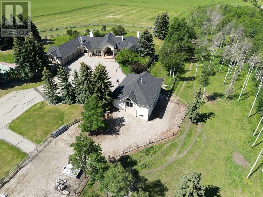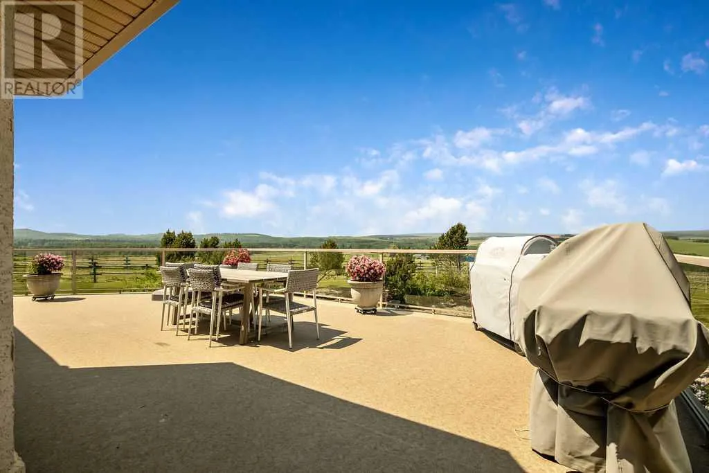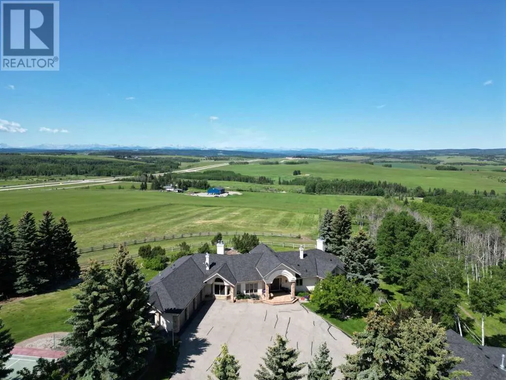 Luxury Walk-Out Bungalow on Gated Acreage with Breathtaking Mountain ViewsJust minutes from the city limits, this extraordinary walk-out bungalow offers over 6,900 square feet of beautifully finished living space on a private, gated estate. With 6 spacious bedrooms, 4 bathrooms, and a chefâs dream kitchen, this property is the perfect blend of luxury, functionality, and rural tranquility.Step inside to a grand entrance that opens to soaring ceilings, new designer lighting, and elegant finishes throughout. The main floor features a retreat-like primary suite, complete with spa-inspired amenities, while heated floors in the expansive basement offer year-round comfort. Three fireplaces add warmth and ambiance to the main living areas.Outdoors, the stunning mountain views provide a breathtaking backdrop to the beautifully landscaped grounds, complete with an underground sprinkler system, mature trees, and new decks for entertaining. Enjoy your own tennis/pickleball court, paved driveway, and two triple-car garagesâeach with brand-new door openers.Equestrian enthusiasts will appreciate the fully equipped barn with three horse stalls and a tack room, plus fenced and cross-fenced pastures with five paddocks, featuring wood and electric fencing, automatic waterer, and two horse shelters.This property truly has it allâprivacy, space, luxury, and accessibility. Whether you're hosting guests, raising a family, or enjoying the peace of country living with your horses, this exceptional home delivers on every level. (Mountain view pictures will be updated once the smoke clears, Bordering 55 acres also for sale) (id:27476)