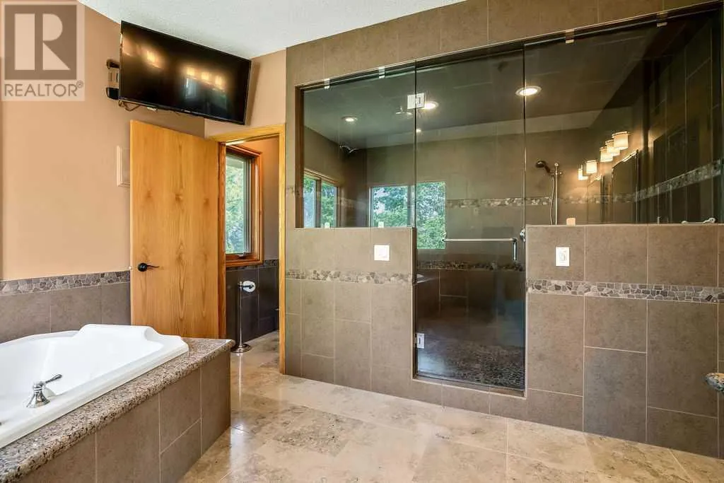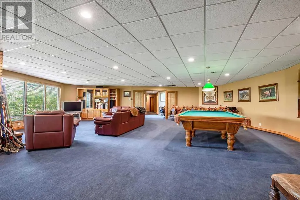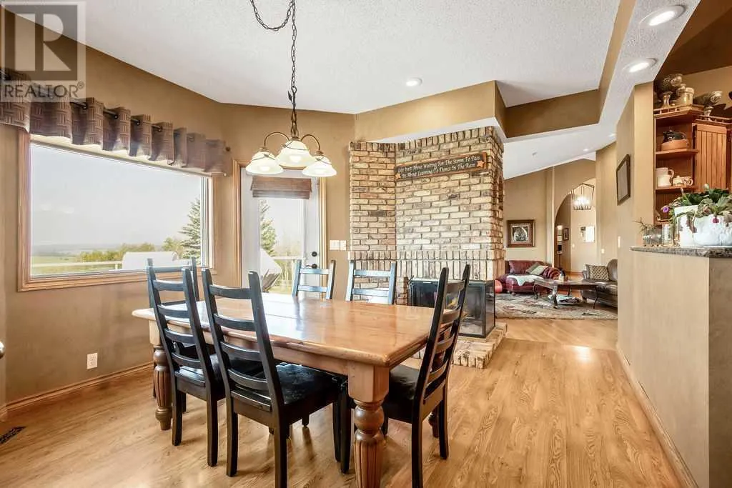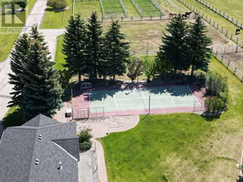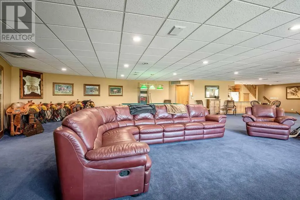 Luxury Walk-Out Bungalow on Gated Acreage with Breathtaking Mountain ViewsJust minutes from the city limits, this extraordinary walk-out bungalow offers over 6,900 square feet of beautifully finished living space on a private, gated estate. With 6 spacious bedrooms, 4 bathrooms, and a chefâs dream kitchen, this property is the perfect blend of luxury, functionality, and rural tranquility.Step inside to a grand entrance that opens to soaring ceilings, new designer lighting, and elegant finishes throughout. The main floor features a retreat-like primary suite, complete with spa-inspired amenities, while heated floors in the expansive basement offer year-round comfort. Three fireplaces add warmth and ambiance to the main living areas.Outdoors, the stunning mountain views provide a breathtaking backdrop to the beautifully landscaped grounds, complete with an underground sprinkler system, mature trees, and new decks for entertaining. Enjoy your own tennis/pickleball court, paved driveway, and two triple-car garagesâeach with brand-new door openers.Equestrian enthusiasts will appreciate the fully equipped barn with three horse stalls and a tack room, plus fenced and cross-fenced pastures with five paddocks, featuring wood and electric fencing, automatic waterer, and two horse shelters.This property truly has it allâprivacy, space, luxury, and accessibility. Whether you're hosting guests, raising a family, or enjoying the peace of country living with your horses, this exceptional home delivers on every level. (Mountain view pictures will be updated once the smoke clears, Bordering 55 acres also for sale) (id:27476)