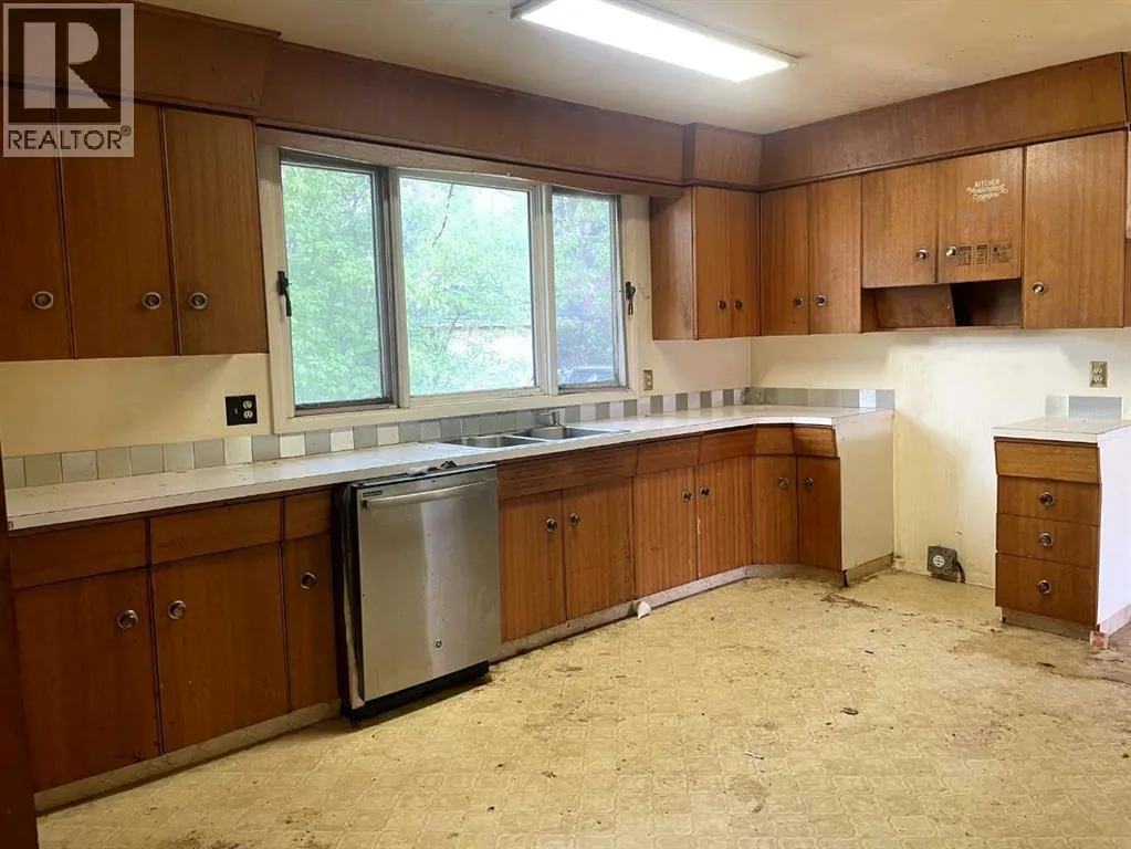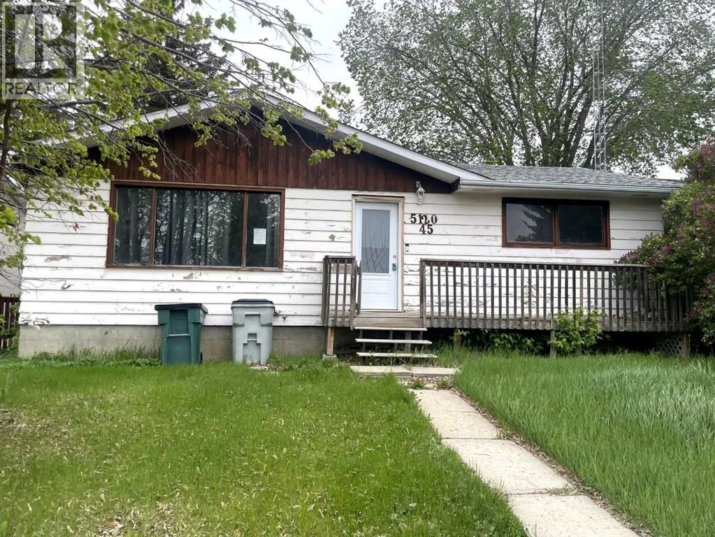 Opportunity awaits with this bungalow in Provost. The property is conveniently located close to both k-12 schools and downtown amenities. The lot is partially fenced with a 24'x16' detached garage and large rear deck. Cosmetic upgrades could yield large equity gains on this property! The main floor consists of a large living room and kitchen, along with 2 bedrooms and 4pc bathroom. The basement is setup with 2 additional bedrooms, large family room and tons of storage space. (id:27476)