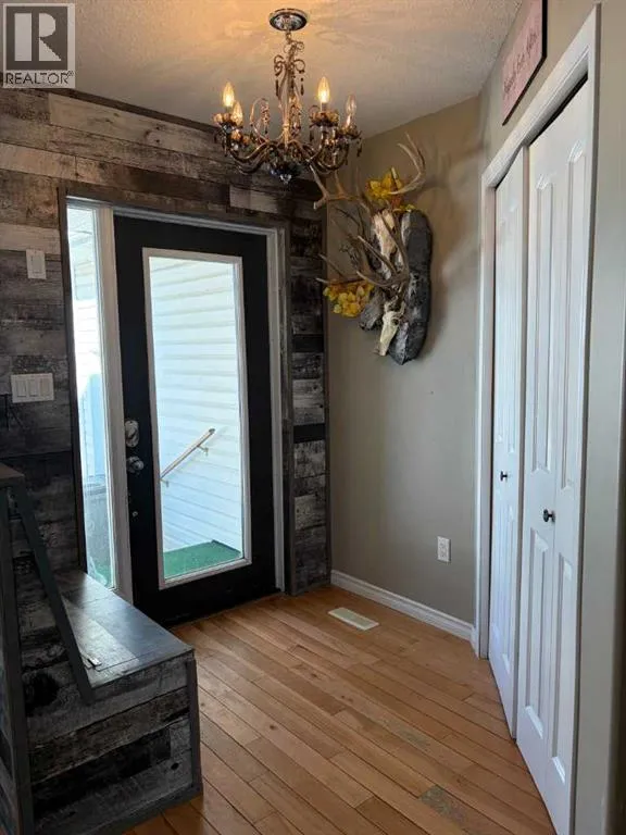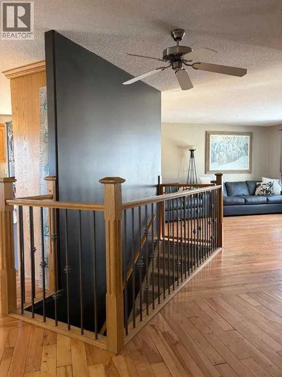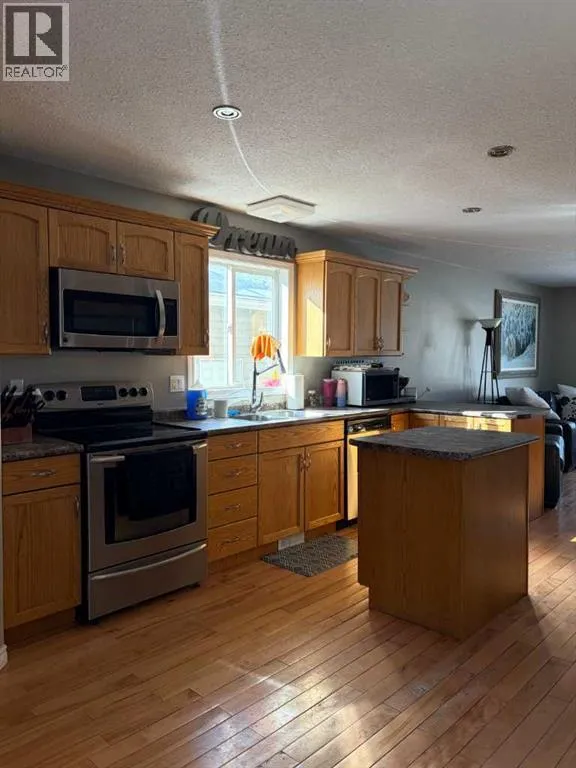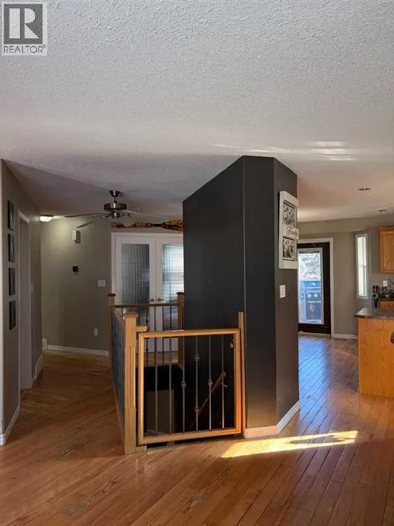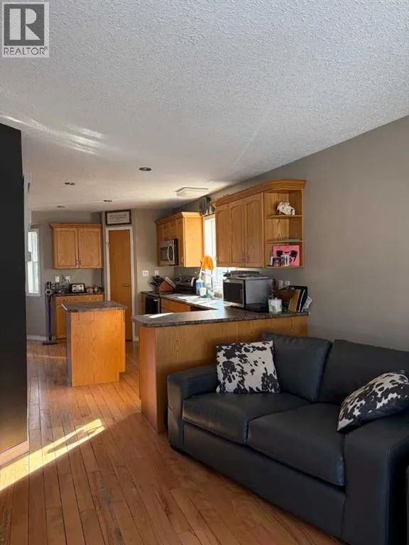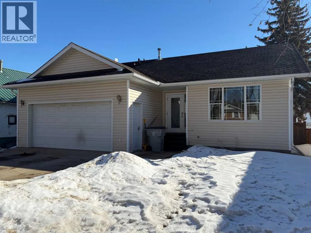 Welcome to this well kept bungalow on the west end of Provost. Conveniently located close to main street amenities on a quiet block. This property is complete and ready to go. Built in 2006, this 1,000sqft bungalow has an attached double garage, fully fenced yard and air conditioning. The main floor is bright and welcoming with an open concept living room/kitchen setup. The hardwood floors flow throughout the main level and complement the oak cabinetry, modern finishes and stainless steel appliance package. There are two bedrooms, two bathrooms, laundry and backyard access from the main level. The basement is finished with two additional bedrooms, another 4pc bathroom and a large rec area for entertaining. A new hot water tank was installed in 2023. (id:27476)
