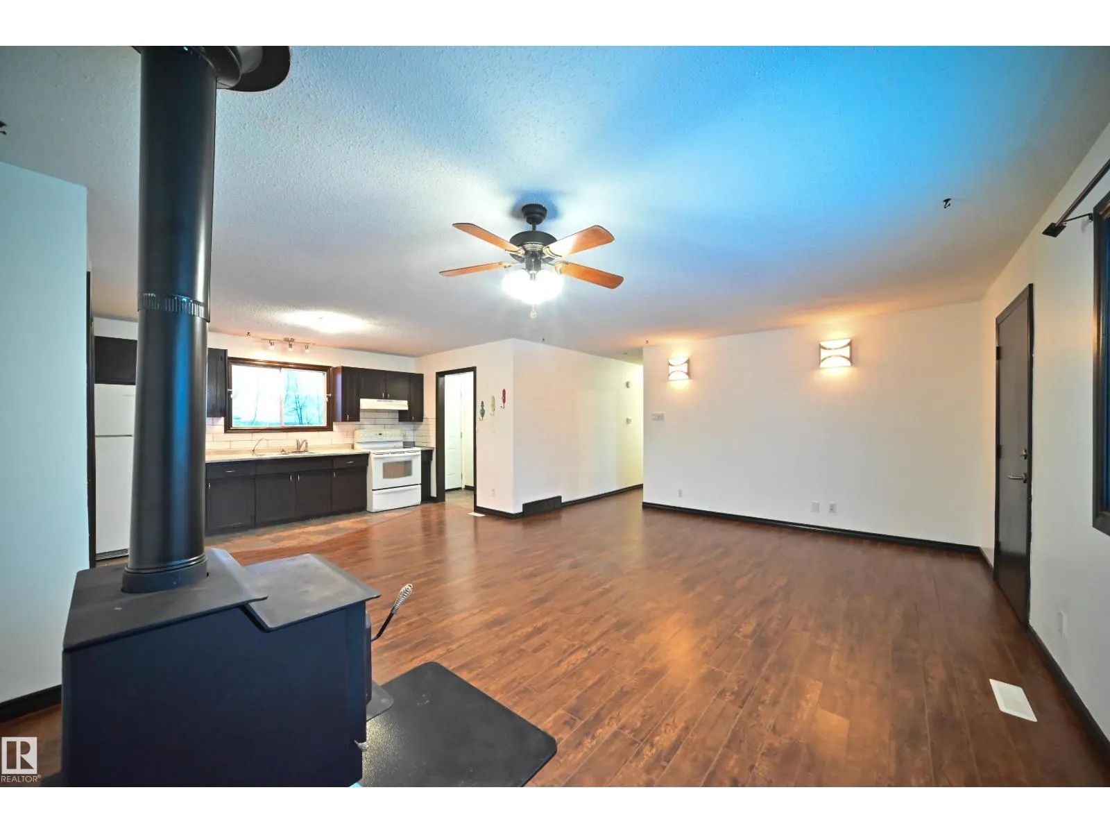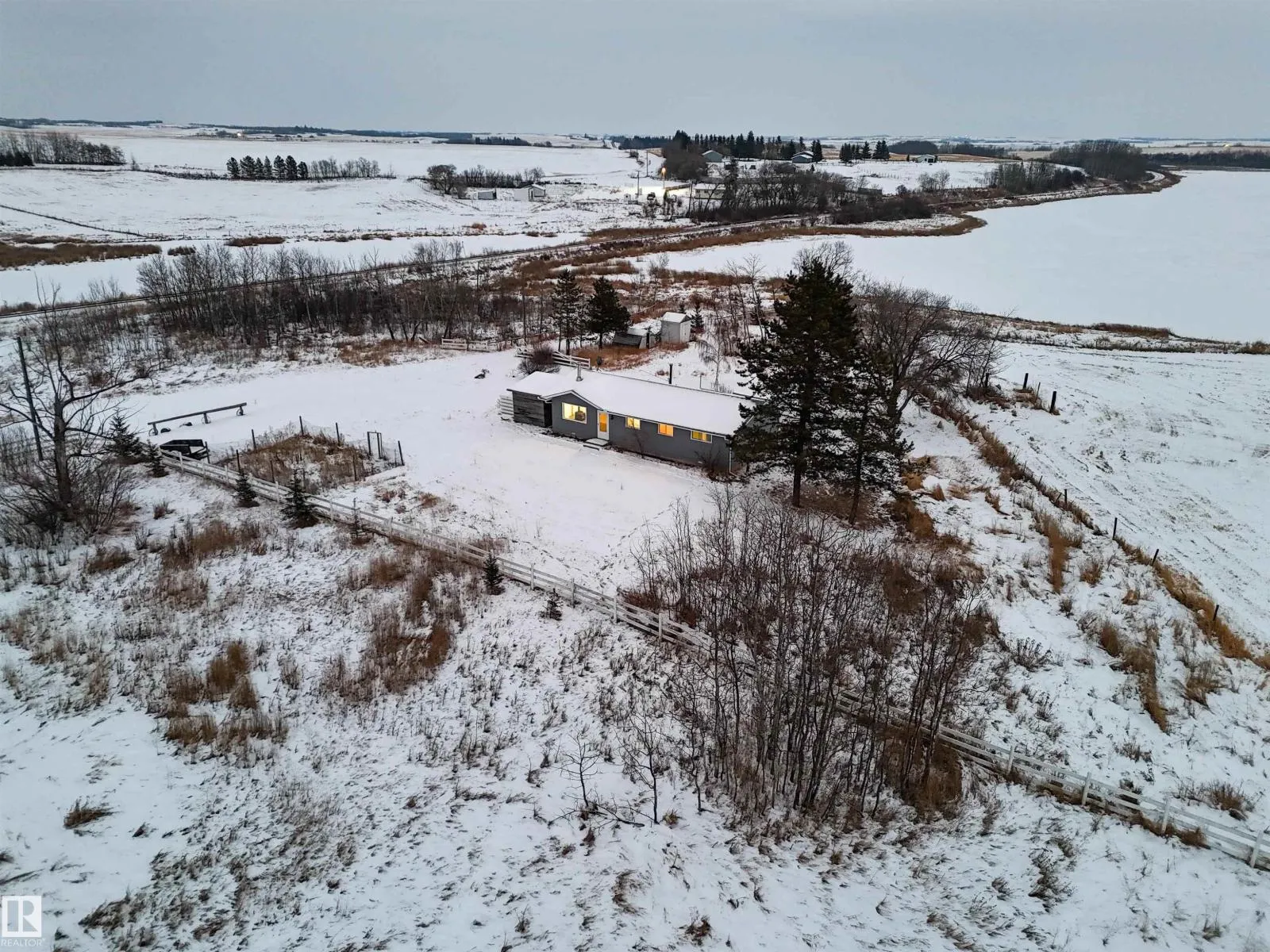 Affordable acreage located in the hamlet of Ranfurly, AB. This 1,194.80 sq ft, 4-bedroom bungalow is situated on 2.3 acres of private land with direct access to Elizabeth Lake. The home features a spacious living room, a great sized kitchen with ample natural light, and a 5-piece bathroom. Additional highlights include a massive under-crawl space for storage, a cistern water system, and a reverse osmosis system. The property offers abundant outdoor space for tools, toys, and RV parking, along with affordable property taxes. Recent updates include a furnace, hot water tank, laminate flooring, and a certified wood-burning stove. An excellent opportunity for buyers seeking a quiet, private acreage with the convenience of nearby amenities. Ranfurly is located 1 kilometer (0.62 mi) north of Highway 16, approximately 121 kilometres (75 mi) east of Edmonton - Move In Ready!!! (id:27476)