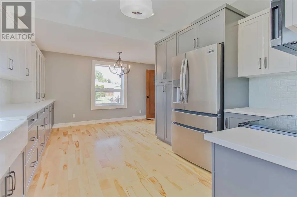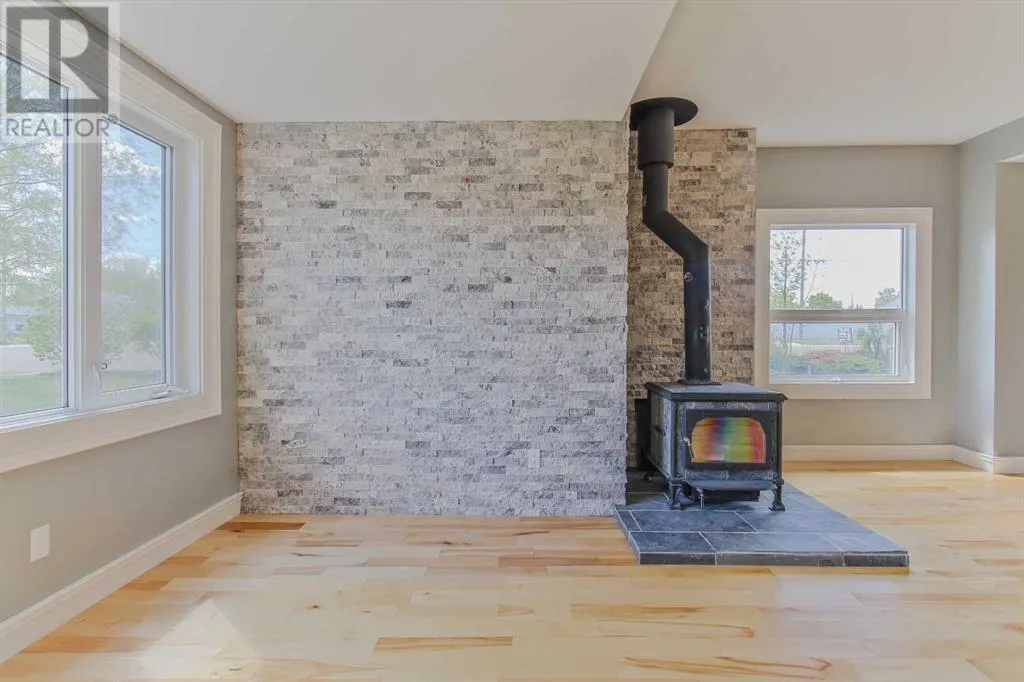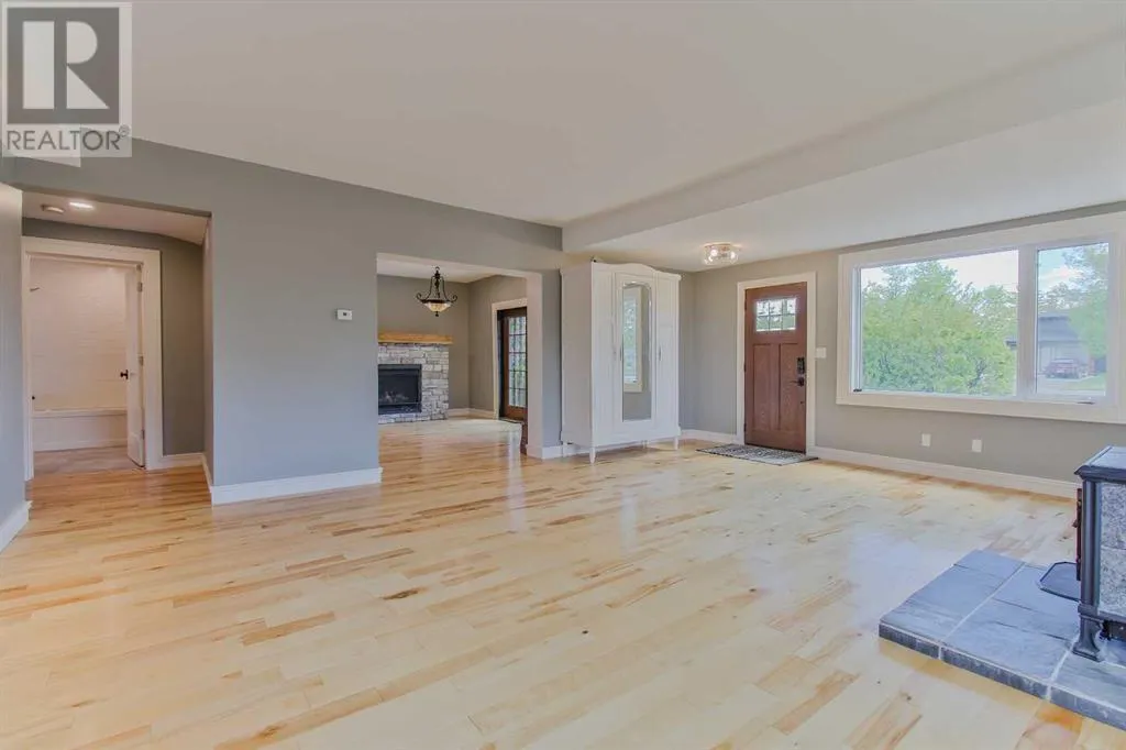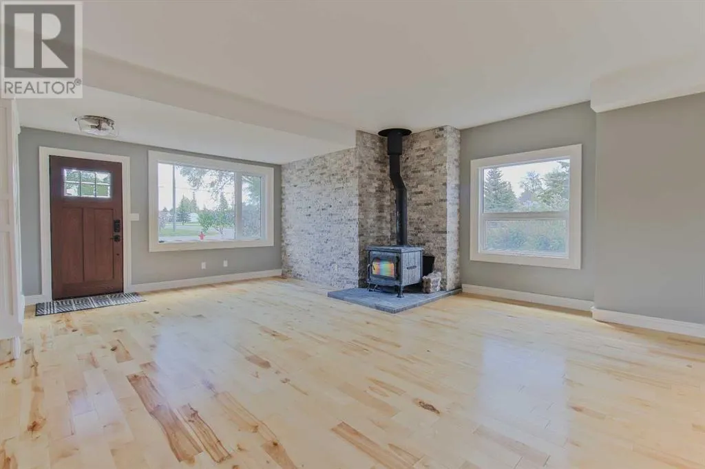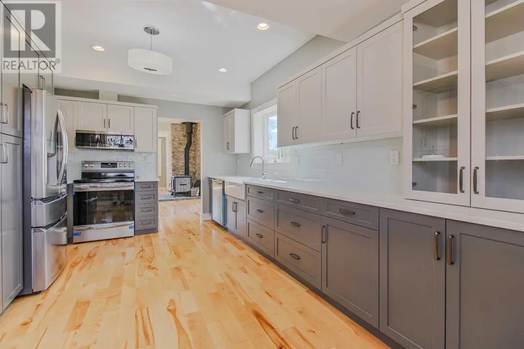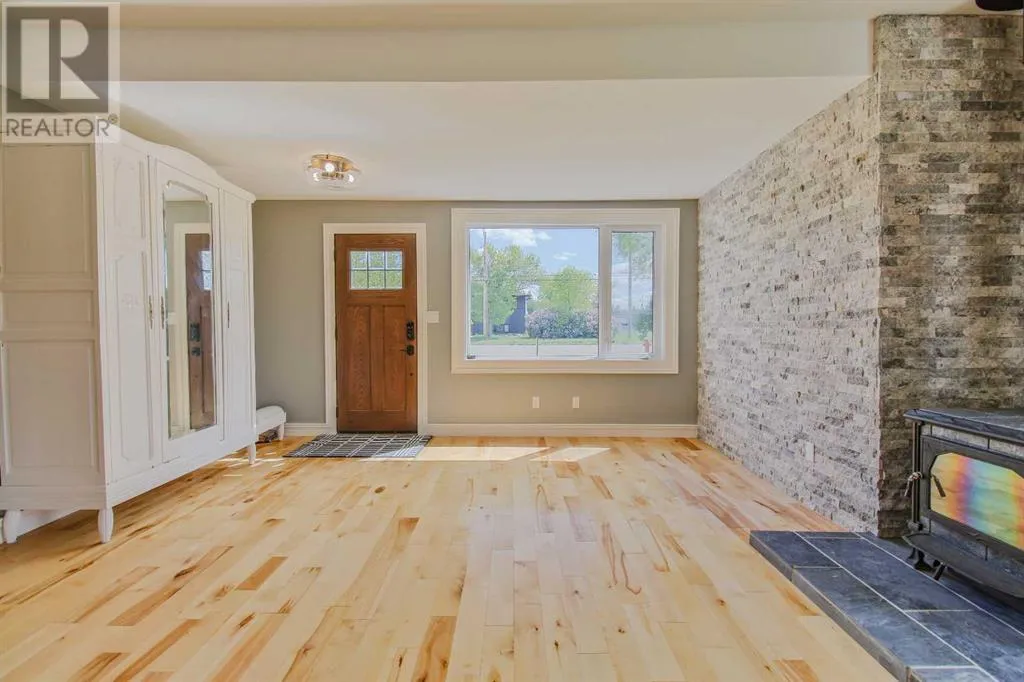 Welcome to this beautifully renovated two-story home! Offering over 2,000 sq ft, this home has 3 spacious bedrooms and 2.5 baths, perfect for comfortable family living. Step inside to discover stunning new hardwood floors and fresh modern finishes throughout. The gourmet kitchen features elegant Italian Carrera counter tops, sleek stainless steel appliances and trendy new cabinets creating a luxurious and spacious kitchen to enjoy! The boot room has in floor heating and space for the family to toss off belongings without cluttering the formal entry way. Enjoy cozy evenings by either of the two fireplaces, or entertain guests on the walk-out patio surrounded by fragrant lilacs that bloom every spring, creating a picturesque and private outdoor retreat. This home boasts peace of mind with a newer roof (2022), brand new water tank, furnace, electrical, and plumbing. All the major updates have been done for you! This home provides elegance with warmth and charm on a large corner lot surrounded by beautiful trees, lilacs and caraganas. Call your favourite REALTOR® today! (id:27476)