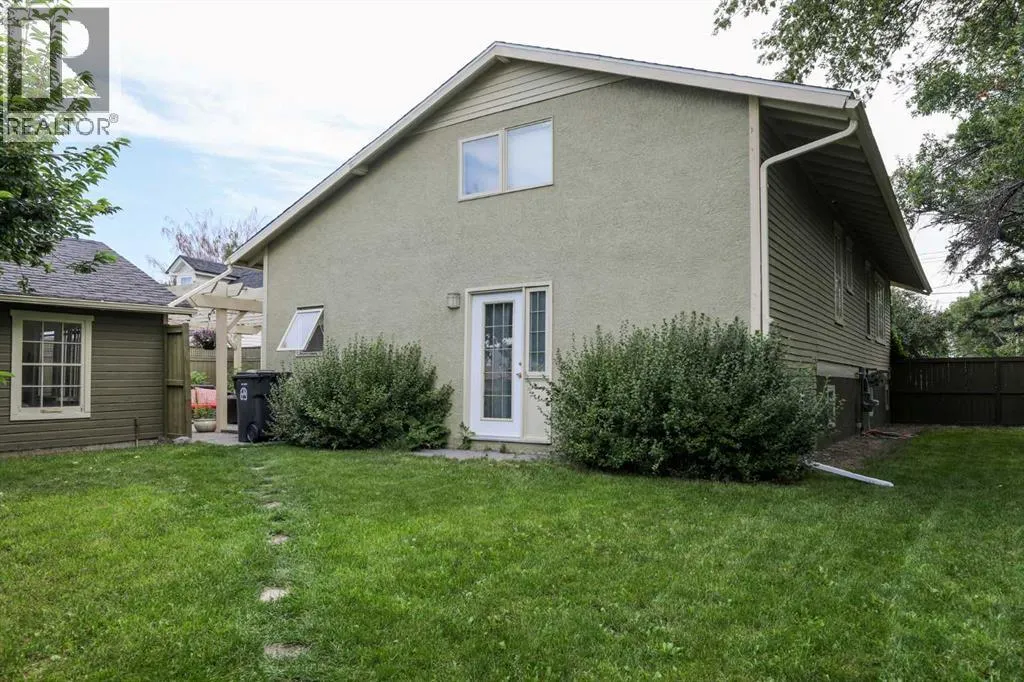 Check out this 4 bedroom 2 bathroom character home nestled in a mature area in Raymond. Inside you will find a unique layout main floor featuring a kitchen and a spectacular dining room, a cozy living room, bathroom, laundry and 2 bedrooms. Downstairs you will find 2 more bedrooms another bathroom, flex room and large family room. This home also offers plenty of storage space through out the house. Now lets step outside and experience what truly sets this property apart. Incredible outdoor living spaces designed for both relaxation and entertaining. Lets first head to the detached double garage with a large mezzanine, at the back you will find a flex space which currently being used as a workout room. Step out of the workout room to your private pergola fire pit area along with a relaxing waterfall stream feature. Next to that will be a indoor shelter room, great for hosting bigger gatherings or incase the weather turns for the worse. Lets not forget the huge fully fenced back yard space which also has another detached super single garage. If you love outdoor living and endless possibilities this home wont disappoint. (id:27476)