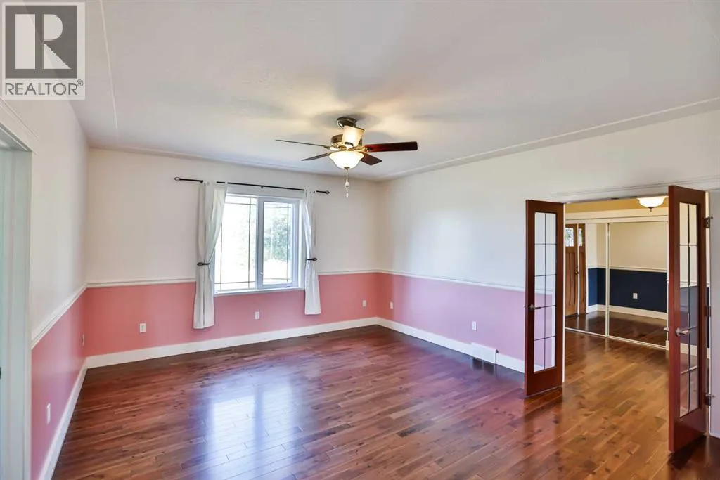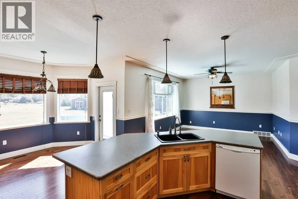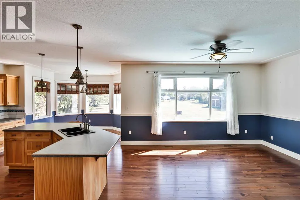 This sprawling bungalow offers over 2,340 sq. ft. of living space and sits on nearly a 1-acre lotâa rare find within town limits! Featuring three bedrooms plus a flexible office that could easily serve as a fourth bedroom, this home appeals to a wide range of lifestyles. Whether youâre a growing family, an empty-nester, or even looking for suite potential, this property offers incredible versatility. As you step inside, youâll be greeted by stunning Acacia hardwood floors, 9-foot ceilings, and an open-concept design that seamlessly connects the dining area, kitchen, and living room. The kitchen boasts a large angled island and a gas rangeâperfect for entertaining. Expansive windows span the back of the home, flooding the living space with natural light and offering views of the massive deck and your private 1-acre lot. In addition, sun tunnels further brighten the kitchen with warm natural light. Outdoors, enjoy a backyard complete with a miniature apple tree, red currant, and raspberry bushes. The laundry room is oversizedâso spacious it could double as a craft or sewing room! There are two living spaces on the main floor and the second is off the front entry with garden doors leading to it. While the home has no basement, there is a large crawl space that provides plenty of storage. The detached garage is a dream, measuring 28â x 30â. It is insulated and drywalled, heated with a gas heater, and equipped with extensive built-in cabinets, shelving, and a 220V outlet. Additional features include three storage sheds, plus a John Deere riding mower (new in 2018 with attachments) and a snowblower from the same yearâboth included! Donât miss this rare opportunity! Call your favourite REALTOR® today to book a private showing. (id:27476)