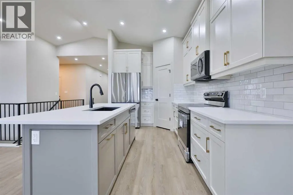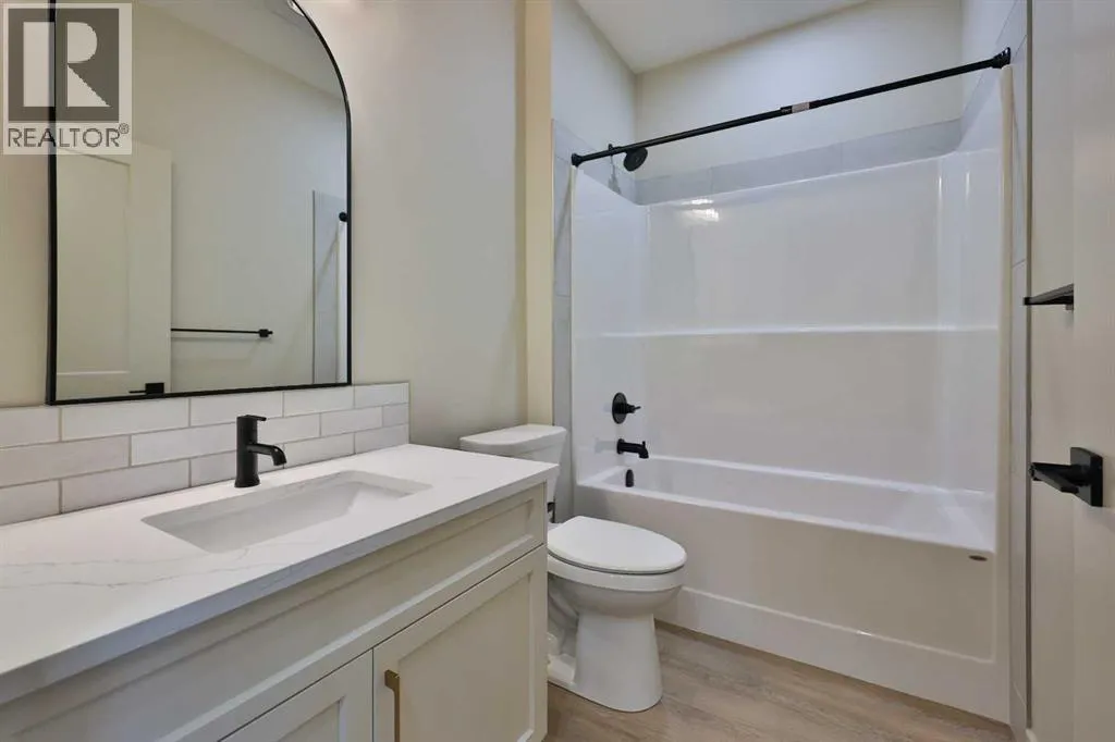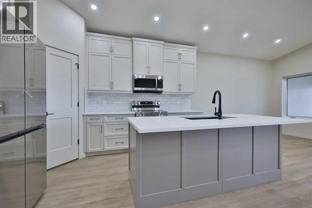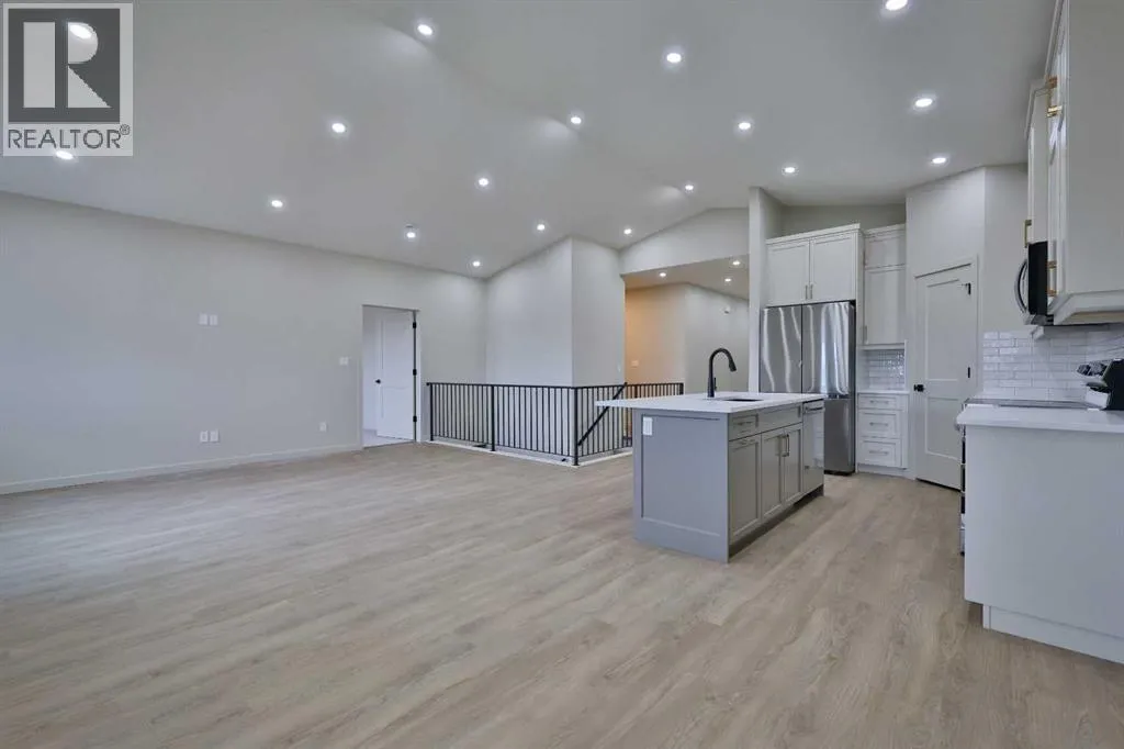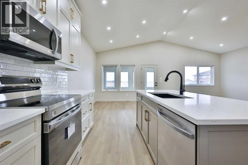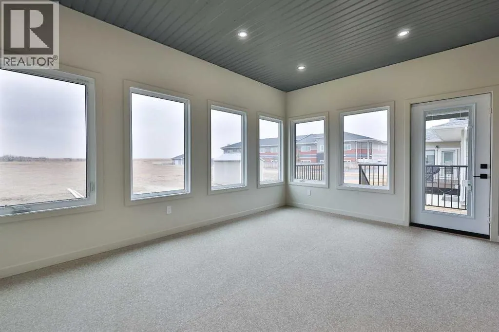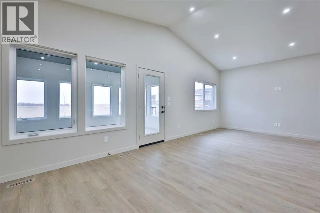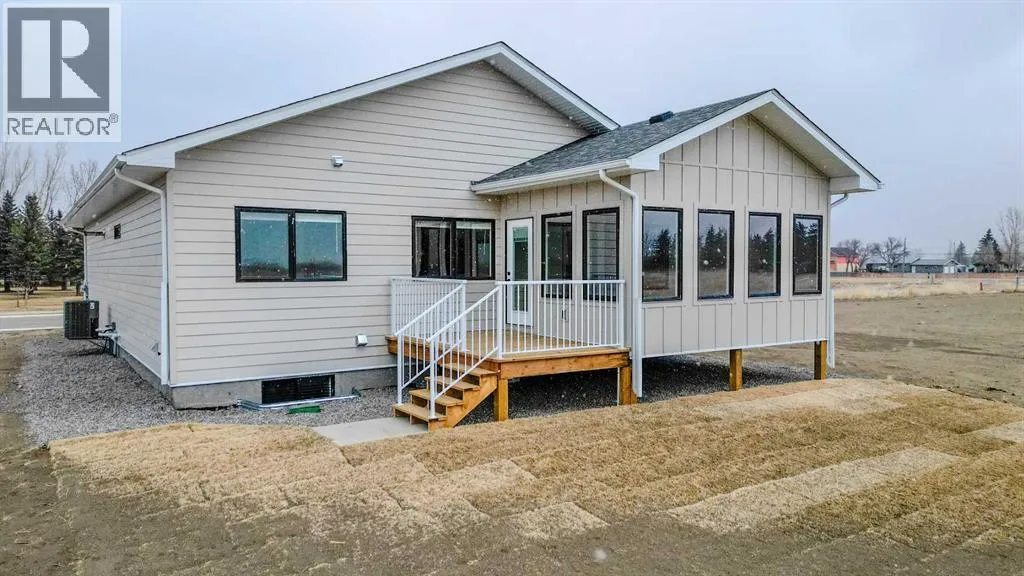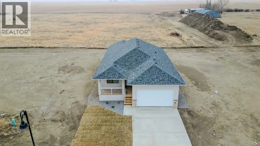 Welcome to this brand new, bungalow style home in the adult community of Aspen Pointe, located in the picturesque town of Raymond, just 20 minutes from Lethbridge! Here you can enjoy the tranquility of a green strip and walking path directly across the street, complete with a frisbee golf course for outdoor entertainment. This home is ideally located near Raymondâs top amenities, including the golf course, The Mercantile grocery store, hospital, restaurants, and more. Inside, you'll find two spacious bedrooms on the upper level, with the option to convert the front bedroom into a large office space for your convenience. The kitchen is truly a luxury, featuring stainless steel appliances, sleek quartz countertops, a gorgeous island, and plenty of cabinetry and a pantry for storage. The open dining and living room area is perfect for entertaining or relaxing and feel grand, due to the vaulted ceiling! Step outside to the enclosed sunroom at the back of the home, where you can bask in the year-round natural light and witness the beauty of each season. The unfinished basement offers potential for customization, with the option for the builder to complete it to your preferences or act as a large storage room/blank slate for whatever you would like! The primary bedroom is a serene retreat with a stunning walk-in shower and double vanity in the ensuite bathroom. Central air conditioning, natural gas heater in the garage, and irrigation water for your outdoor watering ensure year âround comfort both inside and out! This home combines modern living with a peaceful community settingâif you are looking to downsize and find a quiet place to live donât delay! Call your REALTOR® and schedule a showing today! (id:27476)