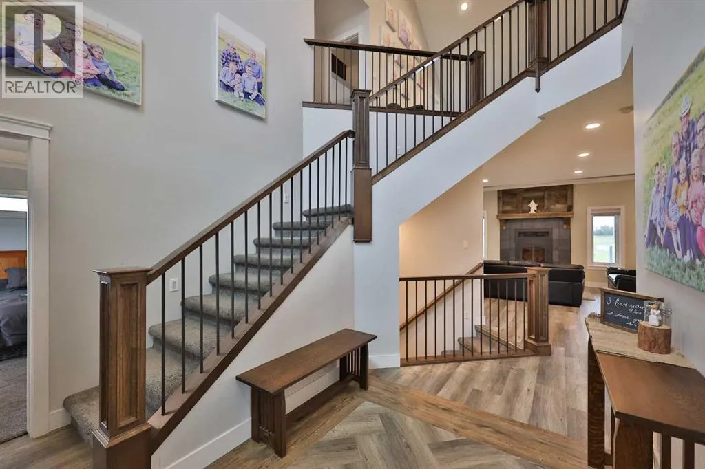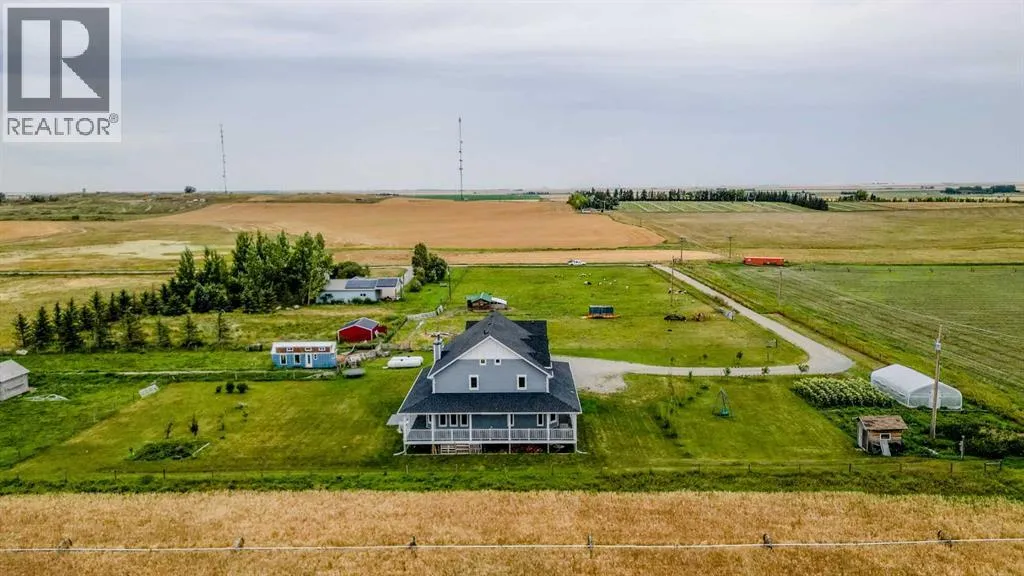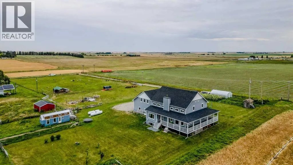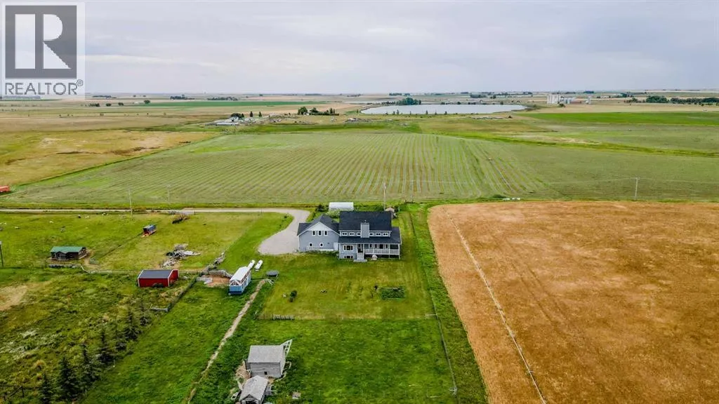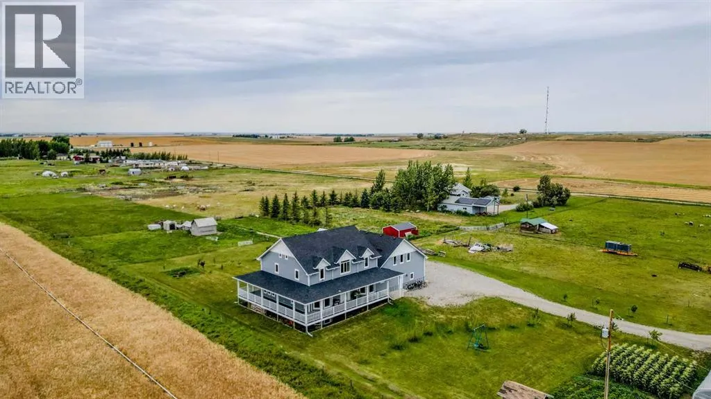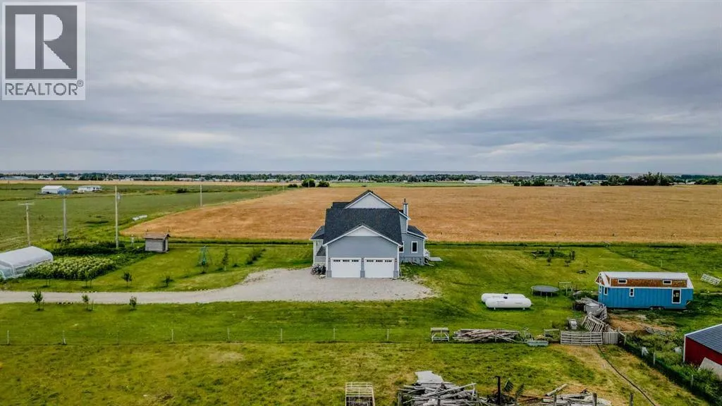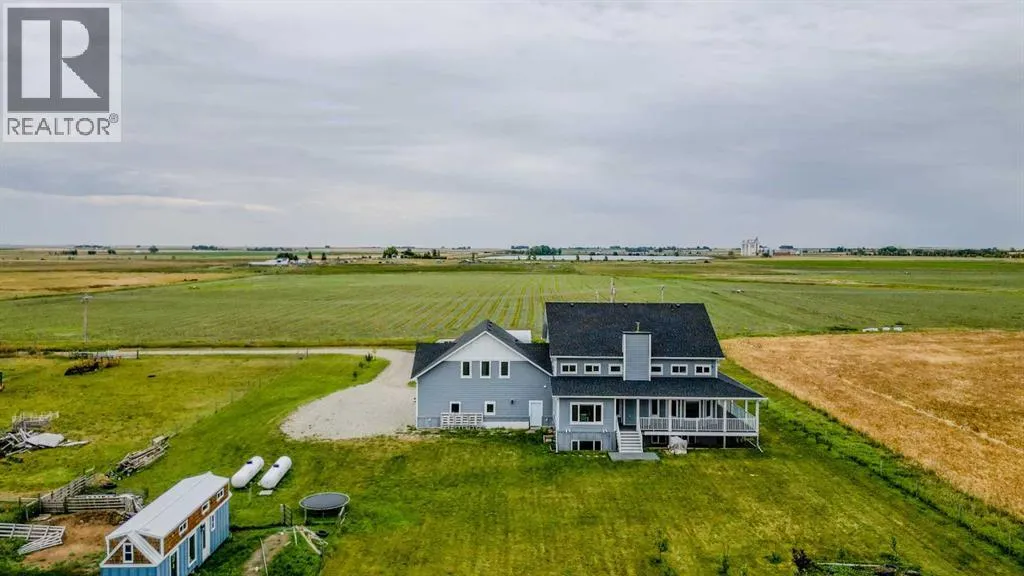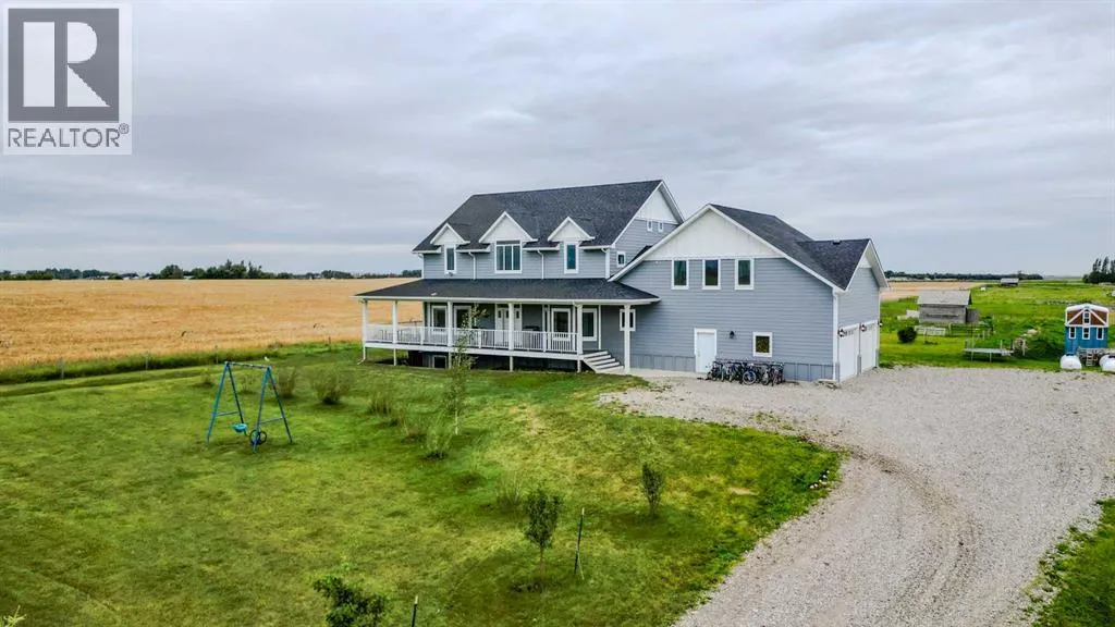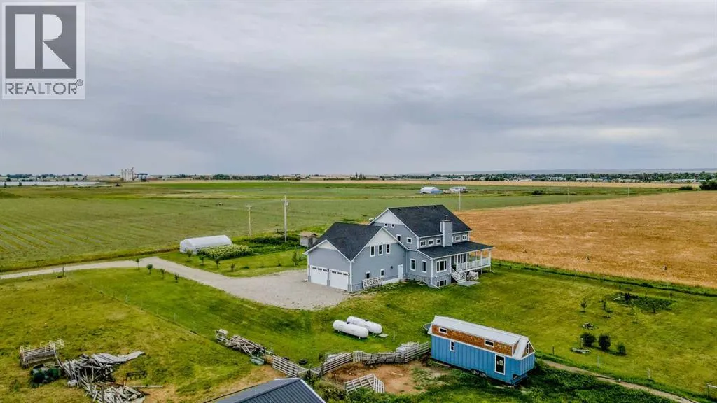 Welcome to a truly one-of-a-kind, acreage where modern meets country. This ICF home is a custom-designed fortress of efficiency, comfort, and self-sufficiency, featuring nearly 5,000 sq ft of living space in the main area and an additional 750 sq ft above the garage. Offset your mortgage expense by $16,000 each year with income from the already rented suite above the garage! Perfectly situated at the end of a quiet, dead-end road just a 5-minute drive to Raymond and 15 minutes to Lethbridge. Be greeted by a grand, 2 storey front entrance with a beautiful staircase and a view of the soaring 13.5â ceilings in the upper floor library. This home is designed to for a large family, guests, and working from home, boasting 6 bedrooms, 2 offices, and 4.5 bathrooms in the main area. The space above the garage adds 2 more bedrooms, a comfortable ensuite bathroom, and more kitchen and living space. Enjoy a main floor primary bedroom close to the expansive kitchen, featuring a double oven, large double fridge/freezer, large pantry, ample cabinet space, and an oversized peninsula. Large triple pane windows throughout let in plenty of natural sunlight. The wood burning fireplace provides coziness and enough radiant heat to keep the entire house comfortable while providing substantial savings on propane. Enjoy the warm, radiant heat of the high-efficiency boiler system, featuring in-floor heating in the basement and garage. The home has 2 furnaces and is set up with a 3 zone AC for customized climate control. Never worry about a power outage with the Generac backup generator, sized to automatically power the entire house. The interior showcases granite and quartz countertops with custom built hickory cabinetry throughout focused on functionality and luxury. The massive mudroom is an organizational dream. Laundry is simplified with 4 laundry chutes directly from the upstairs to the main floor, complete with hookups for 2 washers and 2 dryers. A central dehumidifier system efficientl y manages air quality in the laundry, bathrooms, and kitchen. The 4 large upstairs bedrooms each feature lofts and an additional study loft overlooks the library and front entrance. The massive basement family room is perfect for entertaining and kids play. Besides ample basement storage (including cold storage) thereâs a large guest bedroom with an attached bathroom. This property is set up for those who value outdoor living and gardening. For irrigation and animals, it benefits from an acreage irrigation agreement with Raymond Irrigation District for pressurized raw water usage. A Stock Boss watering system and 2 yard hydrants are perfectly situated for conveniently watering animals. Relax or entertain on the wrap-around deck, offering multiple vantage points to enjoy your quiet, private surroundings. This is a rare opportunity to own a bespoke, high-efficiency home of this magnitude, designed for a superior quality of life and exceptional versatility. Are you ready to step into your dream acreage? (id:27476)