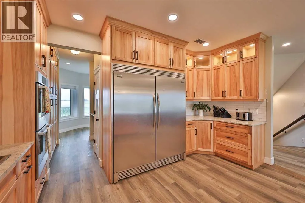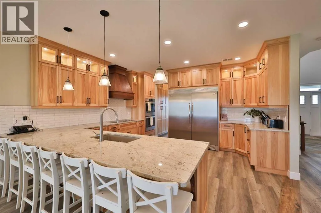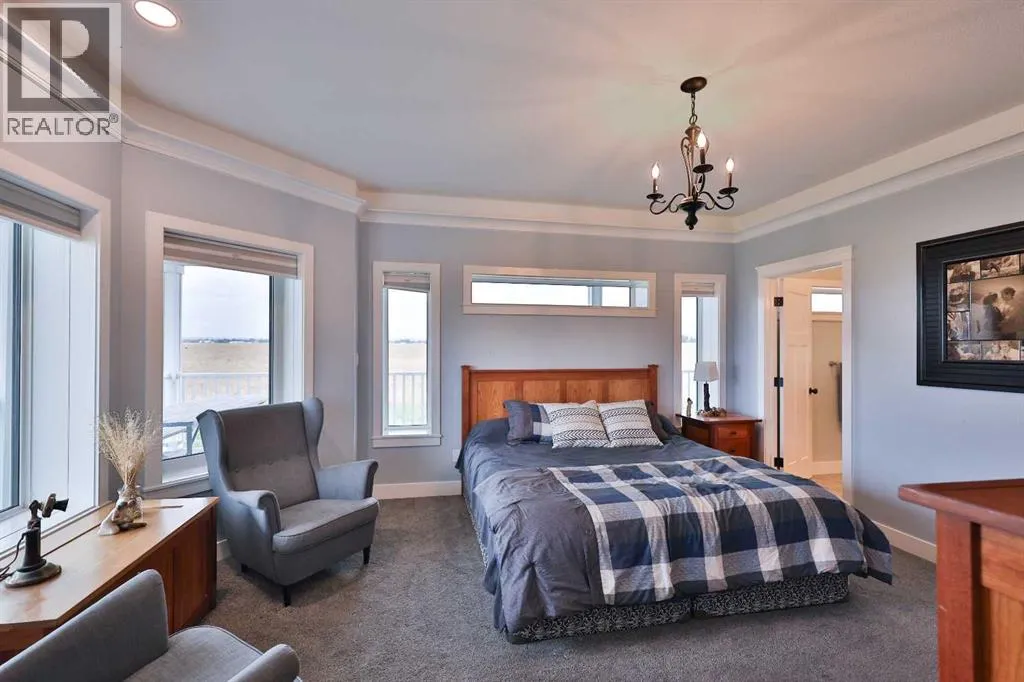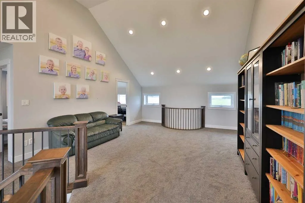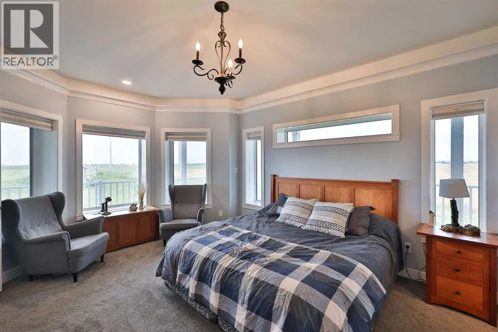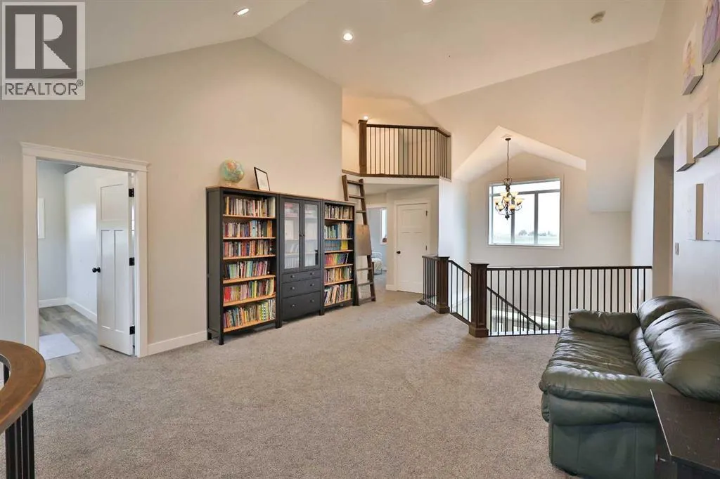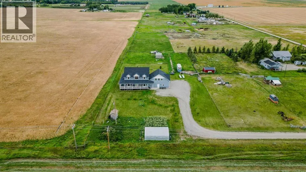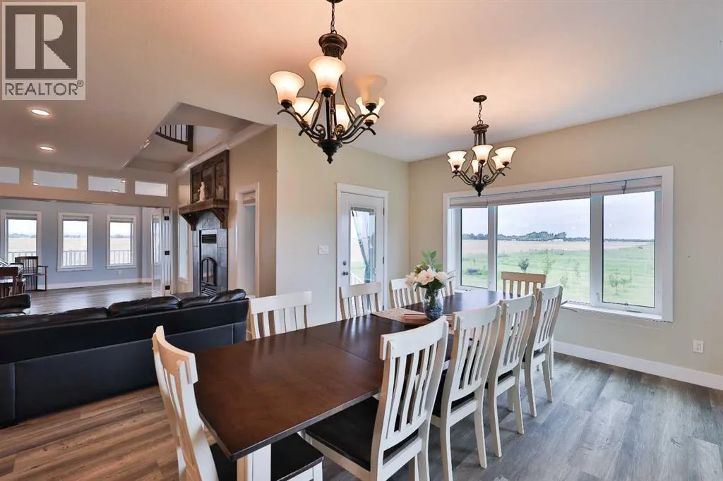 Welcome to a truly one-of-a-kind, acreage where modern meets country. This ICF home is a custom-designed fortress of efficiency, comfort, and self-sufficiency, featuring nearly 5,000 sq ft of living space in the main area and an additional 750 sq ft above the garage. Offset your mortgage expense by $16,000 each year with income from the already rented suite above the garage! Perfectly situated at the end of a quiet, dead-end road just a 5-minute drive to Raymond and 15 minutes to Lethbridge. Be greeted by a grand, 2 storey front entrance with a beautiful staircase and a view of the soaring 13.5â ceilings in the upper floor library. This home is designed to for a large family, guests, and working from home, boasting 6 bedrooms, 2 offices, and 4.5 bathrooms in the main area. The space above the garage adds 2 more bedrooms, a comfortable ensuite bathroom, and more kitchen and living space. Enjoy a main floor primary bedroom close to the expansive kitchen, featuring a double oven, large double fridge/freezer, large pantry, ample cabinet space, and an oversized peninsula. Large triple pane windows throughout let in plenty of natural sunlight. The wood burning fireplace provides coziness and enough radiant heat to keep the entire house comfortable while providing substantial savings on propane. Enjoy the warm, radiant heat of the high-efficiency boiler system, featuring in-floor heating in the basement and garage. The home has 2 furnaces and is set up with a 3 zone AC for customized climate control. Never worry about a power outage with the Generac backup generator, sized to automatically power the entire house. The interior showcases granite and quartz countertops with custom built hickory cabinetry throughout focused on functionality and luxury. The massive mudroom is an organizational dream. Laundry is simplified with 4 laundry chutes directly from the upstairs to the main floor, complete with hookups for 2 washers and 2 dryers. A central dehumidifier system efficientl y manages air quality in the laundry, bathrooms, and kitchen. The 4 large upstairs bedrooms each feature lofts and an additional study loft overlooks the library and front entrance. The massive basement family room is perfect for entertaining and kids play. Besides ample basement storage (including cold storage) thereâs a large guest bedroom with an attached bathroom. This property is set up for those who value outdoor living and gardening. For irrigation and animals, it benefits from an acreage irrigation agreement with Raymond Irrigation District for pressurized raw water usage. A Stock Boss watering system and 2 yard hydrants are perfectly situated for conveniently watering animals. Relax or entertain on the wrap-around deck, offering multiple vantage points to enjoy your quiet, private surroundings. This is a rare opportunity to own a bespoke, high-efficiency home of this magnitude, designed for a superior quality of life and exceptional versatility. Are you ready to step into your dream acreage? (id:27476)