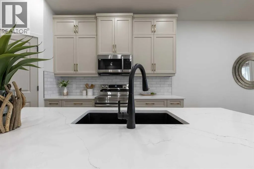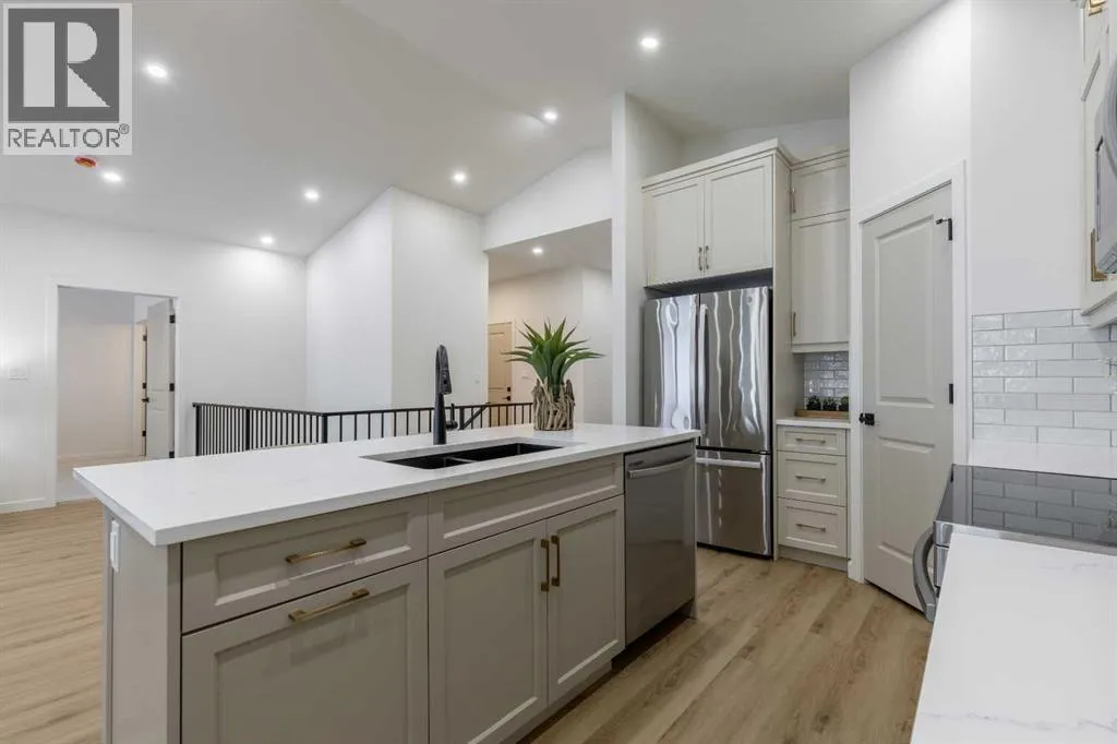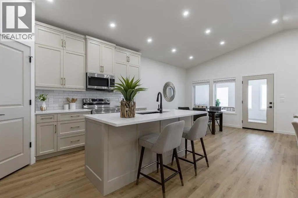 Welcome to this brand new, bungalow style home in the adult community of Aspen Pointe, located in the picturesque town of Raymond, just 20 minutes from Lethbridge! Here you can enjoy the tranquility of a green strip and walking path directly across the street, complete with a frisbee golf course for outdoor entertainment. This home is ideally located near Raymondâs top amenities, including the golf course, The Mercantile grocery store, hospital, restaurants, and more. Inside, you'll find two spacious bedrooms on the upper level, with the option to convert the front bedroom into a large office space for your convenience. The kitchen is truly a luxury, featuring stainless steel appliances, sleek quartz countertops, a gorgeous island, and plenty of cabinetry and a pantry for storage. The open dining and living room area is perfect for entertaining or relaxing and feel grand, due to the vaulted ceiling! Step outside to the enclosed sunroom at the back of the home, where you can bask in the year-round natural light and witness the beauty of each season. The unfinished basement offers potential for customization, with the option for the builder to complete it to your preferences or act as a large storage room/blank slate for whatever you would like! The primary bedroom is a serene retreat with a stunning walk-in shower and double vanity in the ensuite bathroom. Central air conditioning, natural gas heater in the garage, and irrigation water for your outdoor watering ensure year âround comfort both inside and out! This home combines modern living with a peaceful community settingâif you are looking to downsize and find a quiet place to live donât delay! Call your REALTOR® and schedule a showing today! (id:27476)