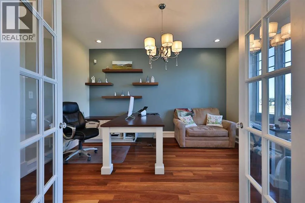 Take a deep breath, because this home is about to take your breath away! All the bells and whistles can be found here!! Located in the desirable Stonegate Meadows neighbourhood, in the beautiful town of Raymond, just 20 minutes from Lethbridge, this home is one you donât want to miss! Sitting on almost a full acre lot, backing the golf courseâs two picturesque pond features, this home has a triple attached garage with in-floor heat, stucco and stone exterior, ICF foundation, was built to be wheel chair accessible and at grade so there are no stairs as you enter, has an incredible amount of natural light, and the most incredible features and finishings everywhere you look. The main level provides you with a large front entry, main floor office, formal dining area, spacious living room with a natural gas fireplace, dual fuel stove, Home One ligths, and a one of a kind kitchen! This kitchen has not one, but TWO pantries (one with a bar fridge and additional dishwasher), quartz countertops, a gas stove, pot filler, a huge island, and ovens galore. Off the kitchen, you and your family will appreciate the sunroom sitting area for book reading, relaxing, entertaining, game playing, and especially for enjoying that backyard view. The main floor is also home to a massive laundry room and a living room sized primary bedroom! This primary is like no other with a sitting area, his and hers closets with built in shelving, beautiful tiled floors in the bathroom, a double vanity, walk in shower room, and large tub. Downstairs there are three more bedrooms, two further family rooms, a walk-up entrance/exit into the garage, a wet bar, and a full blown theatre room!! Some of the other âhiddenâ features of this property include, an additional cistern built in under the garage for water storage, a generator rough in, underground sprinklers, in-floor heat, and central air conditioning. This is one you donât want to miss! Call your REALTOR® and book your showing today! (id:27476)