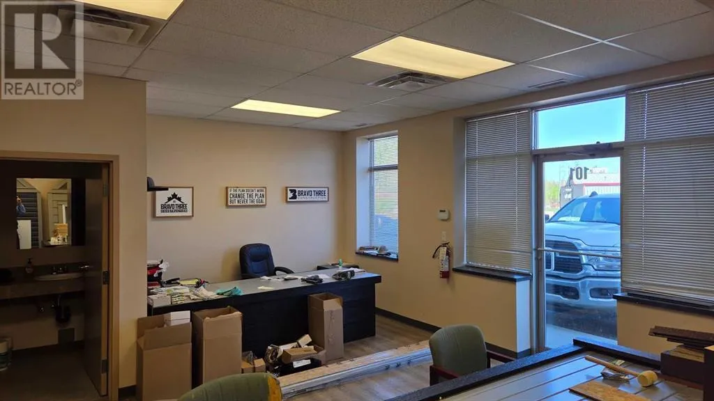 Affordable and practical industrial/ warehouse bay located in the riverside heavy industrial park. Current use is siding contractor, tenant since early 2021. Oher Tenants in building include plumber, flooring company, HVAC contractor and coffee services company. Open front office/ display area approx. 500 SF and 1000 SF of warehouse; with open mezzanine above office area. two washrooms (one shop and one office area). space was mostly repainted in 2021. Warehouse-hi Bay halide lighting 14 x 12 overhead door, radiant tube heater in warehouse area. Front paved parking, back yard area is partially paved, remaining yard is graveled. Office area is air conditioned, vinyl plank flooring ideal for open office and or display. 2 x4 recessed florescent tube lights in t bar Ceiling grid. Common area costs estimated for 2025 at $5.25 per square foot. ($656.00 per month) Tenant has own electrical and gas meter, Telus is service provider for phone and internet. (id:27476)