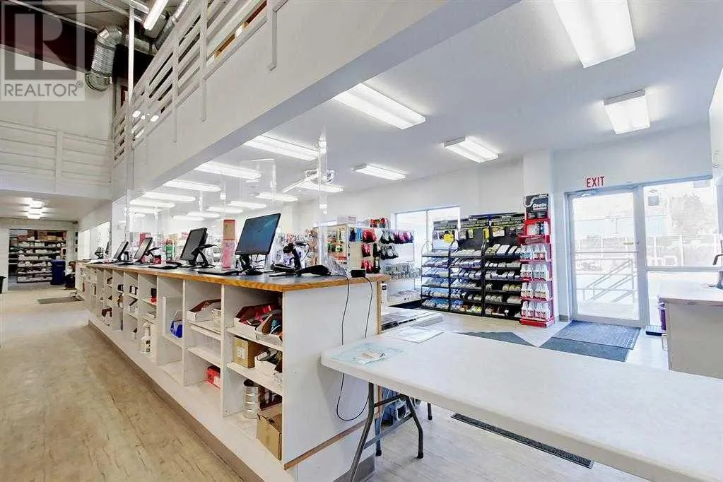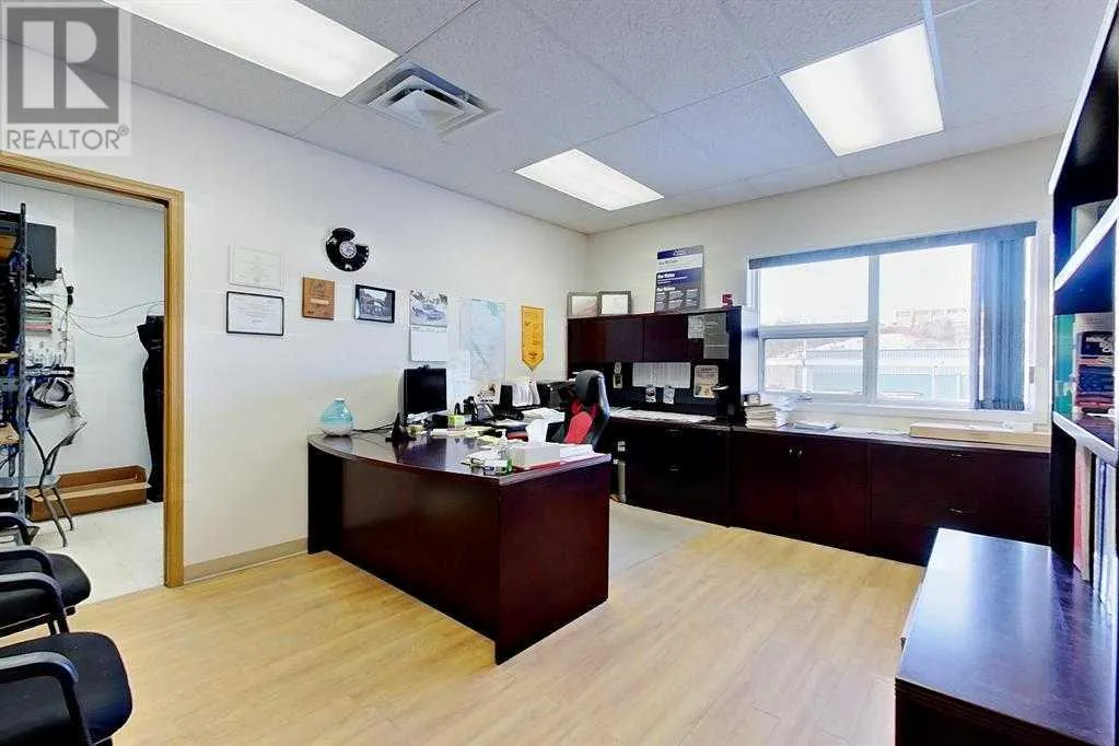 Centrally Located Warehouse with Office SpaceDiscover this exceptional warehouse ideally suited for a distribution center in the heart of Red Deer. Boasting dock-level access and expansive shelving, this facility is tailored for seamless operations. The front area features a customer reception service counter, complemented by a mezzanine offering three offices, a file room, and a staff room. With 20-foot ceilings, the warehouse provides ample vertical space for storage and maneuverability. Outside, a spacious fenced yard accommodates semi trailers, ensuring efficient loading and unloading. Centrally located in Red Deer, this warehouse enjoys convenient access to major transportation routes, enhancing logistical efficiency. Explore the potential of this well-appointed warehouse, perfectly poised to support your distribution needs. (id:27476)
