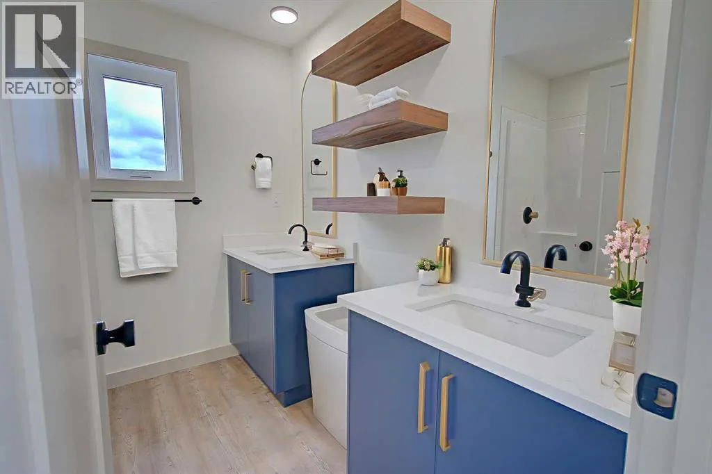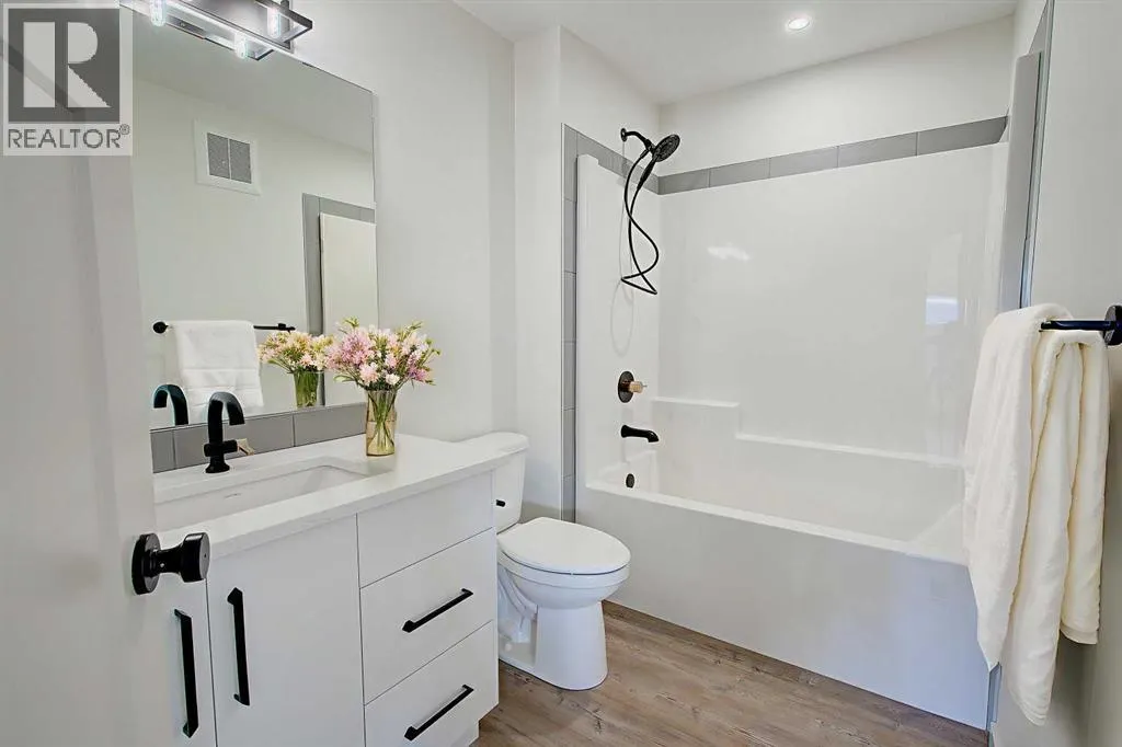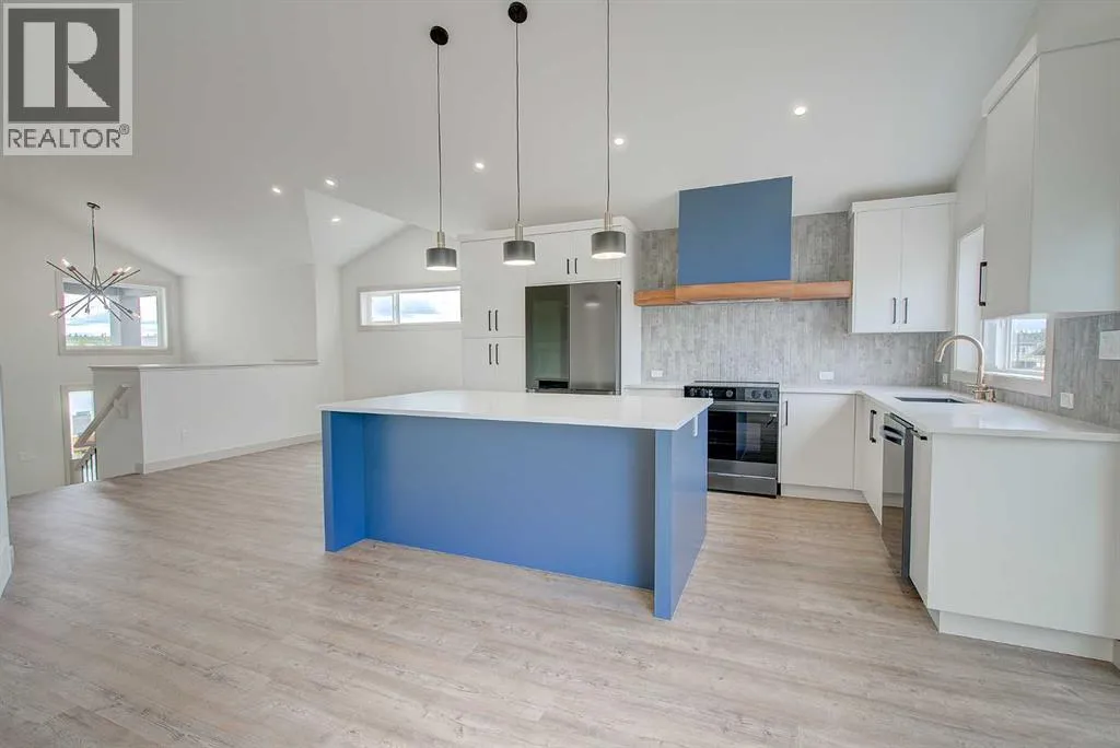 IMMEDIATE POSSESSION AVAILABLE! Brand new FULLY Developed (2141 SQ. FT. OF LIVING SPACE) 3 bedroom 3 bathroom modified bi-level with TRIPLE attached garage. This fabulous home is located in Timberlands North, close to shopping, schools, Canyon Ski Hill, Riverbend golf course with easy access to the highway and north/south Red Deer. The main floor has a beautiful open kitchen/dining room living room design. The kitchen is finished with quartz counter tops, a large Island and black stainless steel appliances. The living room has plenty of natural light and a large linear electric fireplace-flooring is luxury vinyl plank. There is also a 4 piece bathroom on the main floor and a good sized spare bedroom. The master bedroom is located up a few stairs with large walk in closet with custom shelving and a 4 piece ensuite with his/hers sinks and stand up shower. The lower level also has an abundance of natural light and has a spacious family room, finished laundry room with black stainless steel washer dryer, 4 piece bathroom and another bedroom-flooring is carpet. The lower level has roughed in under slab heat, roughed in central vac. Outside you will find a finished rear deck with aluminum railing, a gas line for barbecue, a fully sodded front yard and rear fence. This home comes with a 10 year new home warranty. (id:27476)