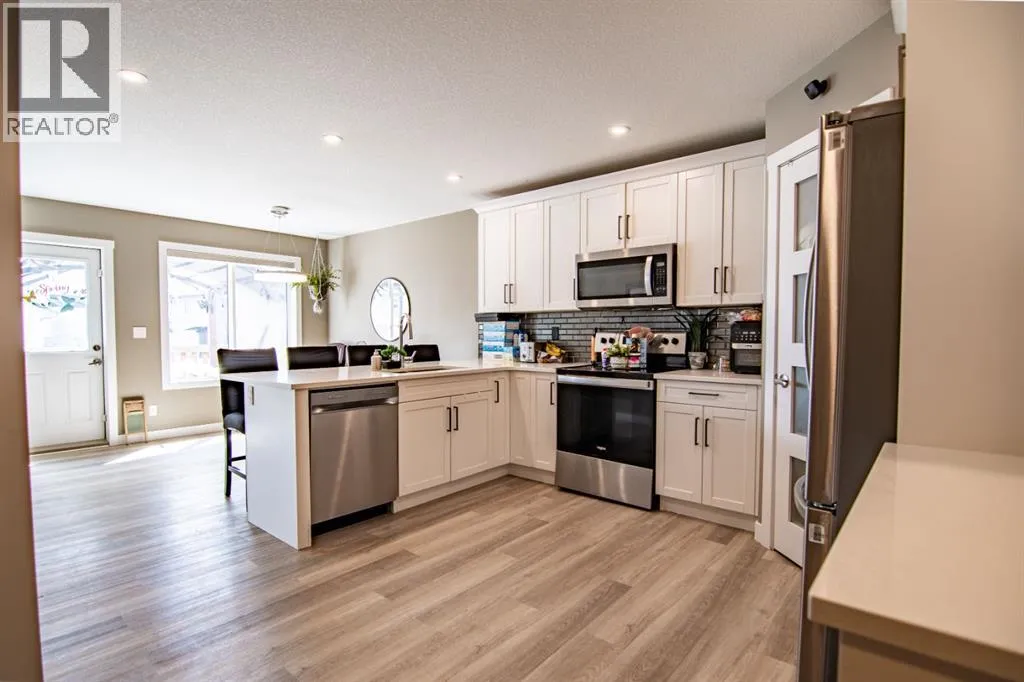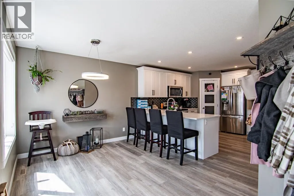 Welcome to 210 Livingston Close, nestled in the highly sought-after community of Laredo! *Currently rented for $2400/month*This one-of-a-kind floor plan offers 1,335sq ft of thoughtfully designed above-grade living space, featuring 3 spacious bedrooms and 2 full bathrooms, all situated on a quiet close with a sunny south-facing backyard.Step inside to a stylish tiled front entry that leads to a beautifully finished upper level, where youâll find luxury vinyl plank flooring flowing through the open-concept living room, dining area, and kitchen. The chef-inspired kitchen boasts elegant white cabinetry, sleek quartz countertops, a pantry, and comes fully equipped with stainless steel appliances. The adjacent dining area includes access to a 12â x 12â rear deck, perfect for entertaining or enjoying the southern sun.Enjoy the open sightlines from the kitchen to the bright living room, highlighted by a striking tray ceiling that adds architectural interest and height. The primary suite offers a private retreat with double closets and a luxurious 4-piece ensuite featuring quartz countertops and a tiled tub surround.Additional features include:-Quartz countertops and tile surround in both bathrooms-Carpet in all bedrooms for added comfort-Vinyl flooring in bathrooms for easy maintenance-Swinging doors on all closets-Low-E argon-filled windows for energy efficiency-Roughed-in central vac and basement in-floor heating (with 1.5â rigid insulation)-High-efficiency furnace and HRV system for optimal climate controlThis quality-built home blends thoughtful design, energy efficiency, and high-end finishesâall in a peaceful, family-friendly location. Donât miss the opportunity to make this beautiful property your next home! (id:27476)