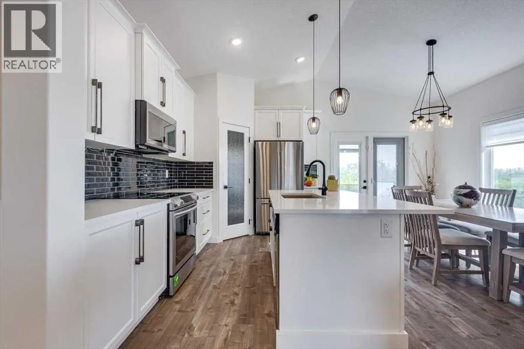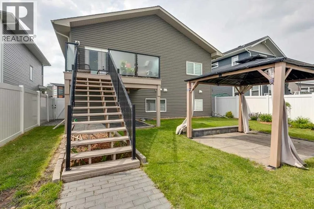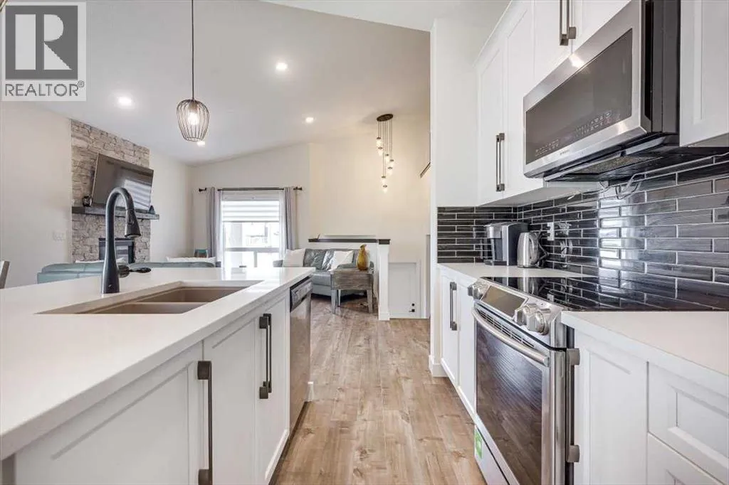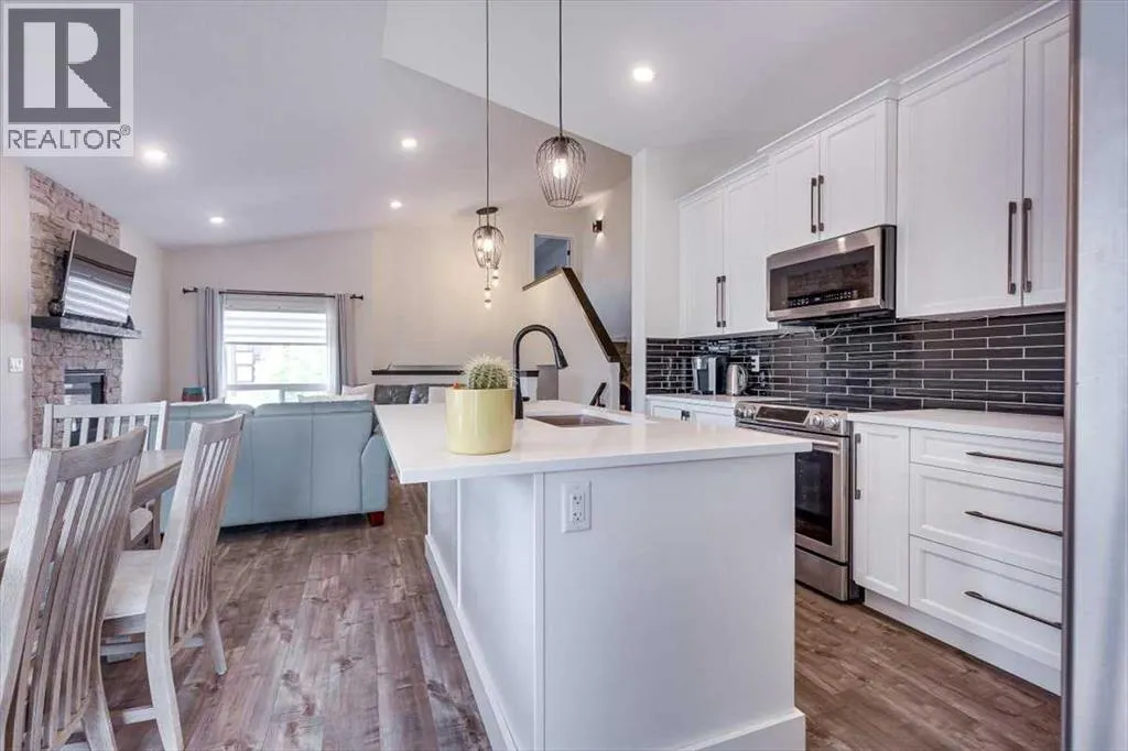 Great location backing onto green space. Beautiful fully developed 1419 Sq ft Modified bi level with 5 bedrooms and 3 bathrooms. Desirable open floor plan from the kitchen to the living & dining room areas. White cabinets and counter tops with large island, walk in pantry and u[graded stainless steel appliances. Dining area leads out to upper deck with aluminum and glass railings and access to a lower interlocking brick patio complete with Gazebo and nicely landscaped yard with vinyl fencing. Vaulted ceilings through out with modern decor. Primary bedroom features a trayed ceiling, large inviting 4 PC ensuite with 2 sinks and a glass & tiled shower. Convenient access to main floor laundry. Basement offers a good size 24' rec room with wet bar another 4 pc bathroom and the 4th and 5th bedrooms. lots of storage and all rooms are good size with large windows. Recently painted up and down ( with exception of Primary bedroom) and new carpets Just installed in the basement. Shows well and a pleasure to see, be sure to put this one on your list. (id:27476)