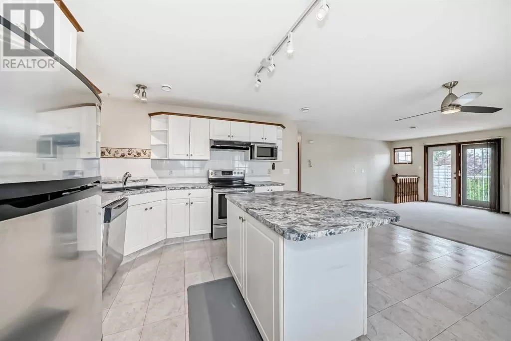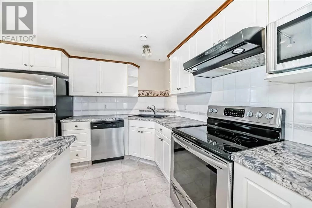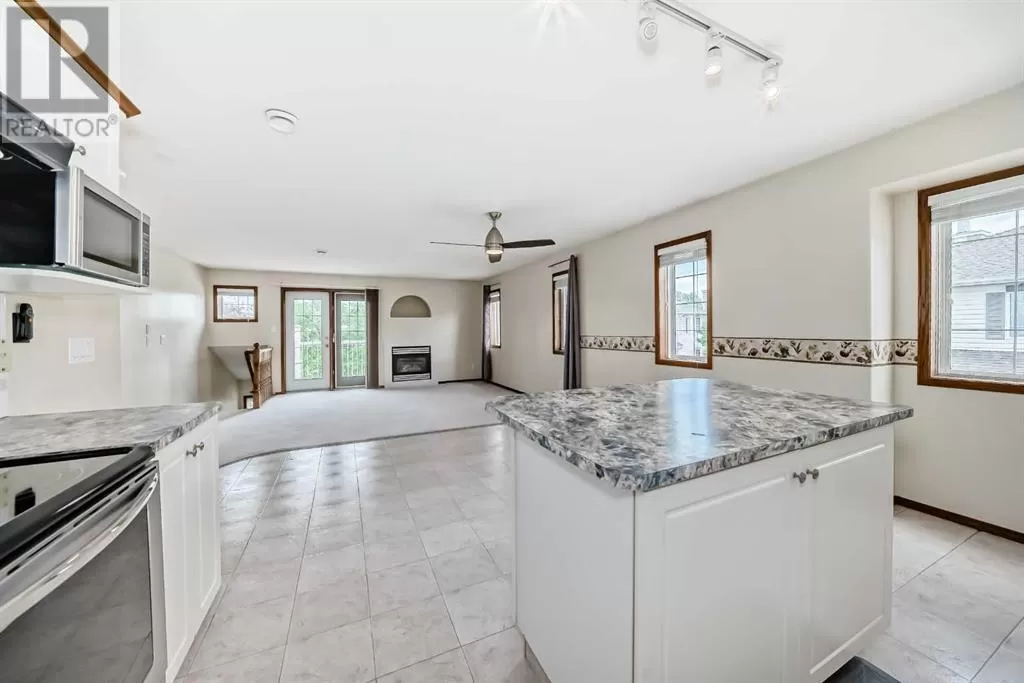 Maintenance-free living in this bright and beautifully maintained top-floor unit in desirable Devonshire Estates. This 2-bedroom, 2-bathroom home features an open concept floor plan with an abundance of natural light and thoughtful design elements throughout. The spacious living room features a cozy gas fireplace and access to a private deck through garden doors, perfect for enjoying morning coffee or evening relaxation. The timeless white kitchen boasts a central island, walk-in pantry, and an adjacent dining area ideal for entertaining. The large primary suite includes a 3-piece ensuite and walk-in closet, while the second bedroom is perfect for guests or a home office. Additional highlights include in-suite laundry, a welcoming foyer, and a heated single attached garage with extra storage space. Located on the upper level, this well-kept unit offers comfort, convenience, and style all in one. (id:27476)