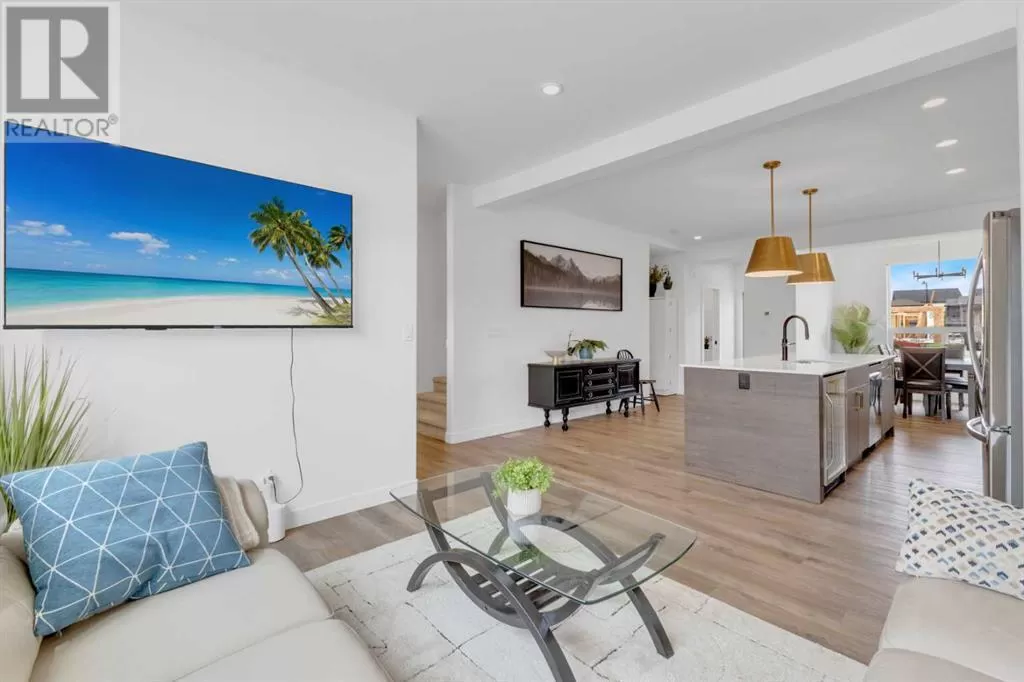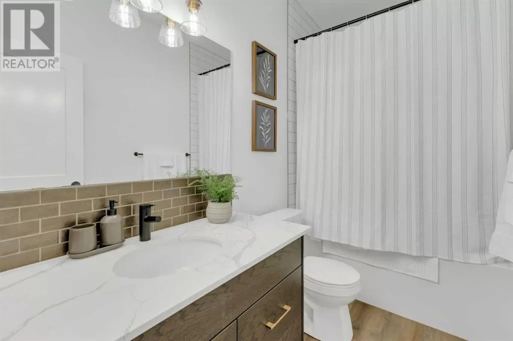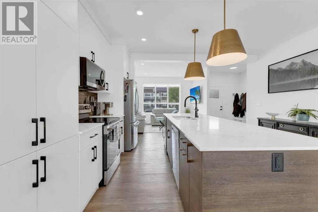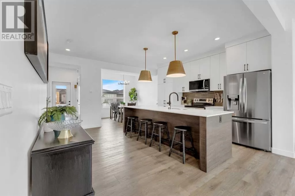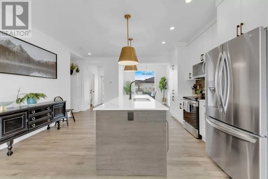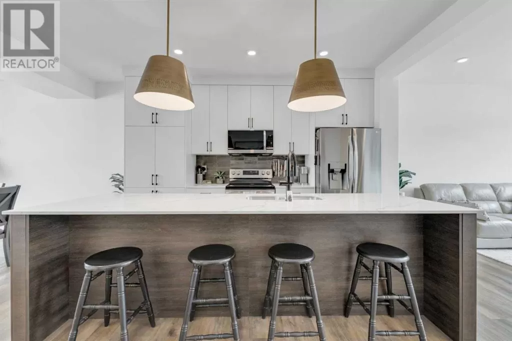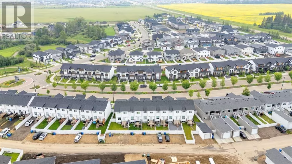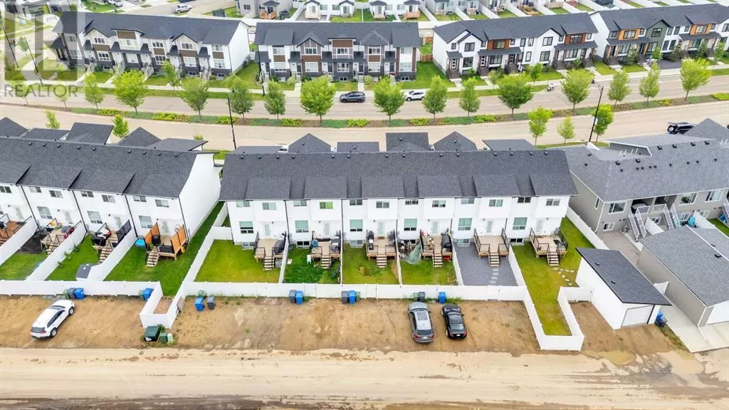 Sleek, Sophisticated, and Move-In Ready! This stunning fully finished two-storey townhome shows like a showhome and offers the perfect combination of modern design, thoughtful upgrades, and low-maintenance living. With quick possession available, this is your chance to start enjoying all the benefits of a newer home without the wait of the build. Located in the desirable community of Evergreen, this stylish home features a bright, open-concept main floor with large energy-efficient windows that fill the space with natural light. The heart of the home is the chef-inspired kitchen, complete with a massive island topped with quartz counters, built-in pantry, and stainless steel appliances â a perfect space for cooking, entertaining, or casual family meals. The dining area comfortably fits a full-sized table, while the spacious living room creates a warm and inviting place to gather.A separate mudroom at the back of the home keeps things organized and includes a convenient half bath, leading out to a sunny back deck with aluminum railing and a fully fenced yard with six-foot vinyl privacy fencing. Off the paved lane, youâll find two dedicated parking spaces. Upstairs, plush carpeting adds comfort to the three generous bedrooms, including a luxurious primary suite featuring a massive walk-in closet with dedicated shoe storage, and a spa-inspired ensuite with a walk-in shower and seating. A full main bath and upstairs laundry add convenience and functionality, while extra hallway storage makes smart use of every square foot. The fully finished basement adds even more living space, with soaring 9-foot ceilings, large windows, a fourth bedroom, full bathroom, and a family room perfect for movie nights or a home gym. Located in a quiet, family-friendly neighborhood with walking paths, playgrounds, and a scenic bridge, this home is just minutes from shopping, dining, schools, golf courses, and more. With the peace of mind of Alberta New Home Warranty, this is trul y a stress-free purchase. This gorgeous home is ready for its next owner to simply move in and enjoy â but at this price and condition, it wonât last long. (id:27476)
