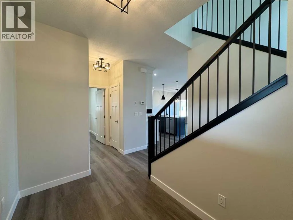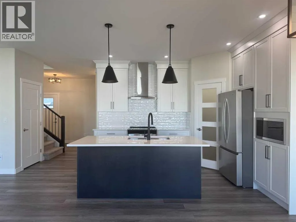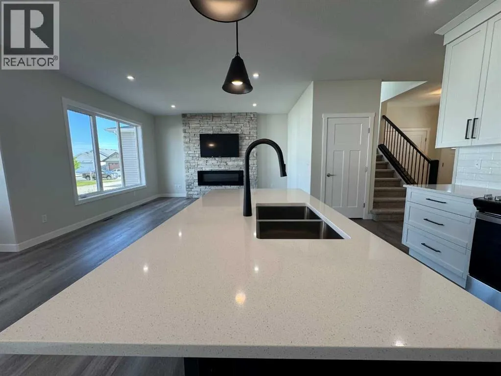THIS NEW BUILD TWO STOREY WITH UPPER LEVEL BONUS ROOM HAS SOME EXCITING UPGRADES! A stunning home with EXCEPTIONAL CURB APPEAL situated in the much sought after SUBDIVISION OF EVERGREEN designed for peace and tranquility with a water feature and an extensive green space for trails, biking and walking! Evergreen has that country feel tucked away from hustle and bustle and surrounded by fields with just a five minute drive north to the Riverbend Golf and Recreation Center and the Red Deer River walking trails. Welcome to this GORGEOUS HOME with 9FT CEILINGS on the main level flowing through to the EAST FACING LIVING/DINING/KITCHEN with an ATTRACTIVE LIVING ROOM FIREPLACE WITH A FLOOR TO CEILING FULL STONE SURROUND! The DREAM KITCHEN features UPGRADED WHITE CABINETRY ELEVATED TO CEILING HEIGHT, Quartz Countertops, Center Island with Extended Breakfast Bar, Walk-In-Pantry and All Stainless Steel Appliances (Fridge with Water, Wall Mounted Range Hood and an Upgraded 'In-Cabinet' Installed Microwave are included)! An adjoining good sized DINING AREA with a garden door leads out to the EAST FACING DECK with metal railings! A SEPARATE LAUNDRY ROOM and a 2 PCE BATH complete the main level! Upstairs we have the BONUS ROOM, the PRIMARY BEDROOM with a MAGNIFICENT OVERSIZED WALK IN CLOSET and a 3 PCE ENSUITE with dual sinks, quartz countertops, tile floor and 5 ft shower with full tile surround. Next to that the spacious two secondary bedrooms and the main 4 pce bath with quartz countertop and tile floor. This gorgeous home has an UPGRADED GARAGE DOOR and the INSIDE OF THE GARAGE IS COMPLETELY FINISHED TO PAINT GRADE! The basement is open for development with ROUGHED IN INFLOOR HEAT! The Annual HOA Fee for 2025 is at $130 + gst $136.50).... TAXES NOT YET ASSESSED.... (id:27476)