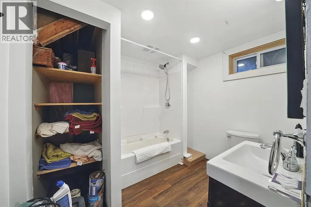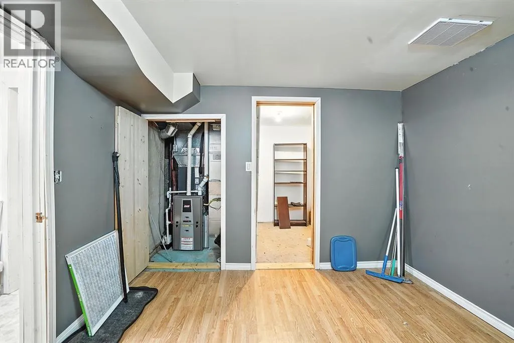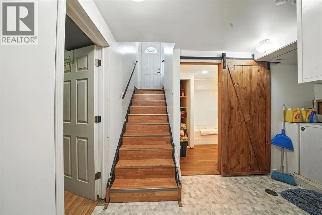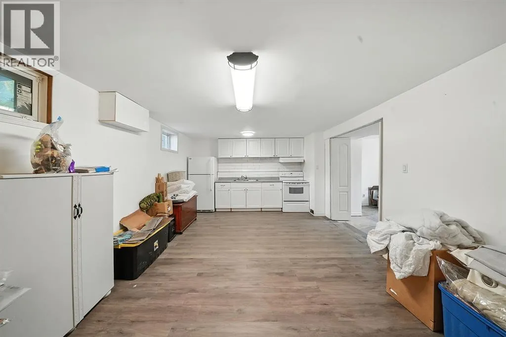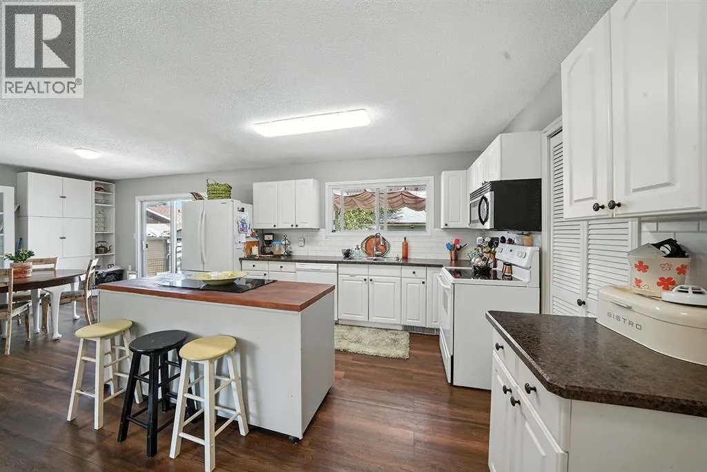 Jam-packed with value! This charming bungalow sits on a mature lot and features a massive double detached garage. Step inside to a spacious open-concept main floor with durable vinyl plank flooring throughout. The large living room offers warmth and character with a cozy wood stove, while the kitchen boasts a center island, ample counter and cupboard space, and a large pantry. Enjoy your meals in the bright eat-in dining area overlooking the beautiful mature gardens. The tranquil primary bedroom and a well-appointed 4-piece bathroom complete the main level.Downstairs features an upgraded bathroom, laundry area, rec space, kitchen, and two additional bedrooms. Notable updates include a high-efficiency furnace, central air conditioning, shingles, and the garage (2018). Ideally situated across from a green space and close to parks, schools, Red Deerâs vibrant downtown, and the stunning walking trails at Bower Ponds. (id:27476)