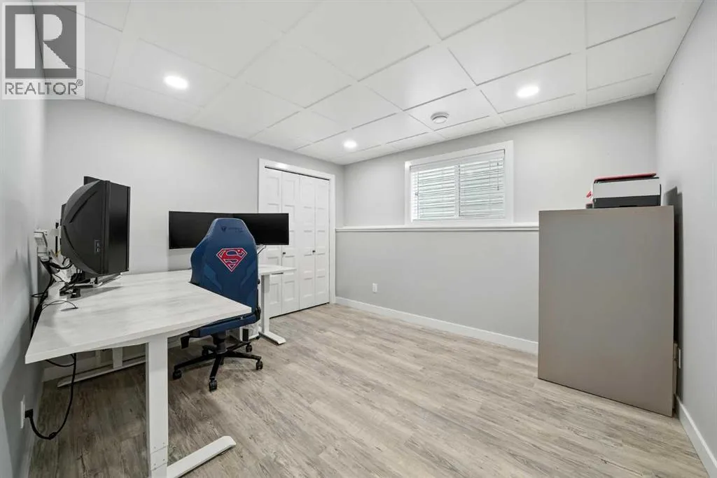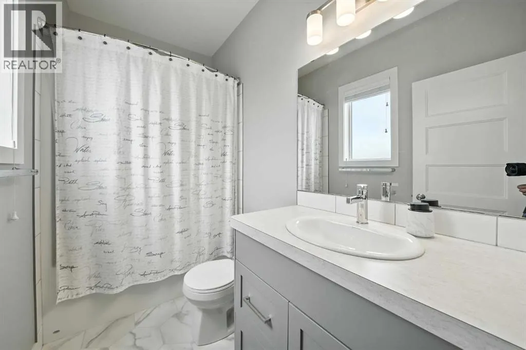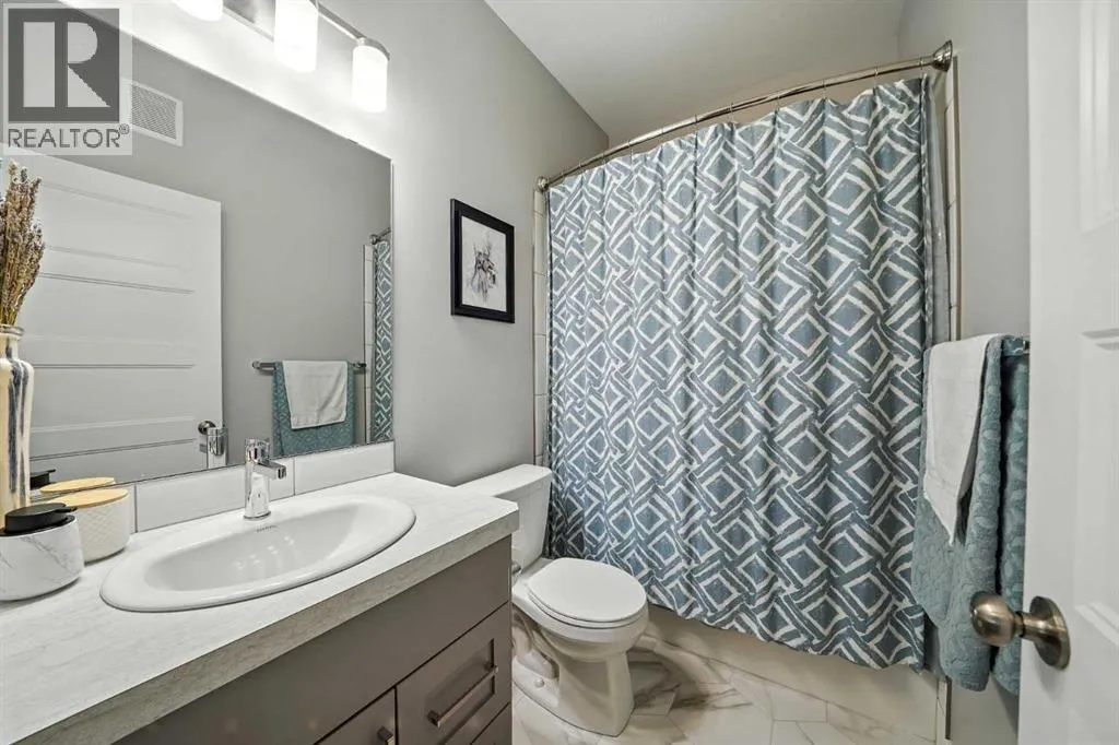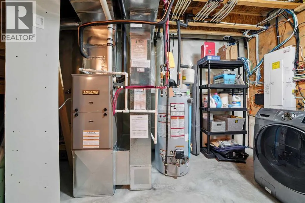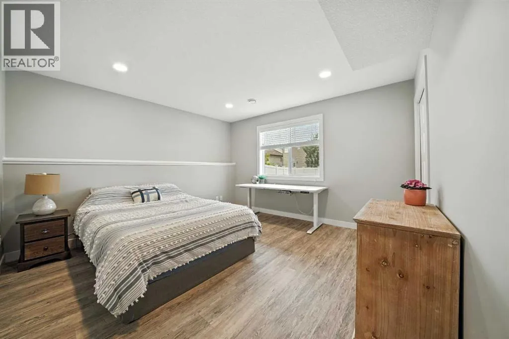 A fully developed walkout on a close! The curb appeal is accented by the front attached garage and covered front veranda. The front entryway greets you with natural light that floods in through multiple windows with a view of the trees and park. The living room has double windows, pot lights on a dimmer switch, laminate flooring and the same view as the front entryway, of the trees & park. White kitchen cabinets are complemented by upgraded stainless steel appliances including an ice maker and a gas stove, crown moldings, full tile decorative backsplash, a grey island with an eating bar and a corner pantry. The eating area has a patio door out to the upper level back deck with a gas line for your bbq. The primary bedroom features a walk in closet and a 4 piece ensuite with a window. There are two additional bedrooms on the main floor and a 4 piece bathroom. The basement was professionally developed by Larkaun Homes in 2024 (except for the one bedroom that was professionally developed in 2021). There is a family room, 2 additional bedrooms (both with dimmer switches) and a 4 piece bathroom with linen storage shelves, a subway tiled tub/shower, all in vinyl plank flooring. The utility room features the washer/dryer and a nice storage space for your convenience. You'll love the walkout from the basement that leads to a large double layer stamped concrete pad that's great for a lounge set and runs under the upper level deck. There is RV parking with the RV gate that matches the vinyl fence (2 gates). A fantastic location across from a park and walking distance to the trail system, school and amenities. The home features AC (2022), a garage de-humidistat & Cat 5/6 in every room. (id:27476)