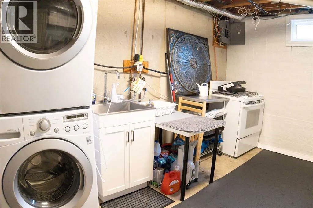Excellent Investment or Multi-Use Opportunity in Westpark! This upgraded 4-bedroom, 2-bath duplex is perfectly located just a short walk to Red Deer Polytechnicâideal for student rentals, room-by-room income, or even short-term stays through platforms like VRBO. Featuring an illegal basement suite, this home offers great flexibility for investors or homeowners. Inside, enjoy modern vinyl plank flooring, new 3 year old windows and doors and new trim around them, newer lighting throughout, a high-efficiency furnace, 8 year old hotwater tank and updated shingles. The main floor showcases a spacious kitchen with plenty of cabinetry, an elegant living room with hardwood floors. Bathroom features a new tub and surround. Downstairs, the basement is highlighted by a large family room with a gas fireplace, a 4th bedroom, a 3-piece bath, and a large kitchen/laundry area with built-in cabinets. Side entrance allows easy and private access to basement. There is two stackable washer and dryers located upstairs and in the basement. Step outside to an unbelievable landscaped yard, including newer fencing, interlocking brick patios and walkways, raised flower beds, trees, shrubs, and a firepit area. 8x12 shed with power and lighting. Gas line for your BBQ grill. This Westpark gem is move-in ready with incredible rental or multi-family living potential! (id:27476)