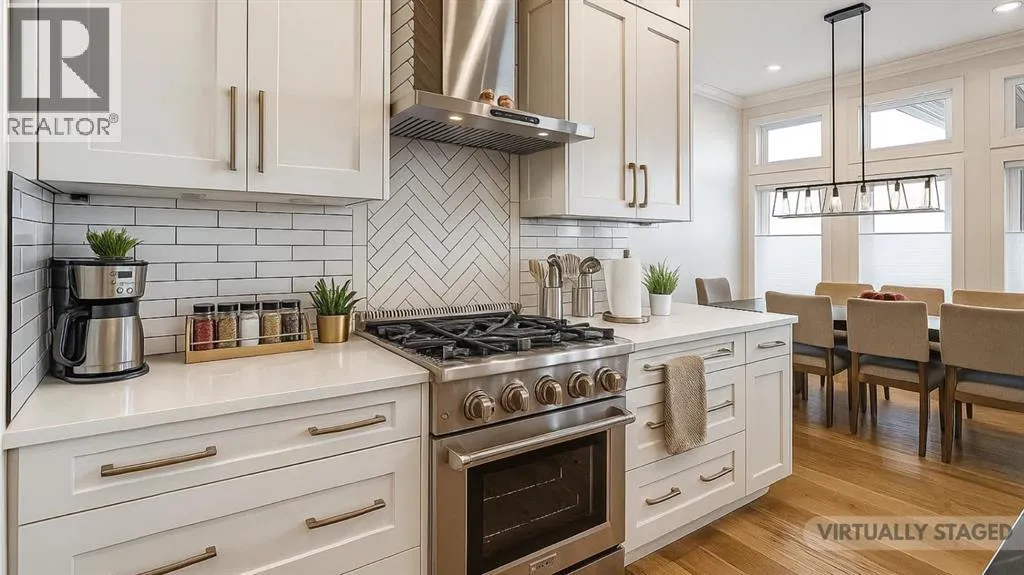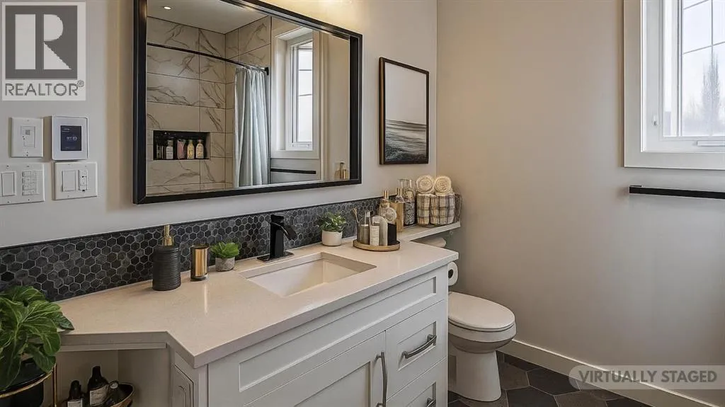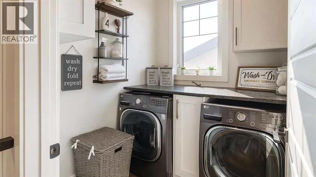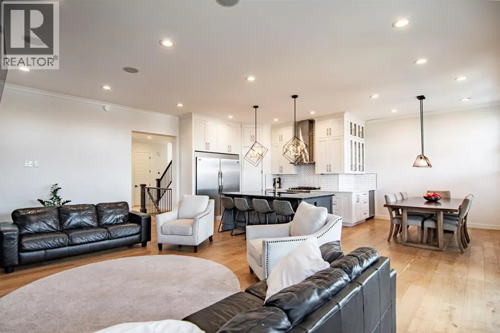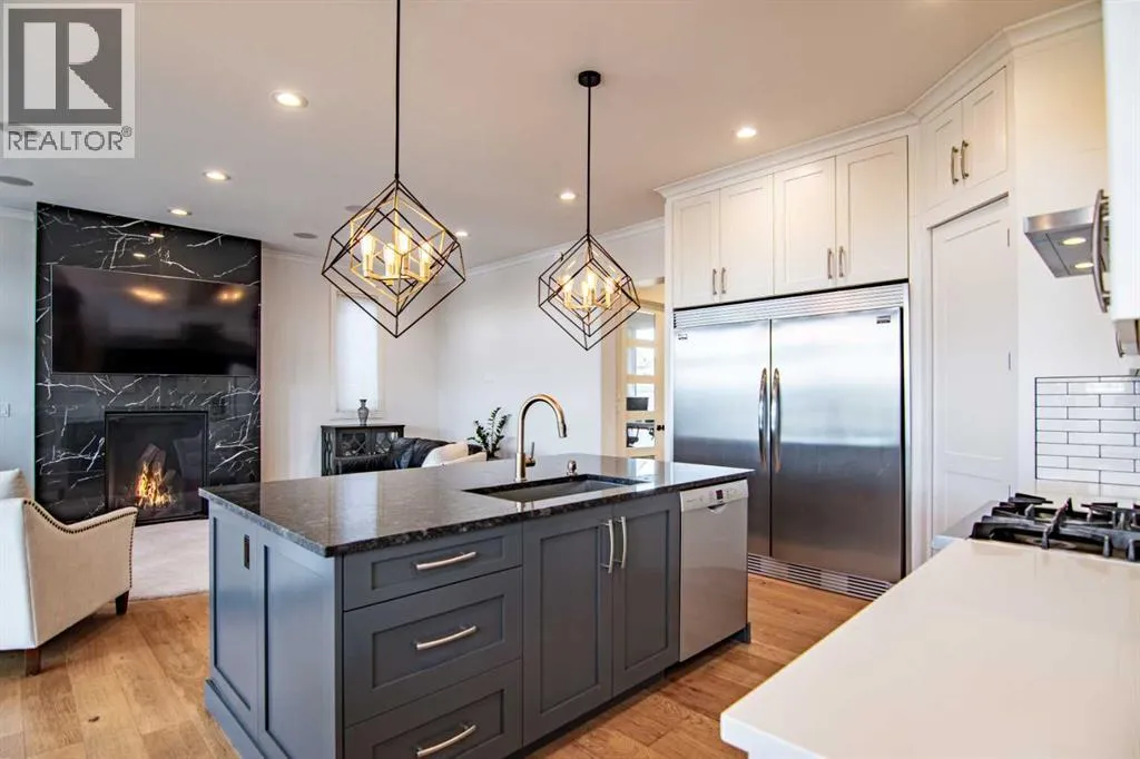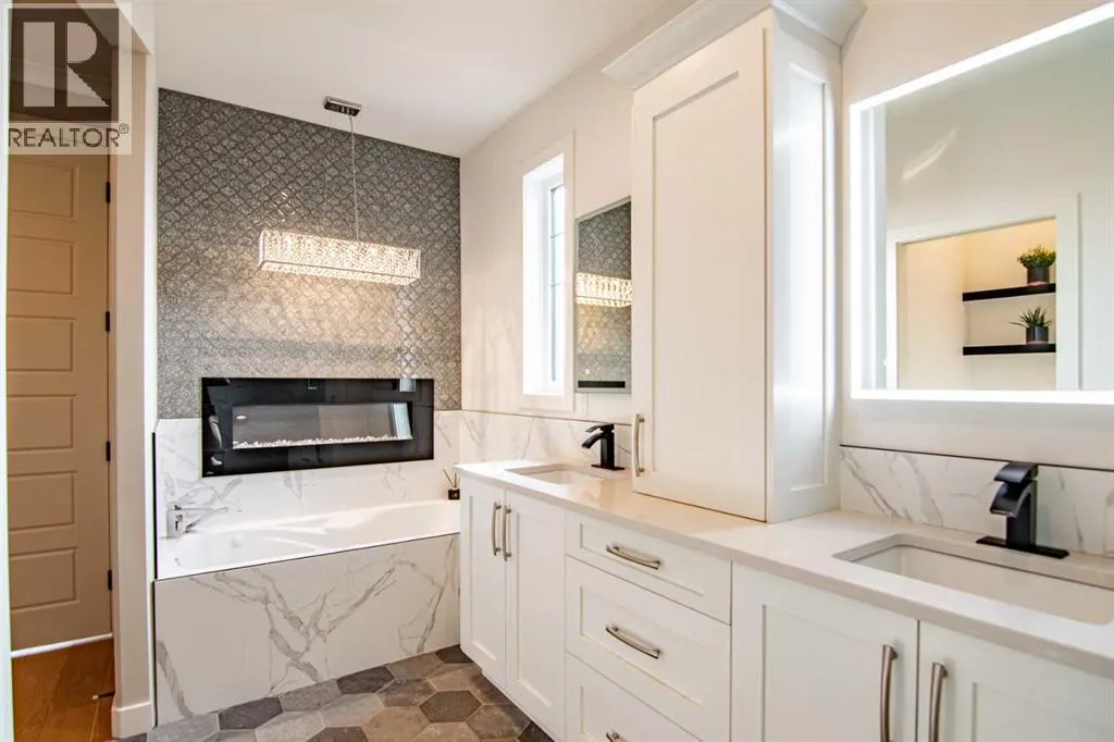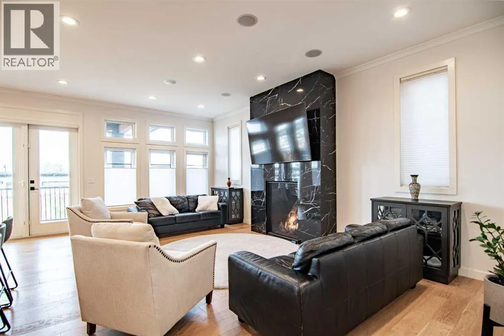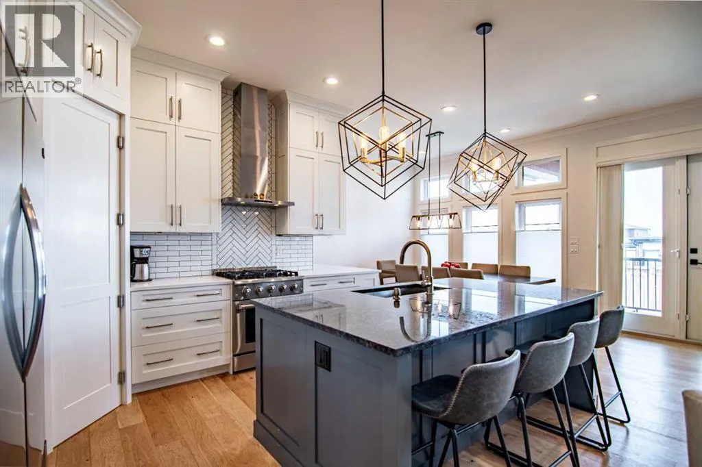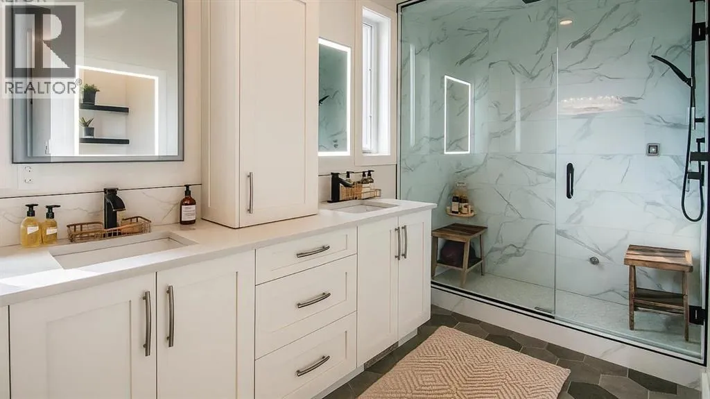 A Rare Executive Walkout Home with Legal Suite. Stunning custom-built executive home, perfectly positioned on a quiet crescent in the highly sought-after community of The Timbers. Offering beautifully finished living space, this walkout two -storey is truly move-in ready, designed for both everyday comfort & elevated entertaining. From the moment you step inside, you welcomed by a grand foyer that flows effortlessly into the open-concept main floor. Soaring 10â ceilings, expansive windows & timeless finishes create an atmosphere of elegance & warmth. At the heart of the home lies the chefâs dream kitchenâa space where style meets function. Floor-to-ceiling custom cabinetry maximizes storage, while premium stainless-steel appliances, gleaming granite countertops & a massive center island invite culinary creativity. An additional bank of cabinetry with built-in bar & wine fridge complements the dinette, while the butlerâs walkthrough pantry offers incredible storage & easy access for entertaining. The dining area, designed to host both intimate dinners & large family gatherings, opens onto a covered deck that overlooks the private yardâperfect for morning coffee or summer evenings outdoors. In the living room, a striking quartz-wrapped gas fireplace anchors the space with modern sophistication. A private office/den with French doors, a stylish 2-piece bath & built-in mudroom benches w/custom organizers complete this incredible main level. Upstairs, a spacious bonus room provides a perfect retreat for family movie nights. Two generously sized bedrooms w/oversized closets share a pristine 4-piece bathroom, while the primary suite is nothing short of a sanctuary. This luxurious retreat offers ample space for a sitting area & is paired w/a spa-inspired ensuite featuring heated tile floors, dual vanities, a glass steam shower & a walk-in closet designed with function in mind. Laundry room with cabinetry & folding space adds convenience on this level. Lower level extends y our living space w/a stylish wet bar, recreation area, an additional bedroom & a bathroom perfect for guests or a growing teen. A self-contained legal suite w/private access and completes w family room, kitchen, bedroom, 4-piece bath & its own laundry. In-floor heating throughout the basement ensures year-round comfort. Additional highlights include Fully finished heated double garage with epoxy flooring, durable stucco exterior for peace of mind in hail season, low-maintenance landscaping ideal for busy families. This property truly offers it all-sophisticated style, thoughtful design, and incredible versatility. Whether you are entertaining, working from home, or hosting extended family, every detail has been carefully crafted to enhance your lifestyle. Do not miss the chance to make this executive masterpiece your forever home. decorative curves are being added as well as resurfacing of the driveway. (id:27476)