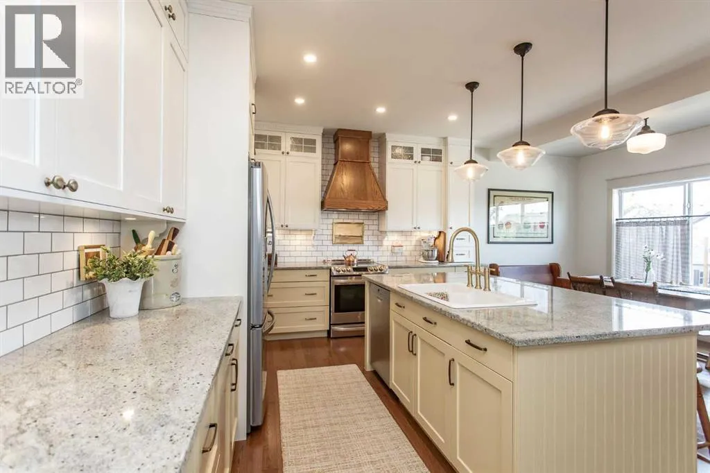 If you're seeking the ideal blend of sophistication and practicality, your search ends here. Welcome to 32 Carter Close, where elegance greets you the moment you arrive. The inviting front porch draws you into this charming and functional residence. As you step inside, you'll be welcomed by rich hardwood floors that guide you to the bright and spacious main level, featuring a chef's kitchen equipped with gleaming stainless steel appliances, a substantial island topped with granite, stylish lighting fixtures, and a convenient walk-through pantry. The dining area offers ample space for large family gatherings, while the living room boasts an expansive array of windows and a cozy gas fireplace, perfect for those chilly autumn nights. The main floor also includes a generously sized bedroom that can easily serve as an office, along with a practical three-piece bathroom.Ascend to the second level, where a spacious bonus area awaits, complete with built-in window seats and cabinets. The large master bedroom, adorned with elegant wainscoting, leads to a functional four-piece en suite featuring a separate soaker tub and shower. A convenient office area adjacent to the en suite could effortlessly function as a nursery. Three additional spacious bedrooms on this floor provide ample room for a growing family. Plus, the second level is equipped with a full five-piece bathroom featuring a dual vanity, and a laundry room with a folding table and built-in storage solutions.The basement boasts a sixth bedroom, a chic and distinctive four-piece bathroom, and your very own private Irish pub with a custom bar, perfect for entertaining or enjoying game nights. Additionally, the basement includes a walk-up entry to the backyard, offering potential for roommates or guests with their own separate entrance.Step outside to discover a west-facing covered deck and a large, fully landscaped, and secluded backyard that offers plenty of space for play areas, a garden, and even your own chic ken coop. The spacious double garage is heated, providing ample room for vehicles and extra storage. This home is filled with unique features, including historic accent doors, air conditioning, on-demand hot water, hot and cold water outdoor taps and a brand-new solar power system.Conveniently situated on a tranquil close, this property is within walking distance to schools, shopping, and cafés, and just a stone's throw from the Michener walking trails. This home truly embodies the complete package. (id:27476)