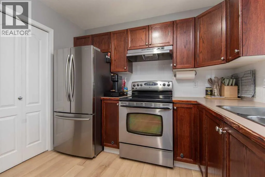 Welcome to this fabulous two-story townhome, perfectly situated in the desired quiet Deer Park location. As you step onto the cozy front porch, youâll immediately feel at home. The upper floor boasts two spacious bedrooms, including a primary suite that comfortably accommodates a king-size bed and dresser, complemented by an oversized walk-in closet. The four-piece bathroom on this level enhances convenience and comfort. On the main level, enjoy a spacious living room featuring a gas fireplace. The bright kitchen is equipped with new appliances and offers a walk-in pantry for ample storage. A convenient two-piece bathroom completes this floor, along with brand new vinyl plank flooring that adds a modern touch. The basement awaits your finishing touches, providing the perfect opportunity to create additional living space. Outside, you'll find parking for two vehicles and a fully fenced yard with vinyl fencing. (id:27476)