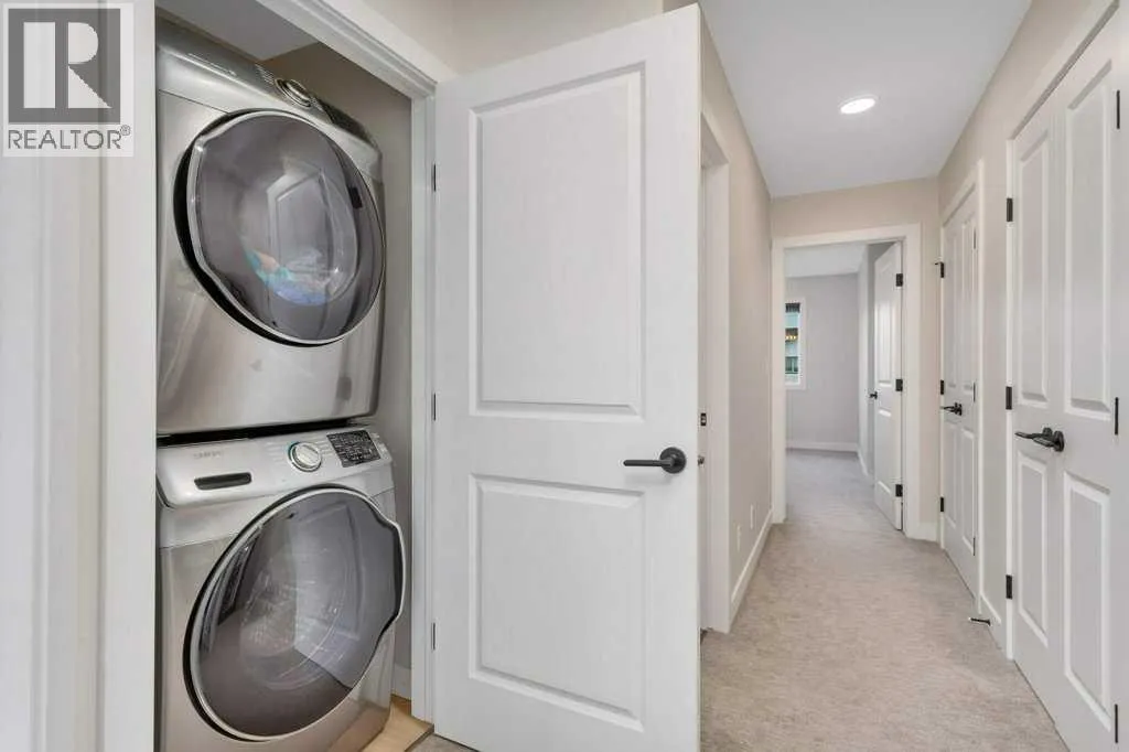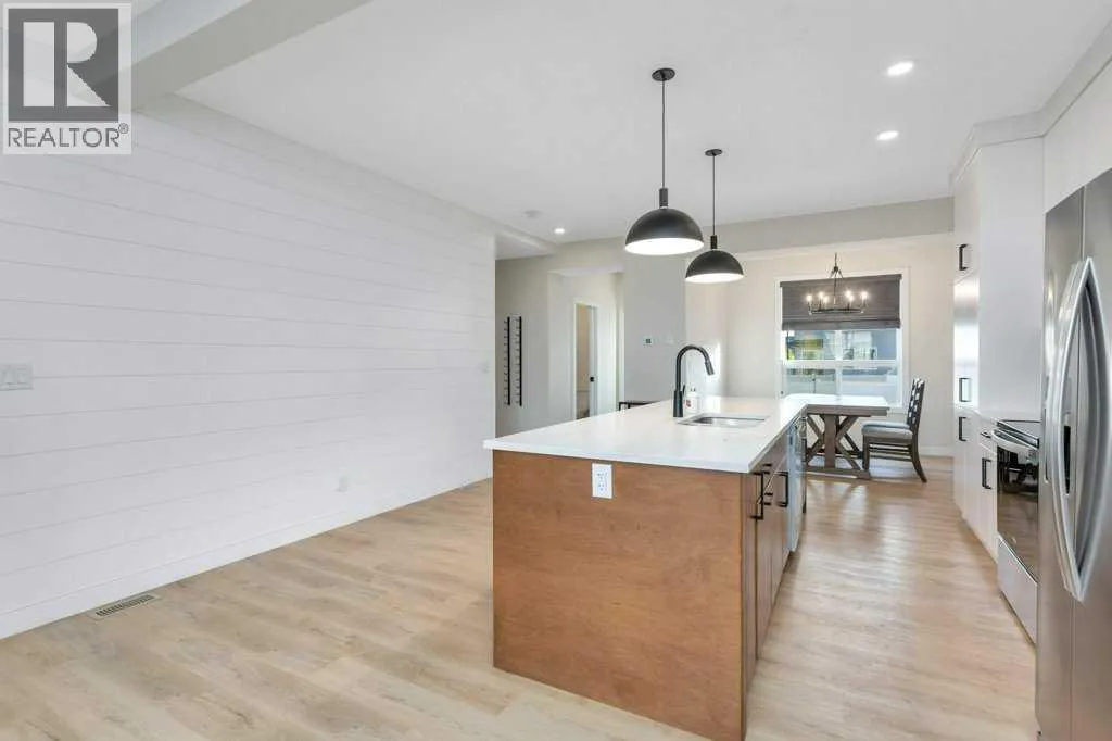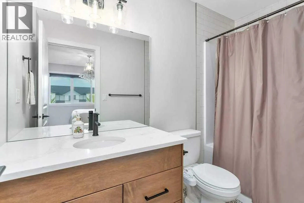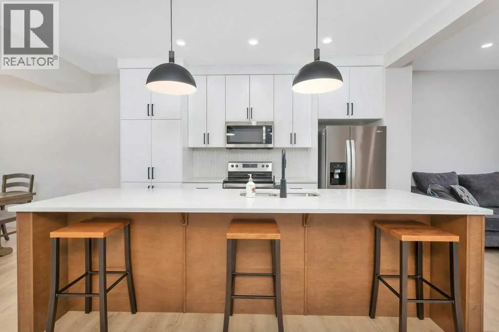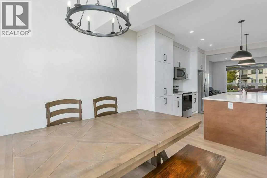 Sleek and Stylish - this beautiful 2 storey townhouse is in immaculate condition and there are NO CONDO FEES!! This bright and modern design is thoughtfully laid out and allows natural light to fill the space. The heart of this fine home is the elegant kitchen with a large center island and quartz counter tops, stainless steel appliances, and contemporary 2-toned cabinetry. There is a rear dining space and front living room which all combine for a connected open concept living space. Quality vinyl plank flooring provides a durable and clean surface throughout the main level, and high-end finishes such as herringbone back splash and a shiplap feature wall complete the modern vibe. A convenient 2pce bath is located near the back entrance which provides easy access to the sunny rear deck and fenced yard with storage shed and 2 rear parking spaces. The upper level is perfectly designed with top floor laundry and 3 roomy bedrooms - including the large main bedroom with it's own full ensuite, plus there is an additional full 4pce bath! An unfinished basement with 9' ceilings offers ample storage space and future development potential. Enjoy all of the great outdoor amenities that Evergreen has to offer including beautiful walking and biking paths and parks - maintained by an annual $100 HOA fee. Recreation and shopping are all nearby with this well located home! (id:27476)
