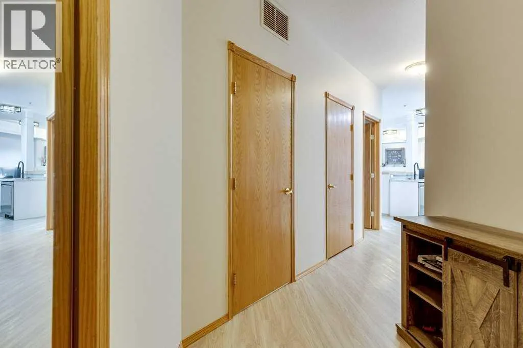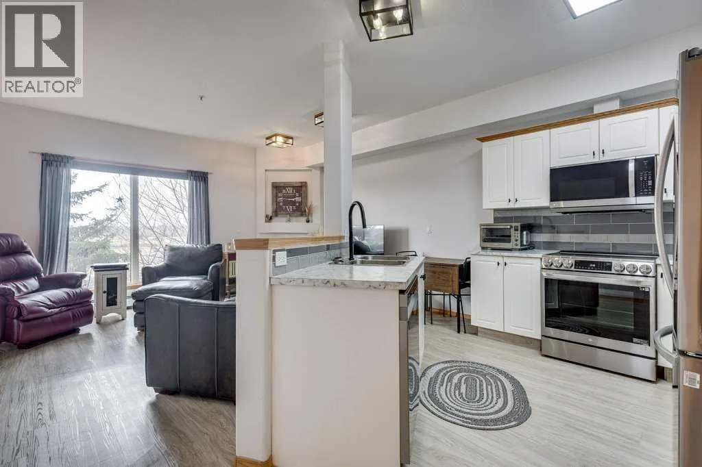 Welcome to this beautiful, renovated condo in the sought after building of Sierras of Heritage Village. Walk into the nice sized entrance and onto the kitchen that has plenty of cabinets and counter space, which is open to the living room, making this a great space to entertain your friends or spend time with family. The primary bedroom is a great size and allows for a king bed with plenty of closet space. Off the living area - there is a covered private deck. There is a beautiful vinyl plank floor throughout, new counter tops, updated plumbing fixtures, appliances, all blinds and window coverings. The condo offers an abundance of large windows throughout the home that lets the natural light soar through making it a bright and sunny space. This building is designed for active adult living, it is a 55+ building and offers an abundance of amenities including a games room, community center with a full kitchen, library, workshop, fitness center, crafts room and a pool with a hot tub. There are several extras and upgrades including , A/C, natural gas to the deck, an underground titled parking stall and storage unit. No pets allowed. Underground parking is titled. Storage spot is labelled DD and the parking stall is 00. (id:27476)