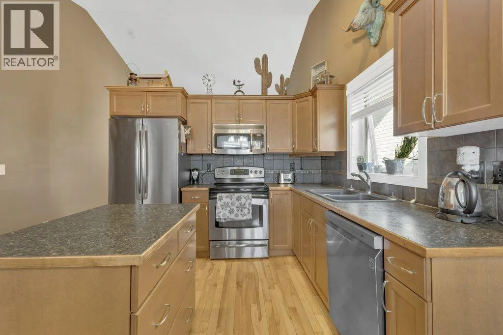 Welcome to this beautifully maintained 2007 bi-level in the desirable Vanier Woods subdivision. Tucked away on a quiet close, this home offers both comfort and functionality with a double detached garage that is fully finished, heated, and equipped with 220 power. The main floor features hardwood flooring, an open layout, and a large deck off the dining areaâperfect for outdoor living. With 4 bedrooms and 3 full bathrooms, thereâs plenty of space for the whole family. The fully developed basement is designed for entertaining, complete with a wet bar and spacious rec area. Recent updates include brand new shingles, giving you peace of mind for years to come. (id:27476)