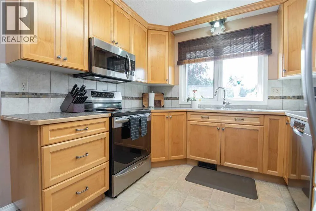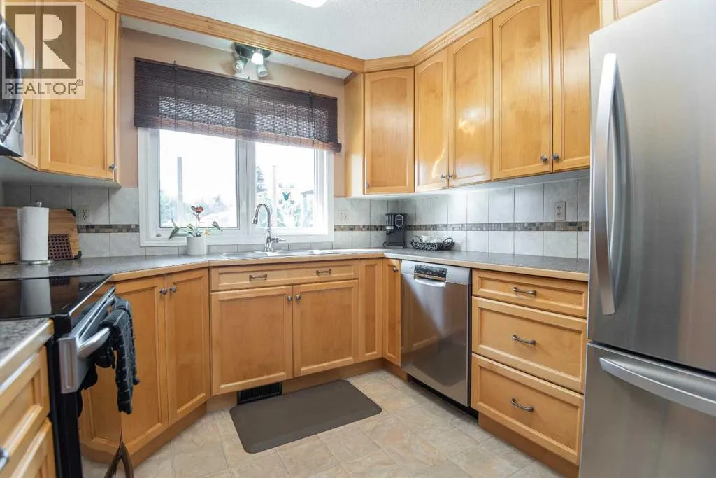 Welcome to this beautifully maintained 2,521 total square foot, 4-level split in the quiet, family-friendly neighborhood of Oriole Park. Situated across from a green space on a low-traffic street, this home offers both comfort and privacy. The main floor features an open-concept layout with a spacious living room, dining area, and a bright kitchen complete with a center island and stainless steel appliances. Fresh paint in select areas through out the home, new carpet, and vinyl windows add a modern, move-in-ready feel. A convenient 2-piece bathroom and laundry room are also located on this level. Upstairs, youâll find three bedrooms, including a generous primary suite with a 3-piece en suite, plus a full 4-piece bathroom for the family. The lower level hosts a fourth bedroom, a 3-piece bathroom, spacious family room with a masonry fireplace, and a storage room. Heading into the basement is an open canvas with potential for another bedroom (window would need to be measure for egress) another living space and plenty of storage. Enjoy the outdoors in the large, private and fully fenced backyard, surrounded by mature trees and featuring an apple tree for seasonal charm. The freshly stained deck spans the entire back of the home, perfect for entertaining or relaxing evenings. A double detached garage (23.5'x25.6') adds convenience and functionality. This is a clean, well-kept home with thoughtful updates, ready for its next family to make memories. (id:27476)