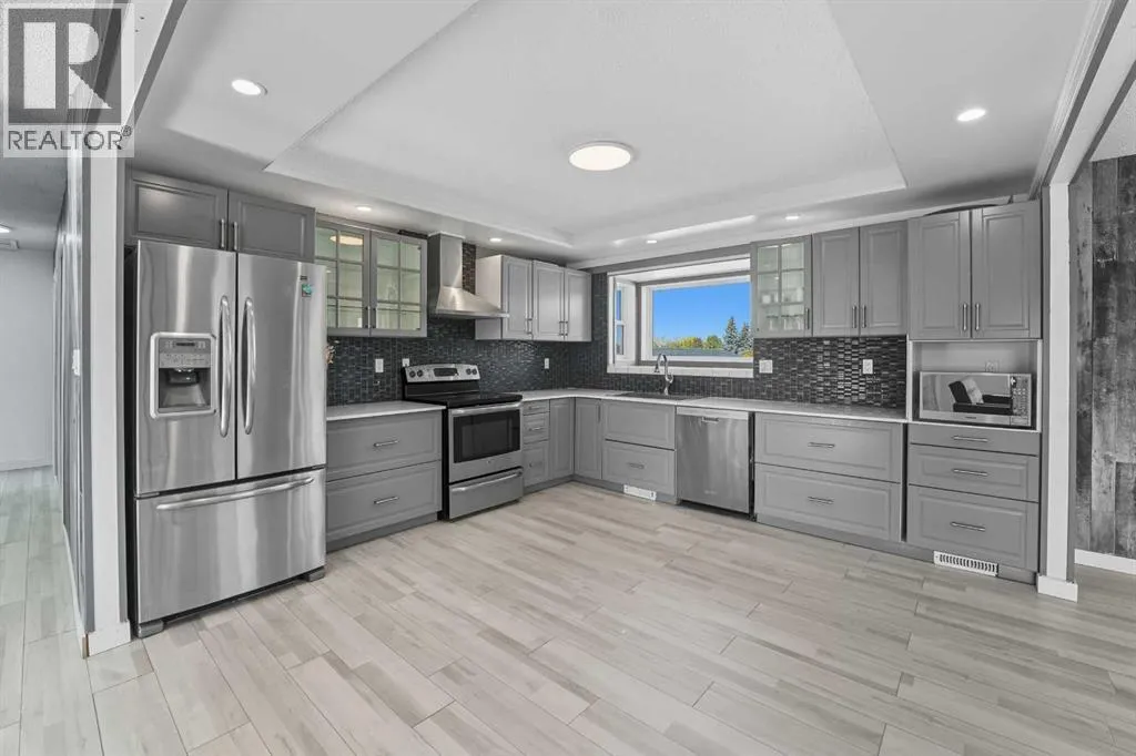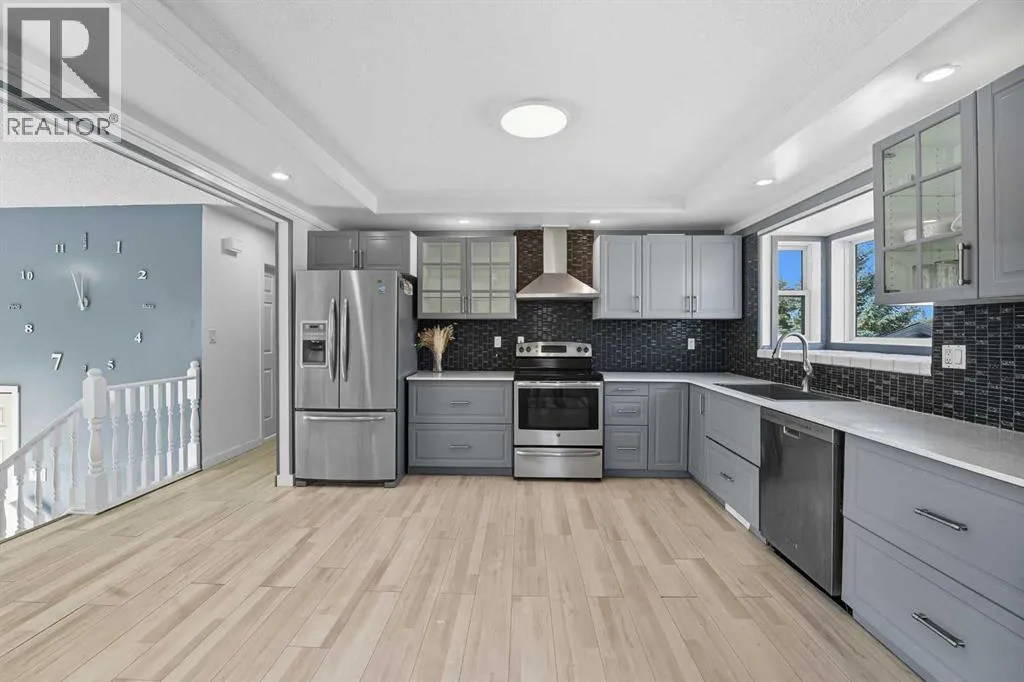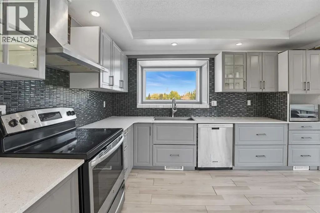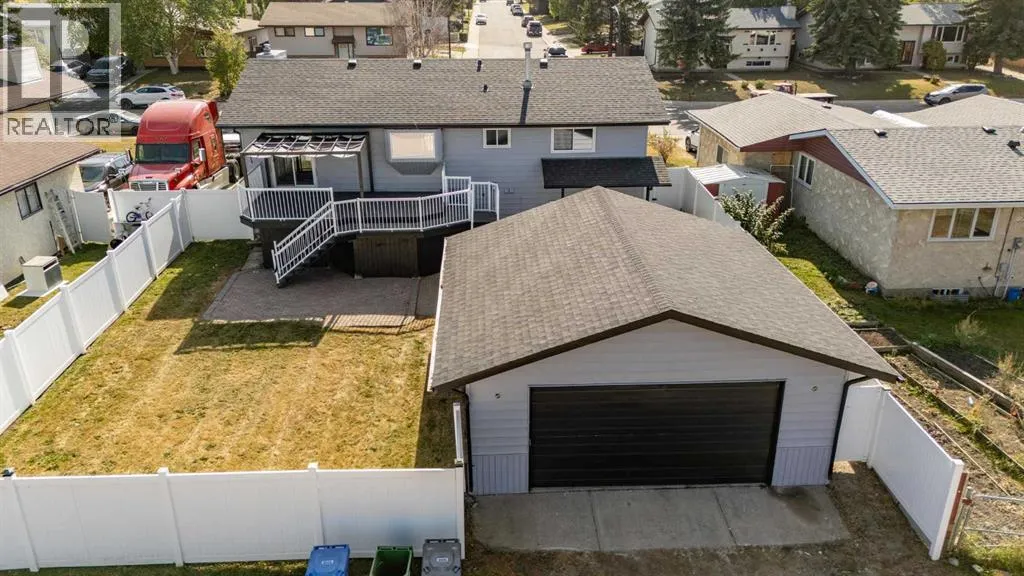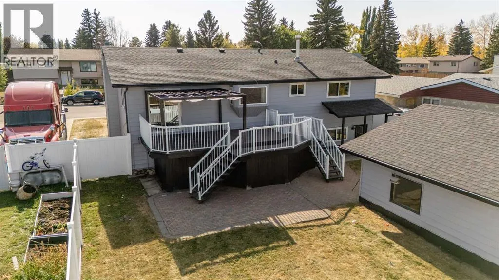 Welcome to this solid and thoughtfully updated 4 bedroom, 3 bathroom bi-level in the highly sought-after neighbourhood of Bower. Backing onto a tranquil green space, this impressive property combines comfort, style, and convenience with close proximity to schools, parks, walking trails, shopping, and easy access in and out of the city. The main level showcases a bright and spacious open concept design featuring a generous kitchen with abundant cabinetry, expansive prep area, sleek quartz countertops, and a welcoming dining, and living area designed for entertaining family and friends. Expansive windows flood the home with natural light, while a patio door off the dining room leads to a generous deck overlooking a large back yard with an interlocking brick patio, perfect for morning coffee or evenings with friends. Enjoy a fully fenced backyard with maintenance free white vinyl fencing and peaceful green space views.Also, on the main level are three well appointed bedrooms, including a primary suite with its own private ensuite bathroom and a second full 4 piece bath for family or guests.The fully developed basement with separate entry extends the living space with a versatile recreation/games room complete with a second kitchen, a comfortable fourth bedroom, another 4 piece bathroom, den/office or add a closet and you have a 5th bedroom The laundry facilities are located in the utility room. Outside, youâll find a dream 24â x 24â detached garage, perfect for vehicles, storage, or a workshop. Major upgrades have already been completed, including a new roof (2017), furnace motor (2017), hot water tank (2017), and brand new windows, ensuring comfort and peace of mind for years to come.With its generous proportions, updates, and unbeatable location, this home is the perfect blend of space, style, and function. Truly a rare find in Red Deerâs Bower community (id:27476)