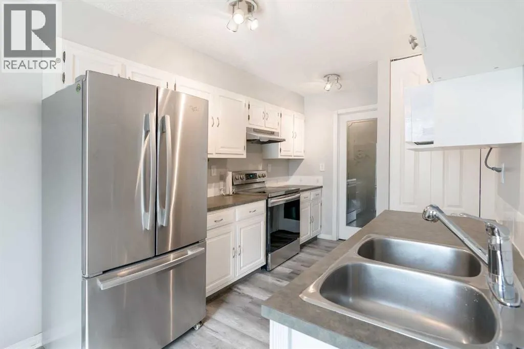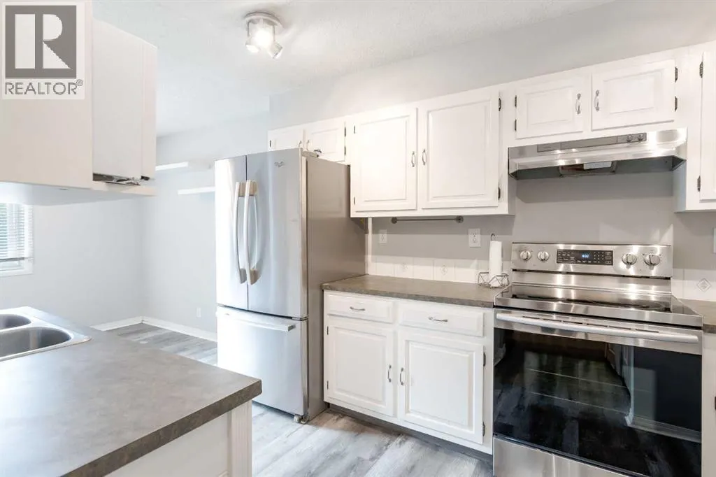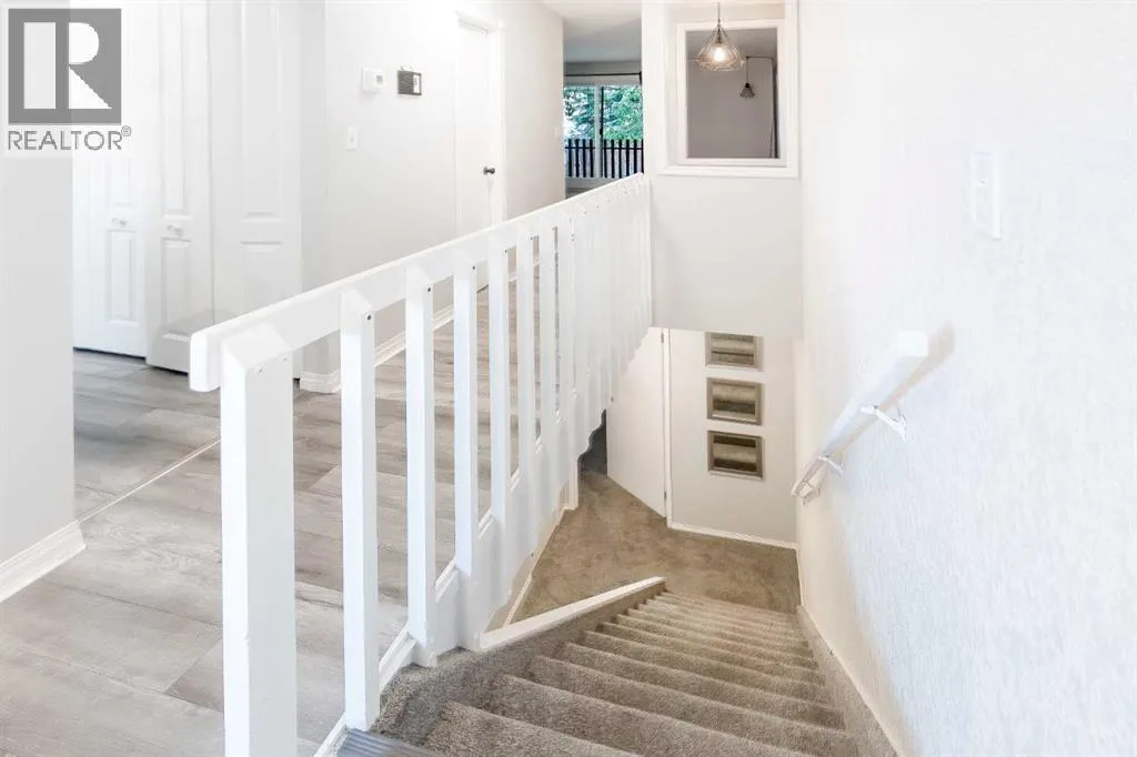 Experience comfort and convenience in this inviting 3-bedroom, 2-storey end-unit condo offering over 1,200 sq ft of developed living space. Ideally located near shopping and backing onto a beautiful green space, this home blends modern upgrades with a tranquil setting. The kitchen features a spacious walk-in pantry and newer appliances, while updated flooring adds a fresh touch throughout. Relax by the cozy wood-burning fireplace in the living room or step out to your private balcony with views of mature trees. Upstairs, three generous bedrooms provide plenty of space for family or guests, complemented by a 4-piece bath and two additional half baths for busy mornings. With two powered parking stalls included, this property is an excellent choice for first-time buyers or investors seeking strong rental potential. (id:27476)