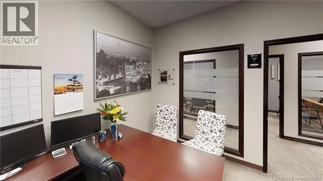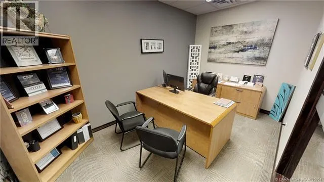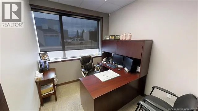 Attractive 10% CAP RATE Return on this C1-zoned ,Class A PROFESSIONAL OFFICE SPACE W/ optional 13-PARKING STALL separate lot (individually titled) ! This 2,000 SQ FT +/- , First-Class, END-CAP UNIT Office space, located right on GAETZ AVE SOUTH! Main-level GAETZ AVE FRONTAGE, featuring 7 generous offices, front reception w/ built in desk, 2 baths, a big boardroom w/ kitchenette, a server/ storage room as well as 6 common parking spots out front. Low condo fee's of $367.88/month. (2024) Need more parking? OPTION TO BUY THE ADDITIONAL 25'x125' gravelled parking lot (4927-53 street) which has 15 stalls (can be rented @ $60.00/month/stall) Listed at $129,900.00. Sold together ($429,800.00)or separate. Superb location with HIGH VISIBILITY and a traffic count, well over 7,000 cars/day. Visit REALTORS® website for more detailed information. Tenant currently pays $3,286.68/month ($15.00/PSF ($2,500/month), plus $4.72/PSF NNN costs ($786.68) (id:27476)